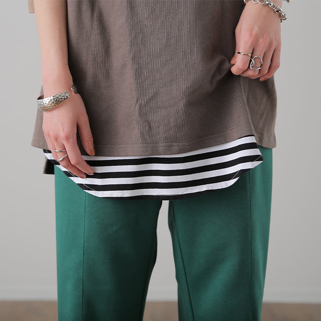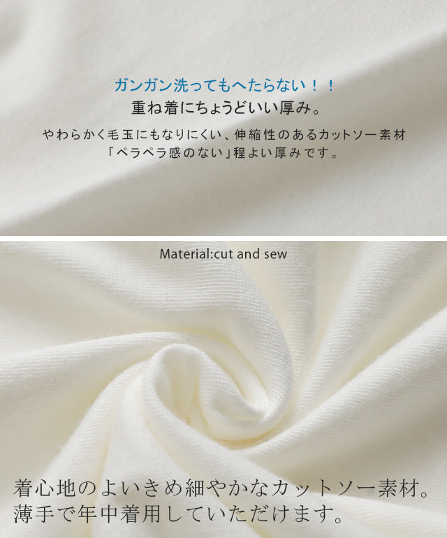 きめ細やかなカットソー素材を使用することで着心地の良さを実現しています。薄手でどんなお手持ちのアイテムにも合わせやすく、年中着用いただけます。