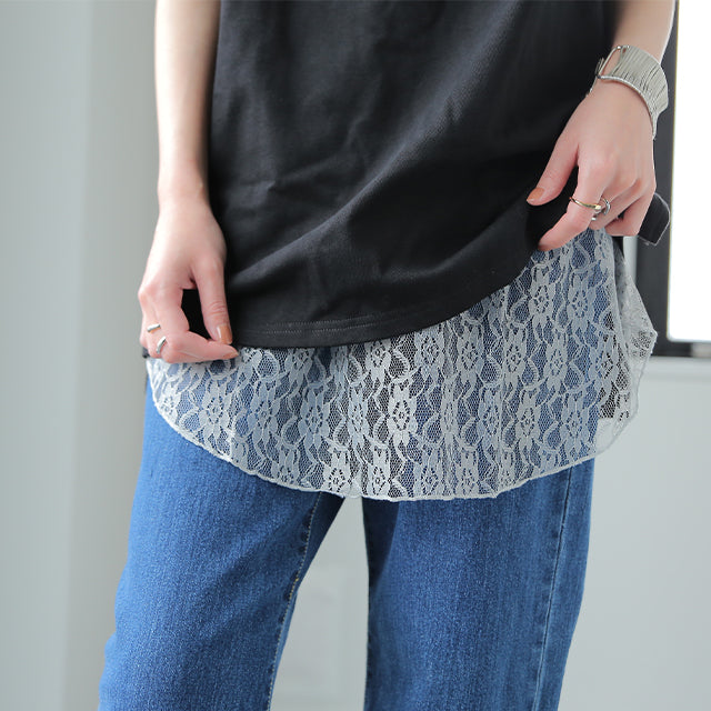 一枚で着るのは難しいキャミソールは、重ね着がオススメです。 マンネリしがちなコーディネートも、インナー裾をプラスするだけでこなれ感UP オシャレなレイヤードスタイルが即完成しちゃう優秀アイテムです。 レースタイプのブラックは染料の関係で他の色より少し手触りが固い可能性があります。