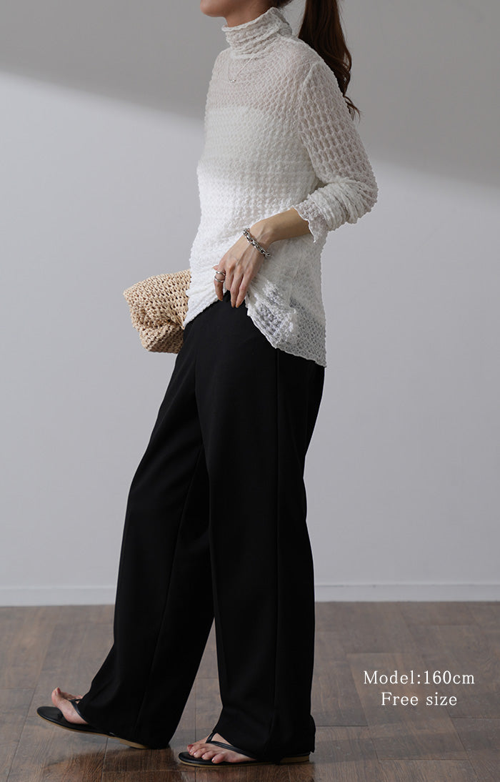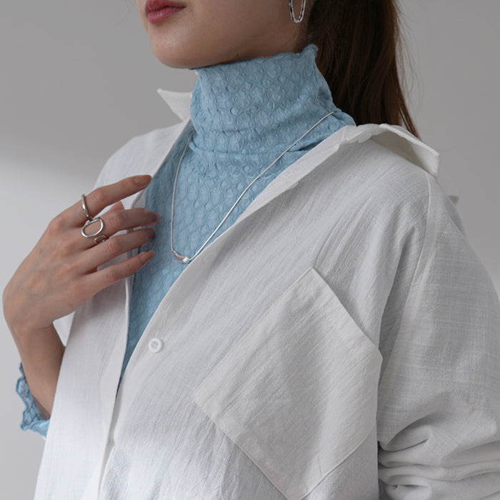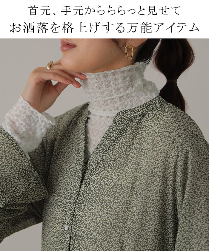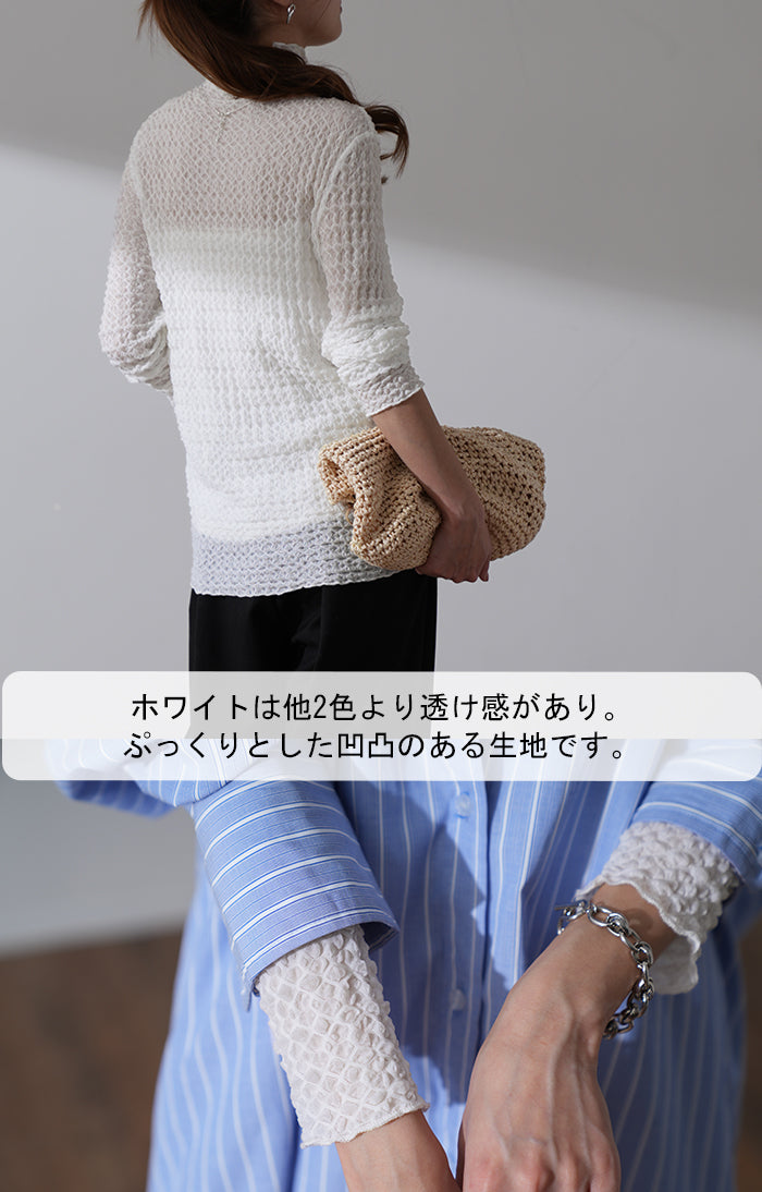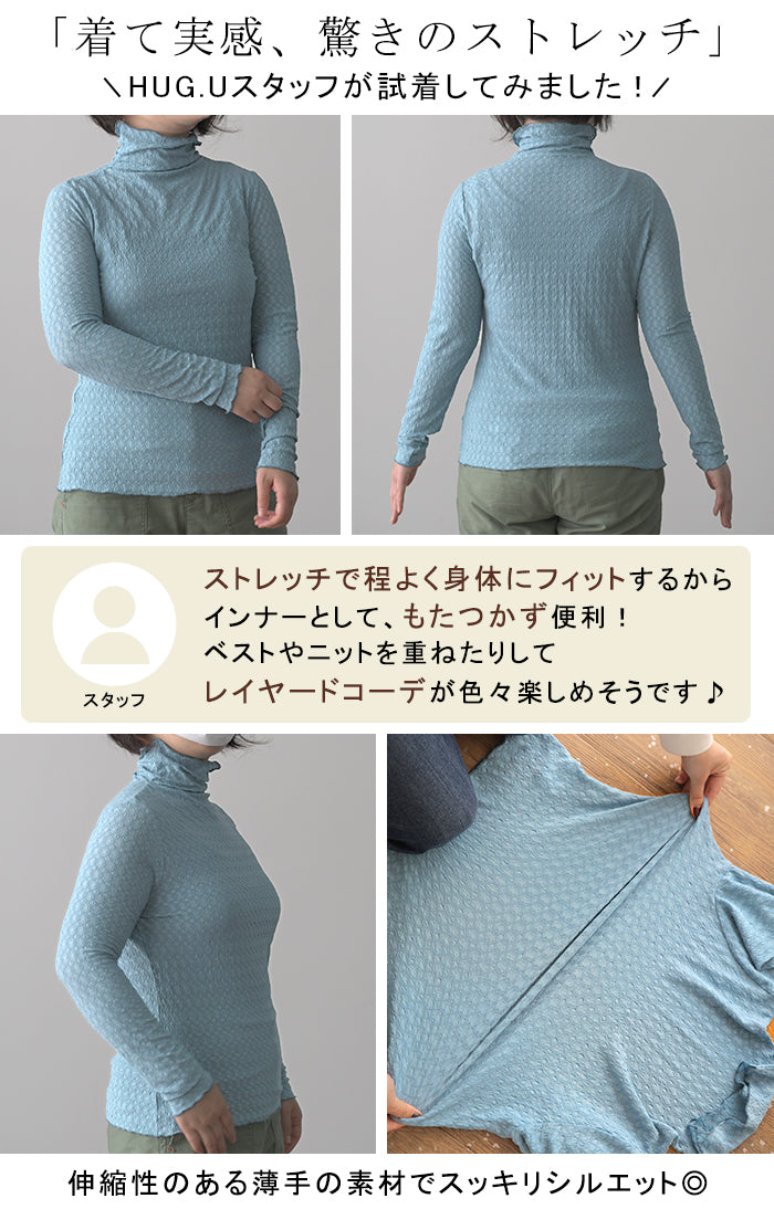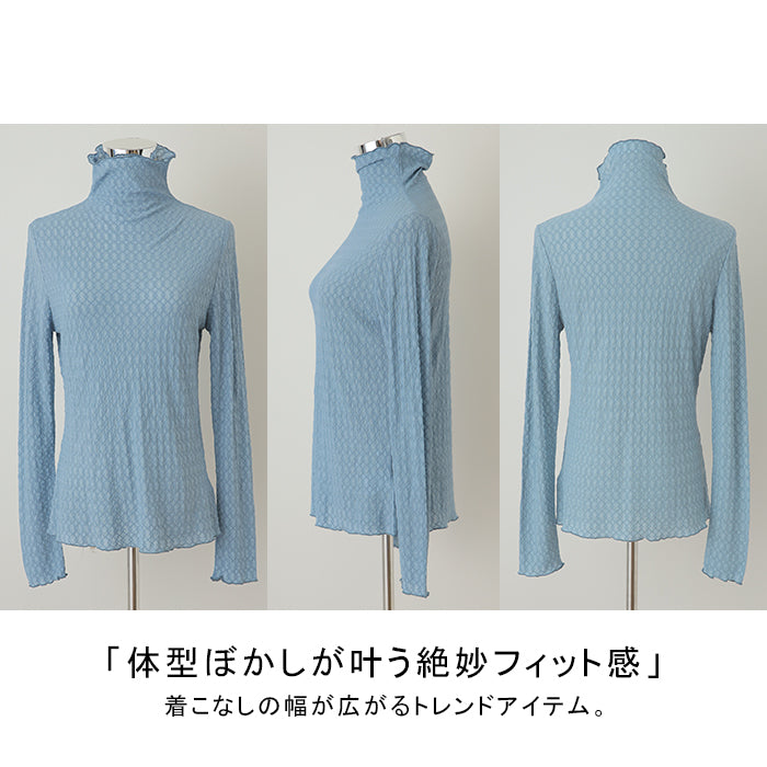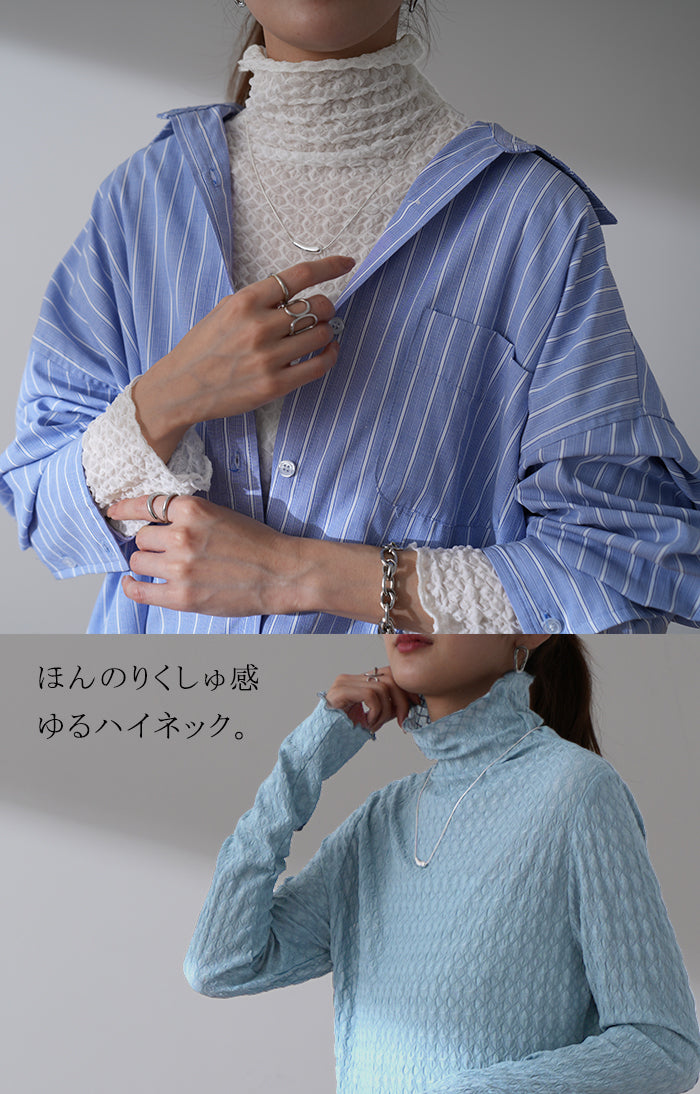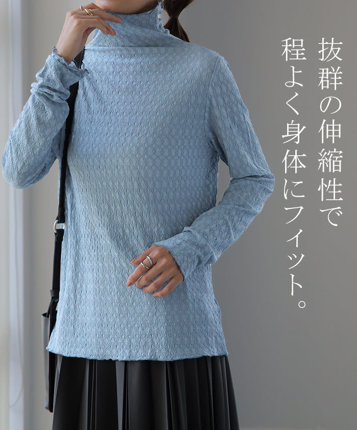 シボ感がたまらない抜け感たっぷりのハイネックシアートップスです。やわらかで伸縮性のある素材なので着心地良くラインをキレイに見せてくれます。ハイネックデザインなのでインナーとして首元だけ出したレイヤードスタイルもおすすめです。■モデル着用アイテム ⇒ トップス / ネックレス■モデル着用アイテム ⇒ ワンピース■モデル着用アイテム ⇒ リング■モデル着用アイテム ⇒ トップス / パンツ■モデル着用アイテム(左) ⇒ トップス■モデル着用アイテム(右) ⇒ トップス■モデル着用アイテム ⇒ パンツ※モデル着用商品は在庫切れ・販売終了・リンク切れの場合がございます。
