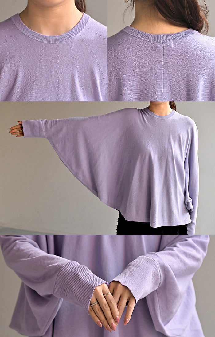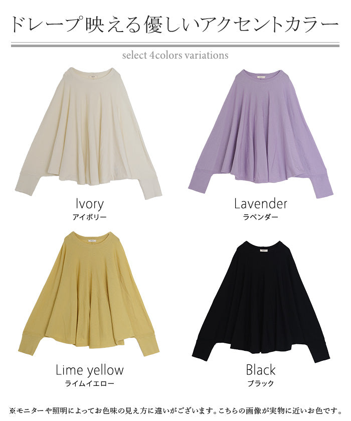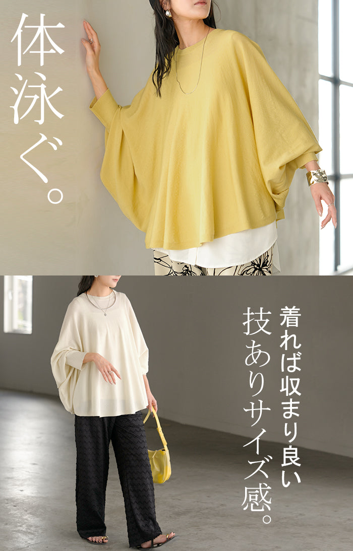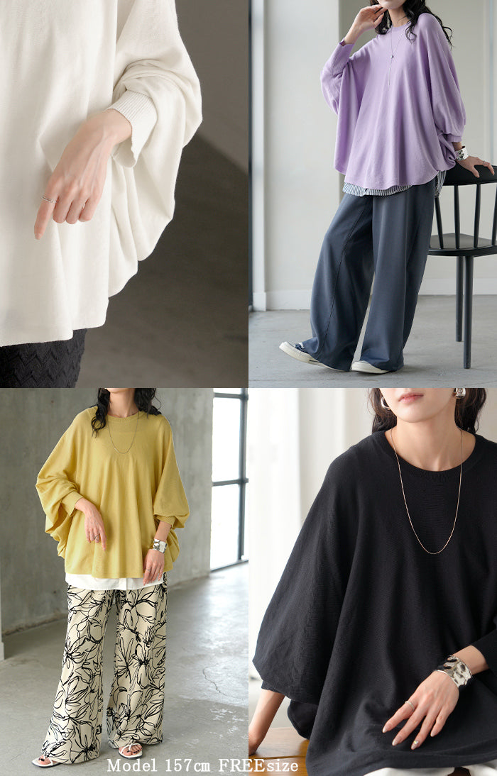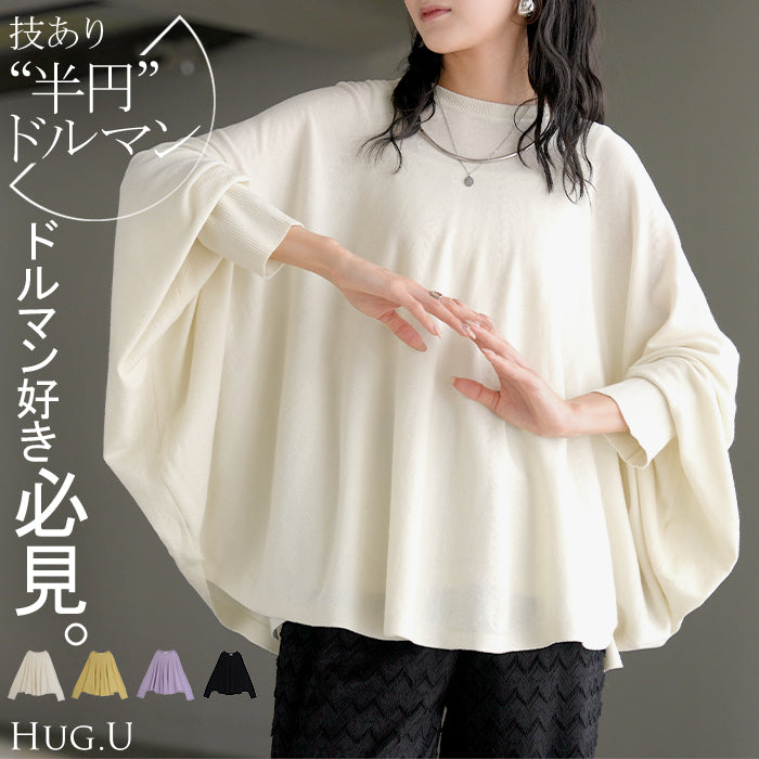 ロンT レディース ドルマン トップス ニット 長袖 Tシャツ カットソー ロング ティーシャツ リブ チュニック ビッグ プラスサイズ クルーネック 長い ドルマンスリーブ ゆったり 無地 体型カバー 大きいサイズ おしゃれ 白 黒 春 夏 HUG.U