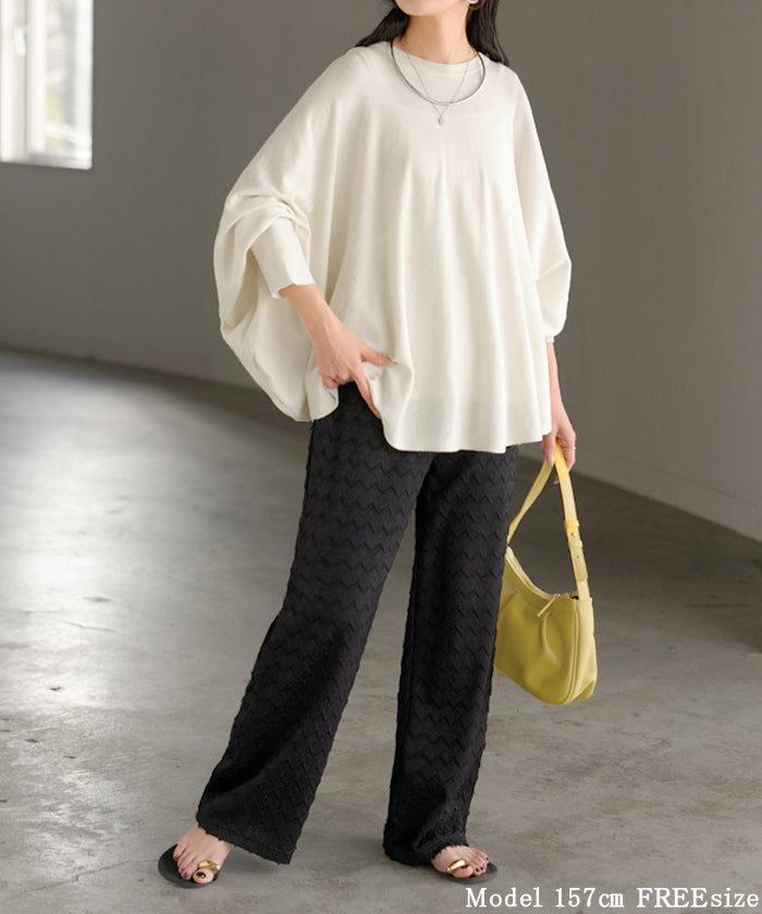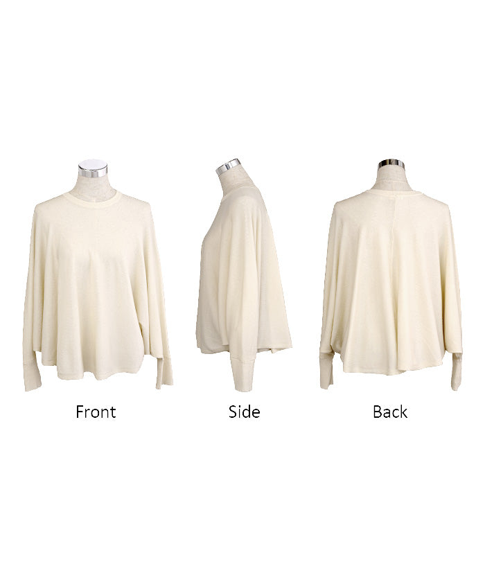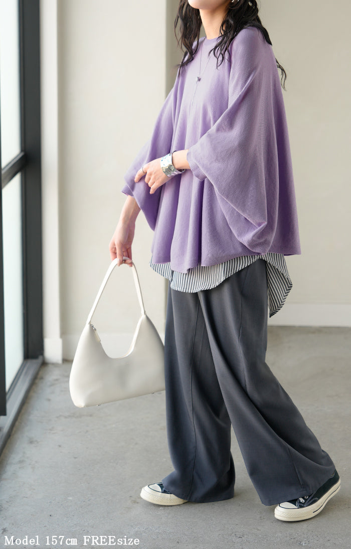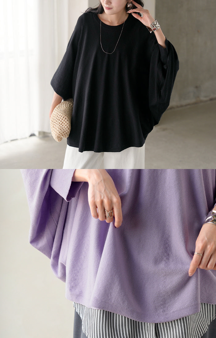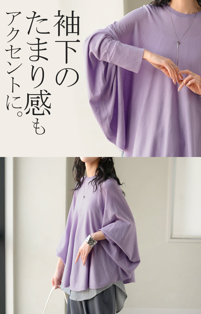 ロンT レディース ドルマン トップス ニット 長袖 Tシャツ カットソー ロング ティーシャツ リブ チュニック ビッグ プラスサイズ クルーネック 長い ドルマンスリーブ ゆったり 無地 体型カバー 大きいサイズ おしゃれ 白 黒 春 夏 HUG.U