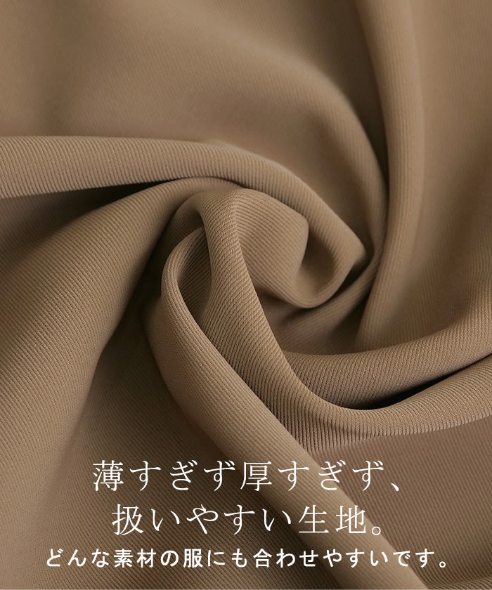 素材は、薄過ぎず厚すぎないレーヨン混の素材を使用。ドレープ感や自然な光沢感がある素材です。面積のあるアイテムのためストレッチ性を持たせて、日常使いで気にならないよう心掛けました。