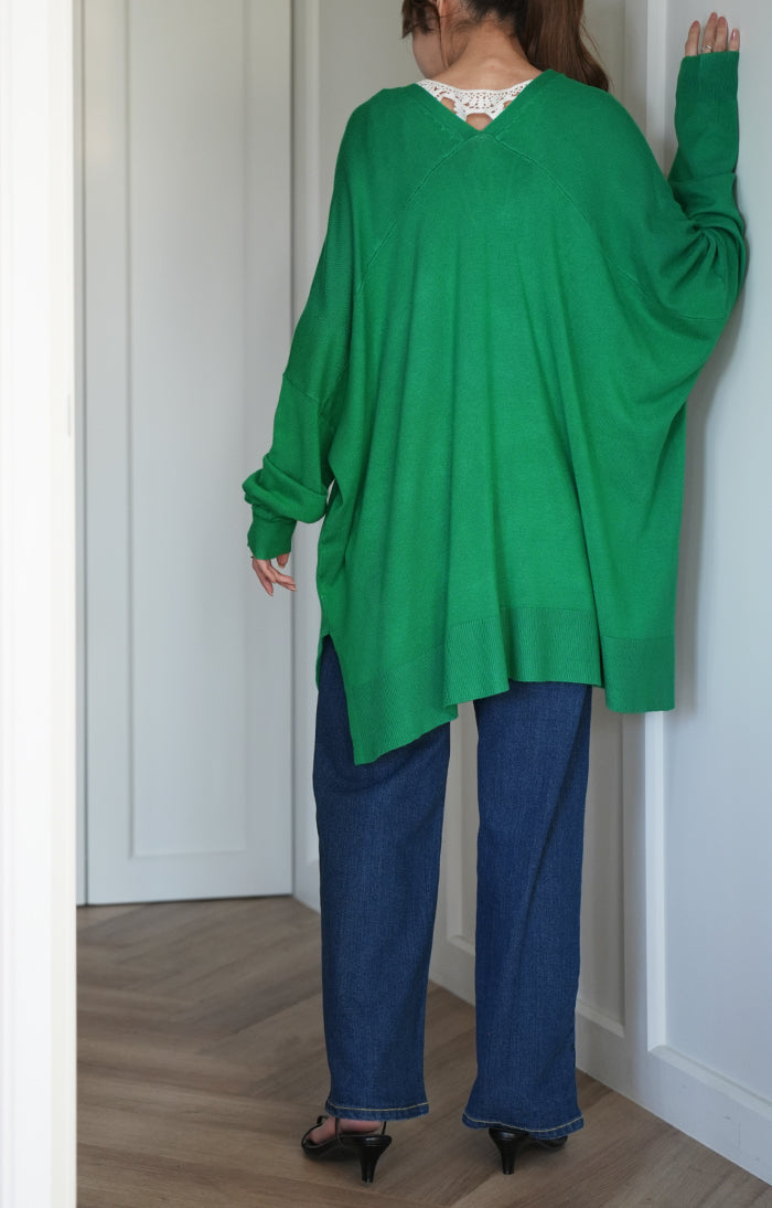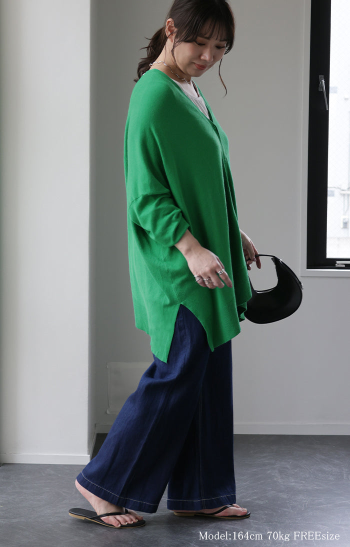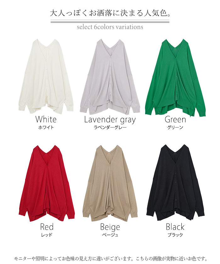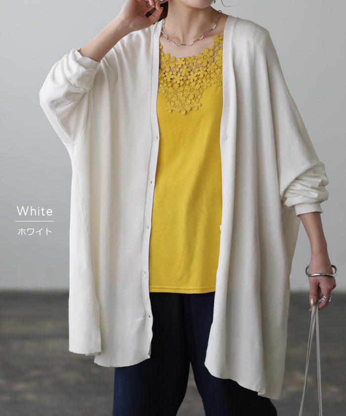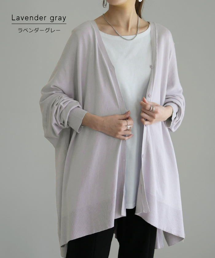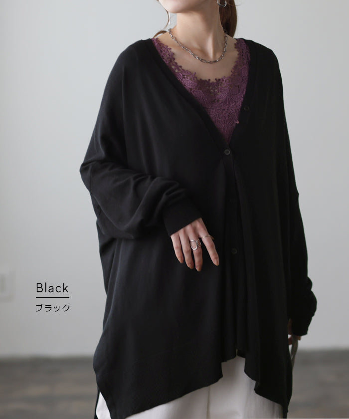 「 モモンガ 」 ニット カーディガン 体型カバー レディース セーター トップス ニットカーディガン 軽い カーデ ドレープ 長袖 ライトニット レイヤード 羽織 チュニック お尻が隠れる ゆったり 長め コクーン リブ グリーン 黒 春 夏 HUG.U