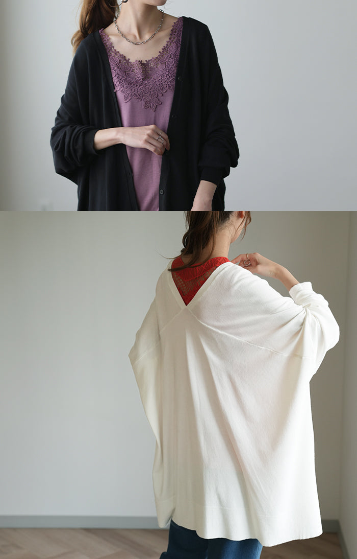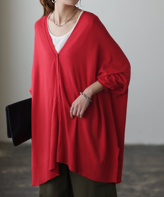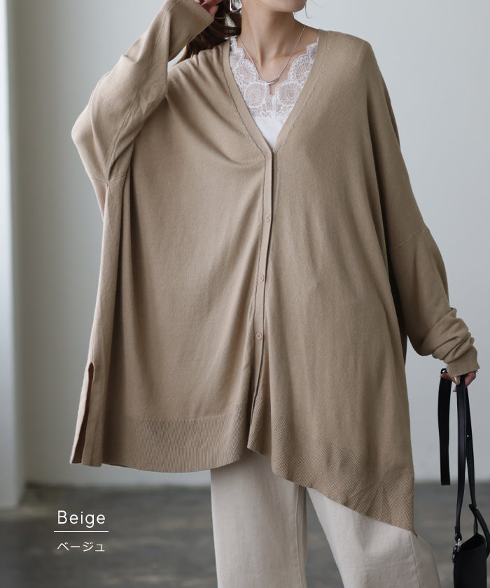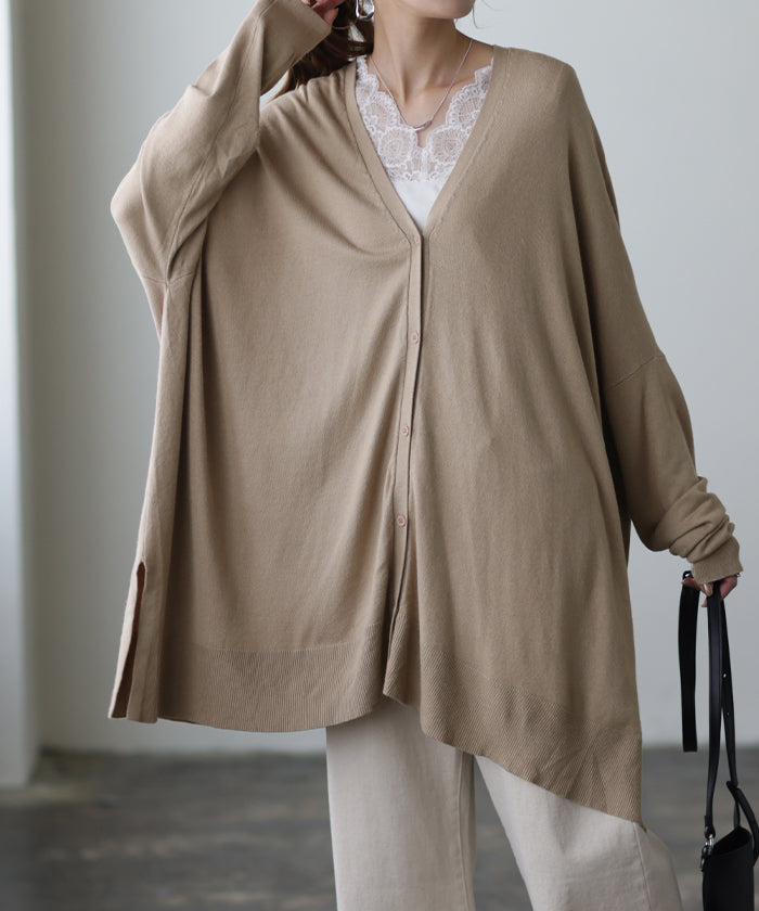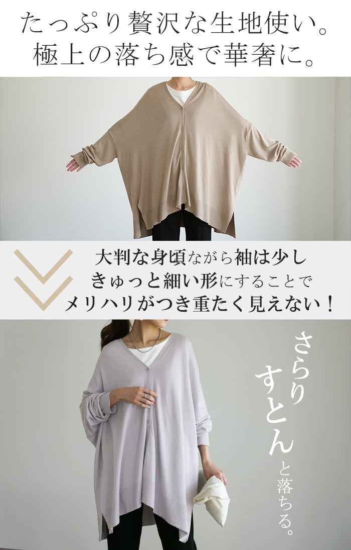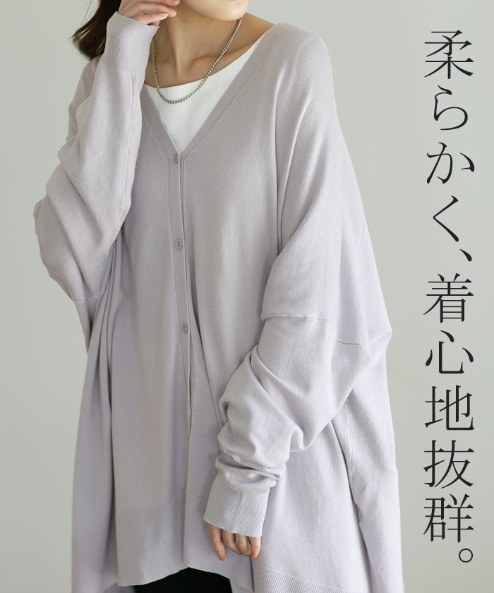 柔らかく優しい風合いのドルマンニットカーディガンです。ゆったりなシルエットでインナー合わせも楽々。どんなボトムスとも好相性でお洒落な雰囲気がある一着です。※ニットの特性上、実際の製品の寸法とサイズ表記に差が生じることがございます。予めご了承下さいませ。