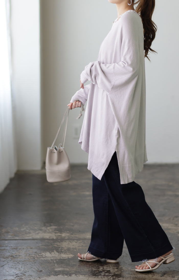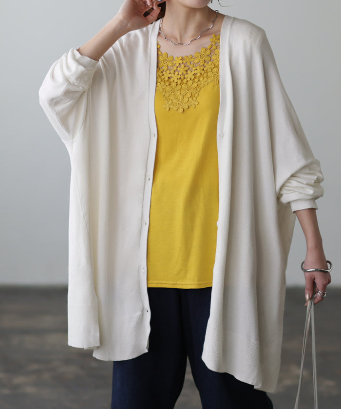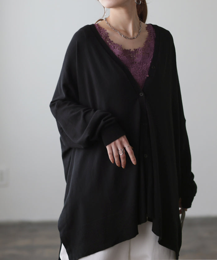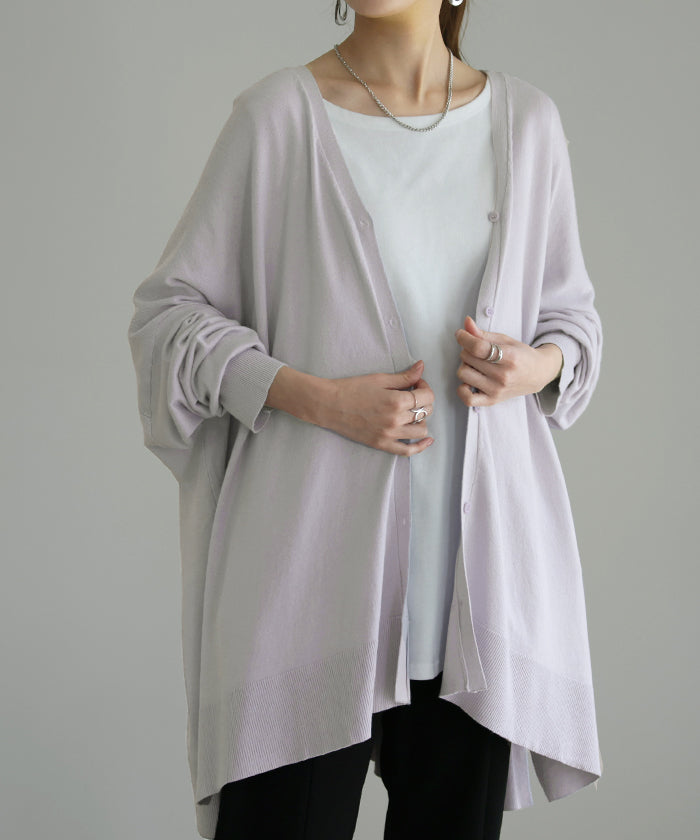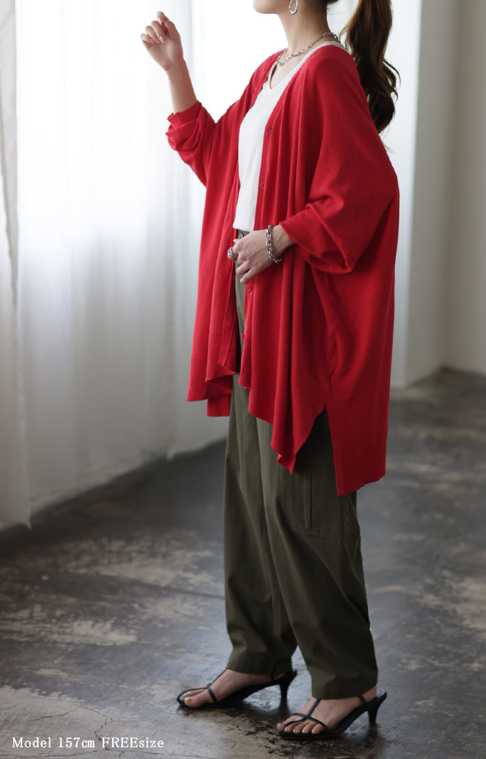 柔らかく優しい風合いのドルマンニットカーディガンです。ゆったりなシルエットでインナー合わせも楽々。どんなボトムスとも好相性でお洒落な雰囲気がある一着です。※ニットの特性上、実際の製品の寸法とサイズ表記に差が生じることがございます。予めご了承下さいませ。