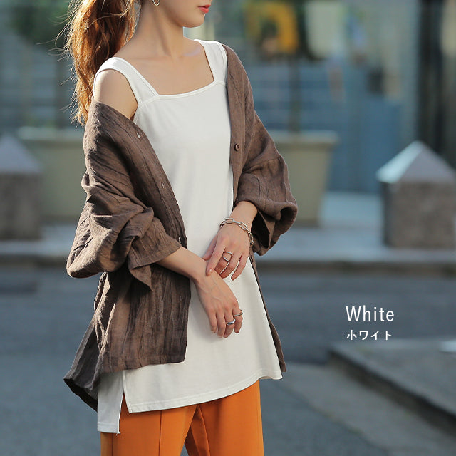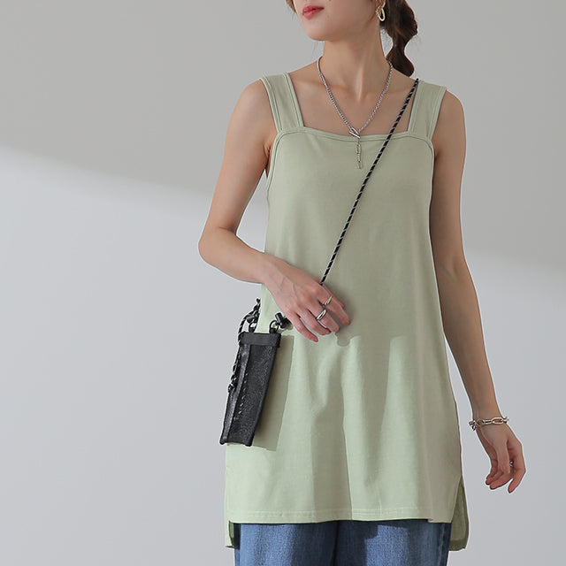 長い丈【ブラ紐・お尻隠し】 タンク インナー キャミソール キャミ ロング 谷間 肌着 トップス お尻が隠れる レディース つけ裾 タンクトップ レイヤード ブラ紐隠し 重ね着 スクエアネック 体型カバー 大きいサイズ 肩紐 黒 白 春 夏 メール便