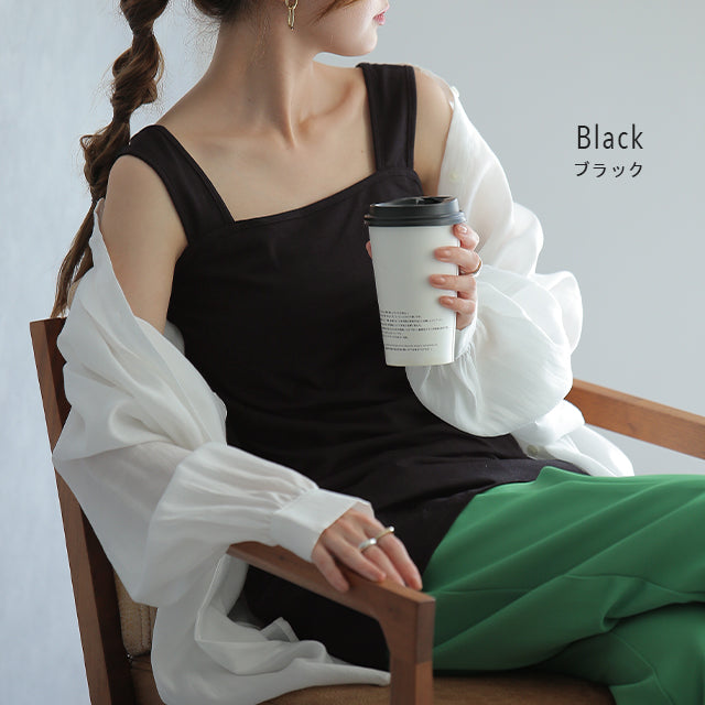 360度絶対にチラ見せしない。特にパターンにこだわった本商品。ストラップの太さ、緩やかなAラインシルエット、動きに対応する生地の分量の持たせ方など、女性の悩みに答えるディテール満載です。裾のレイヤードも楽しめる長さで制作しておりますので、コーディネートのアイディアも豊富な一着です。