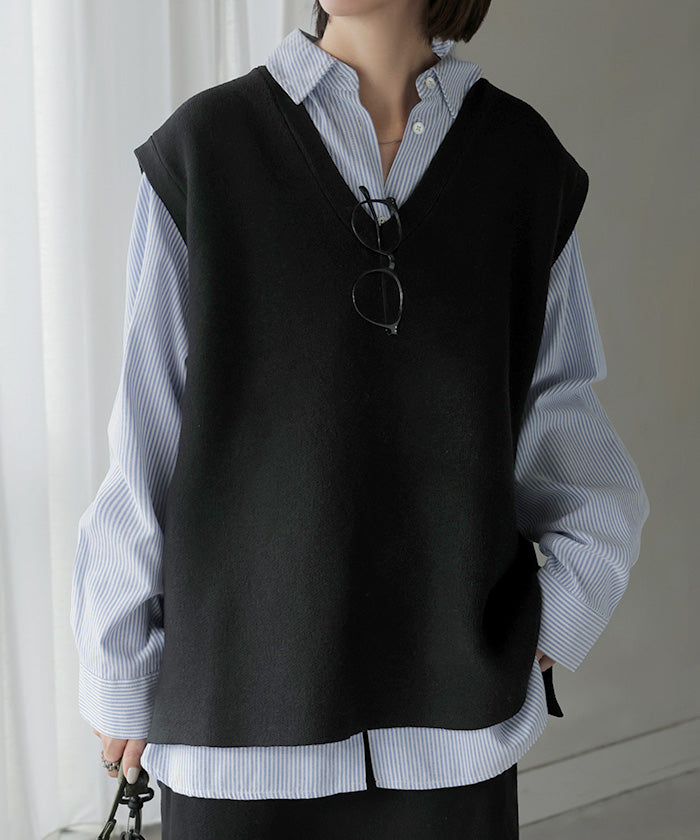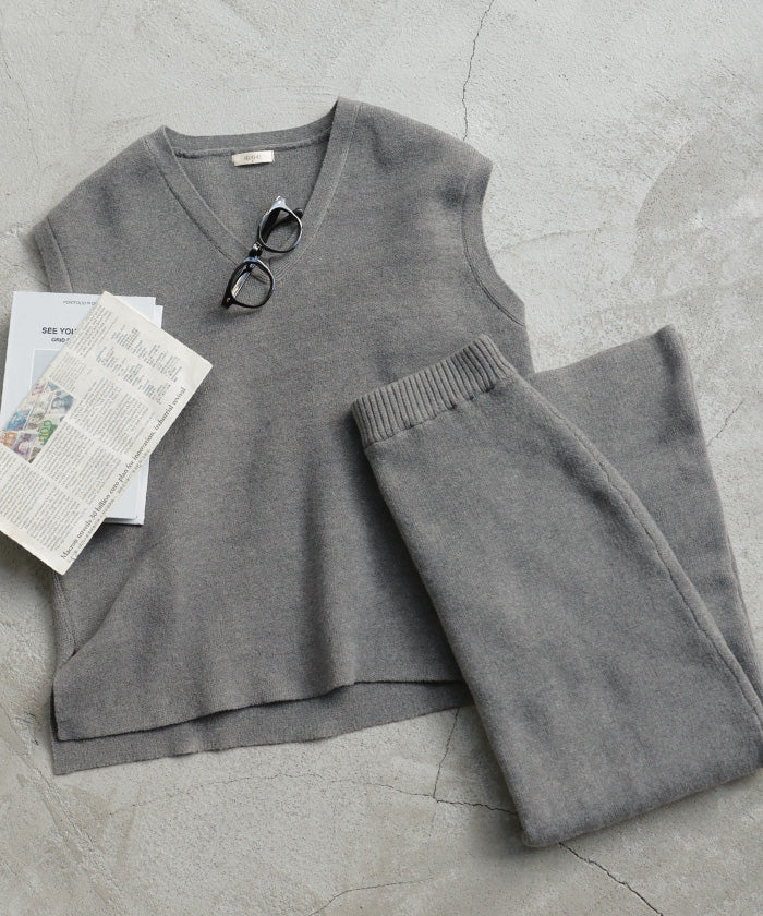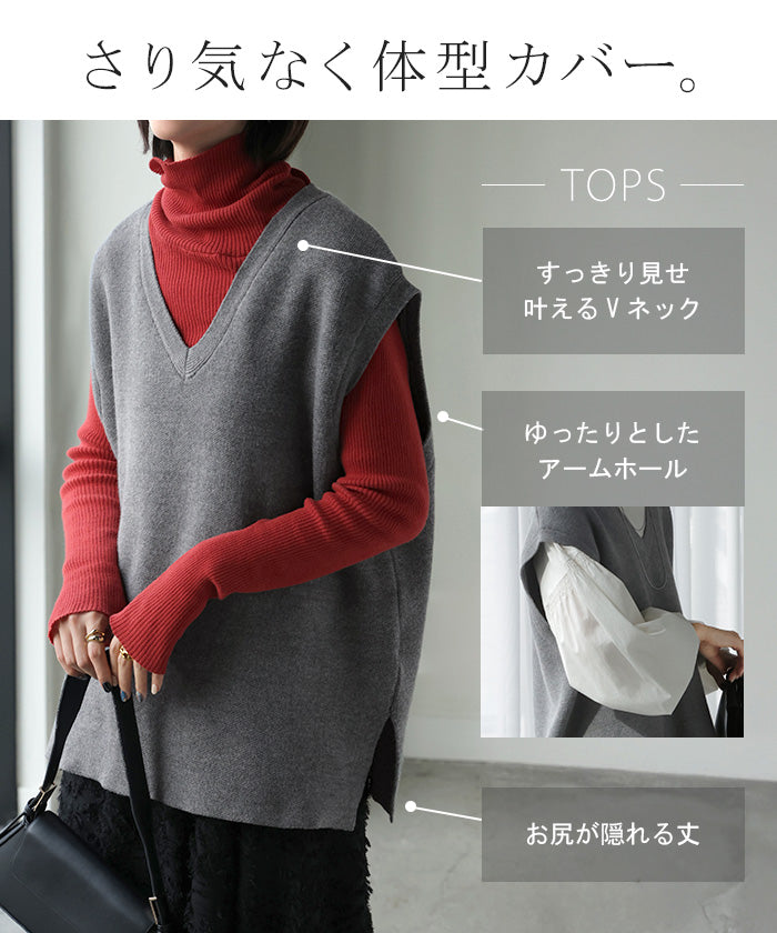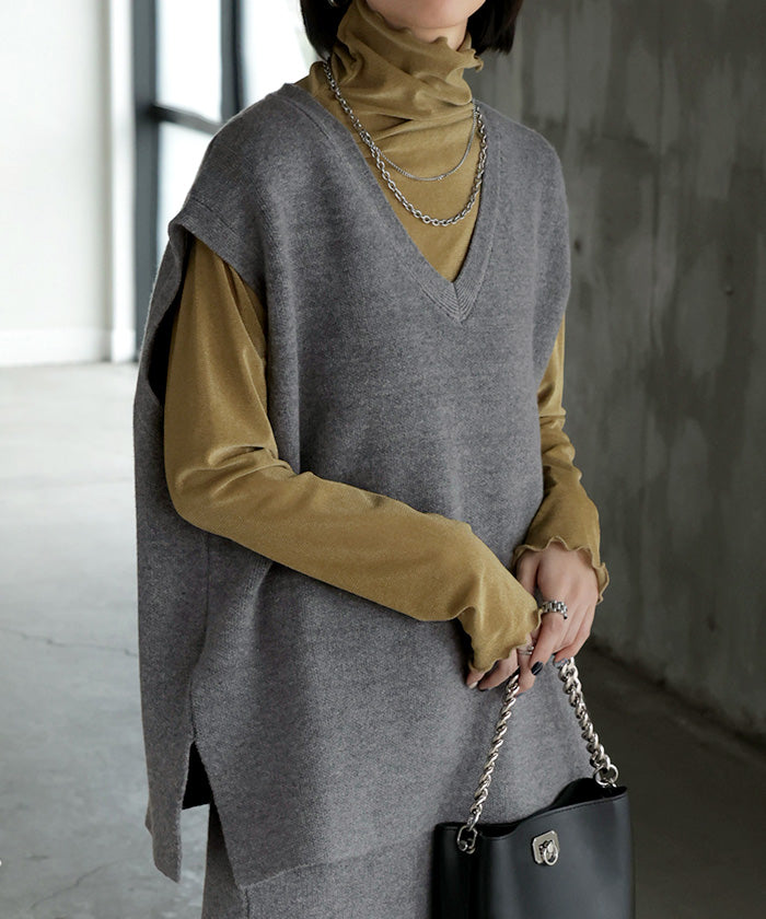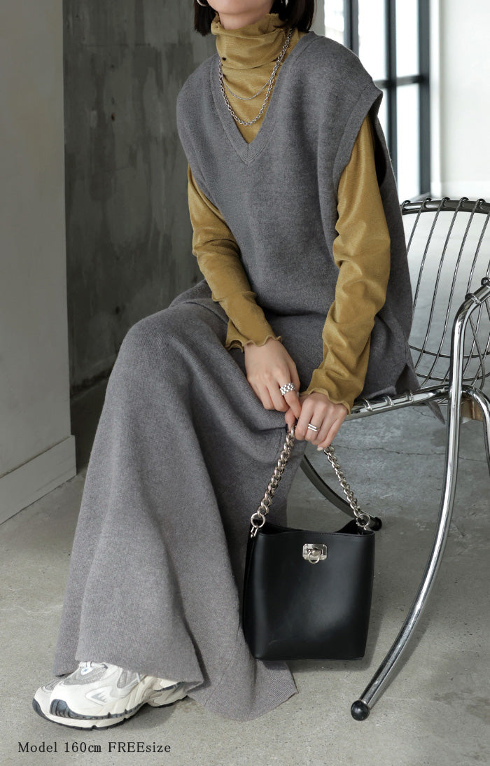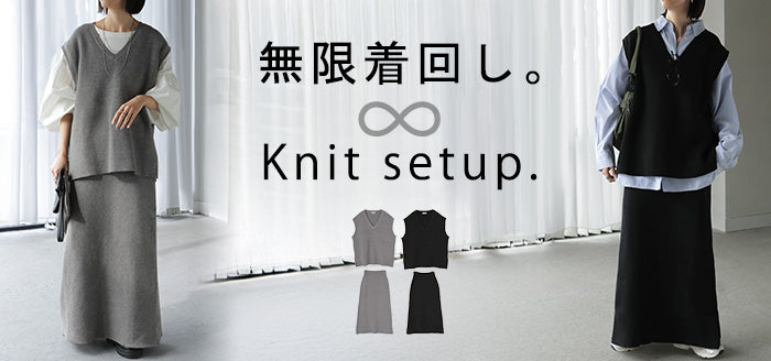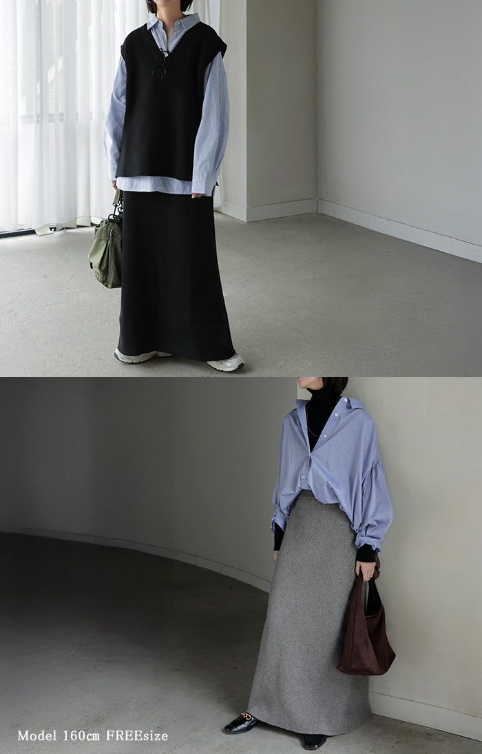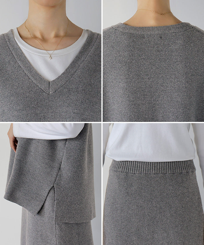 2025AW新作 セットアップ 「 ニットベスト × スカート 」 2点セット レイヤード ニット ベスト ニットスカート ジレ トップス チュニック ロング レディース ロングスカート 体型カバー 重ね着 ノースリーブ タンク Aライン ゴム きれいめ 黒 グレー 秋 冬 HUG.U