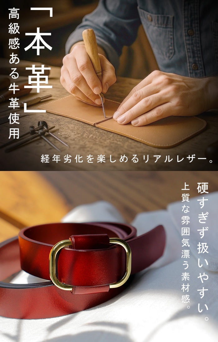 シンプルな構造で使いやすいですが、 本革仕様なので満足感が高いベルトでした! 長く使いたいです。