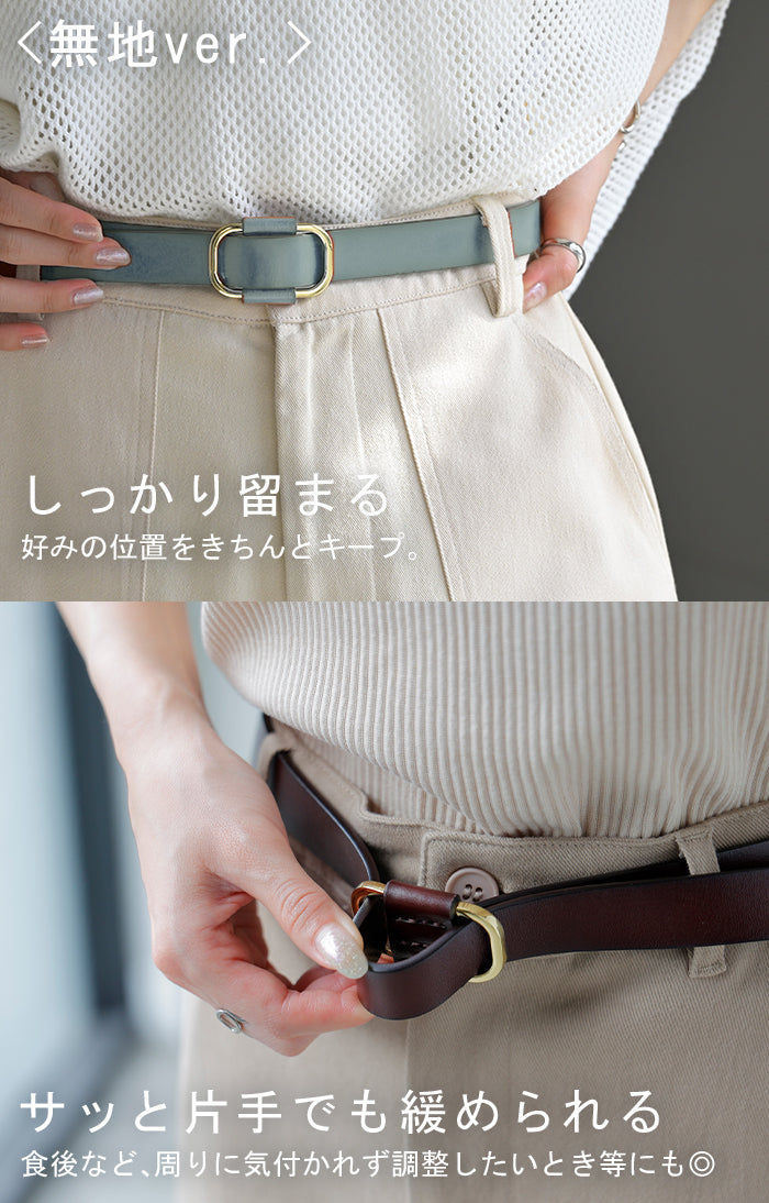 穴がないことで緩みにくく、また使い方にもすぐ慣れていただけたようで嬉しく思います。 なめらかな使用感を活かして、ぜひ日々のコーディネートにご活用ください。