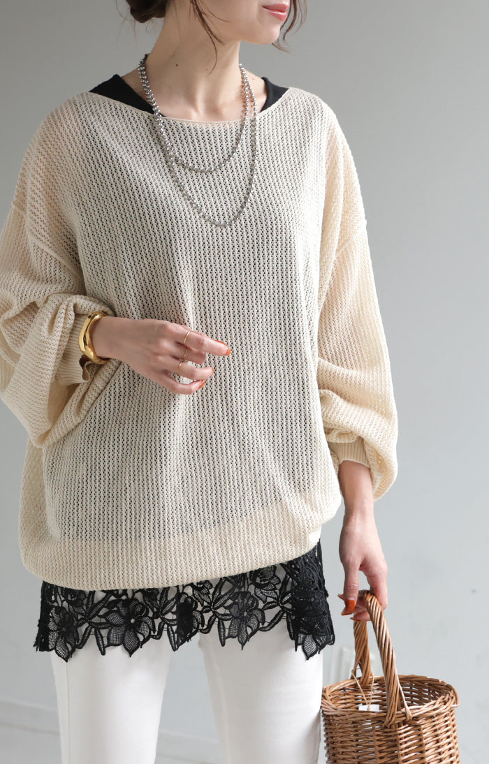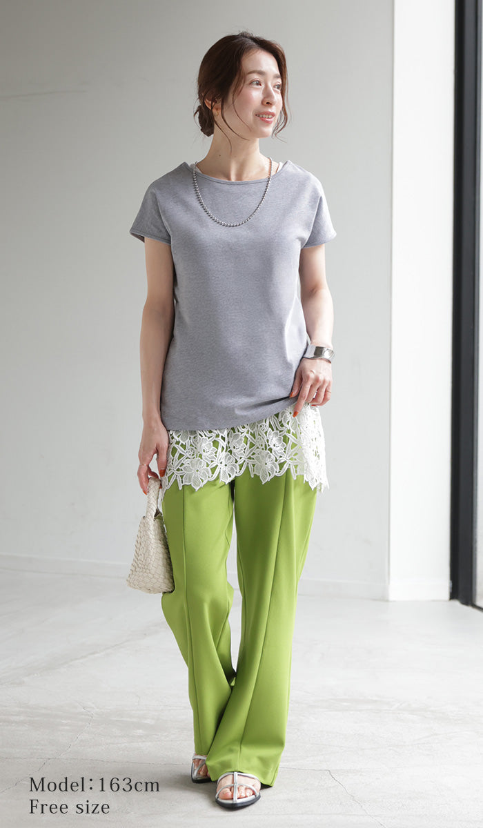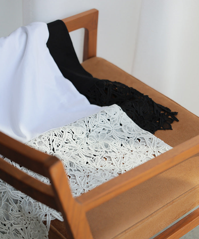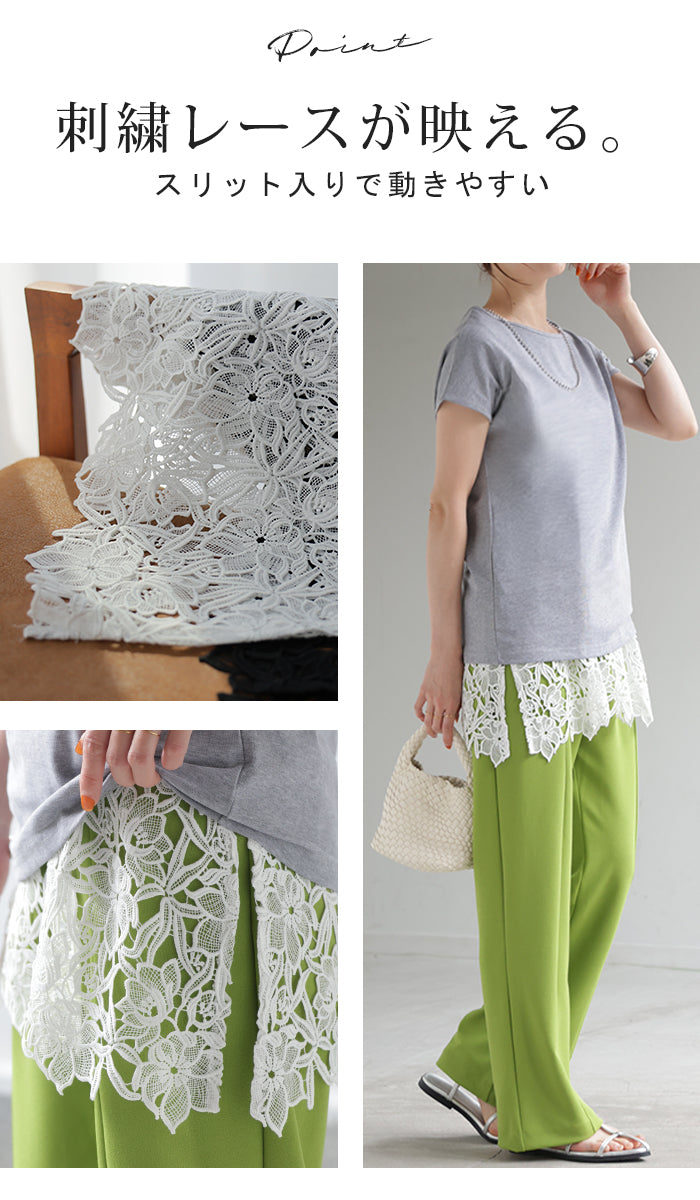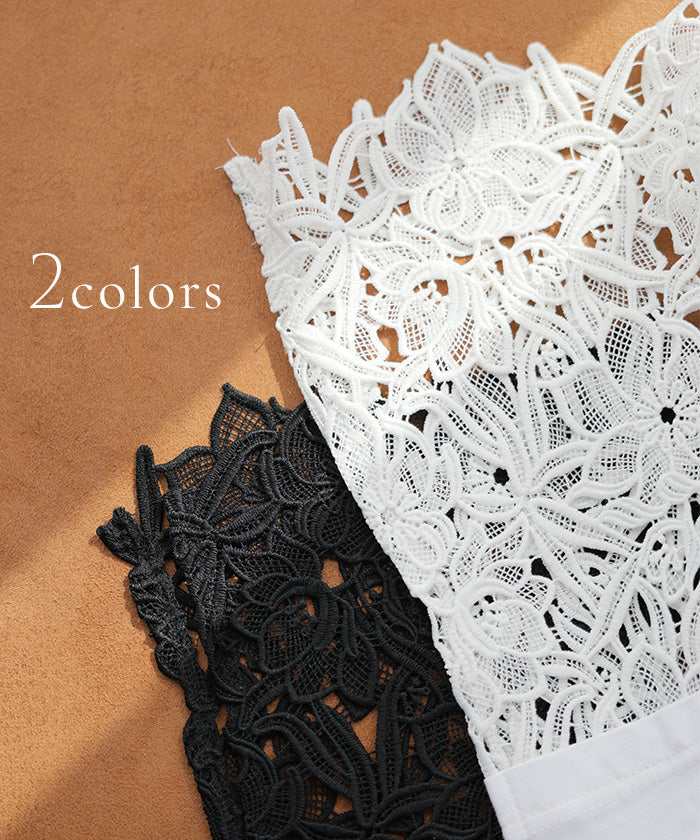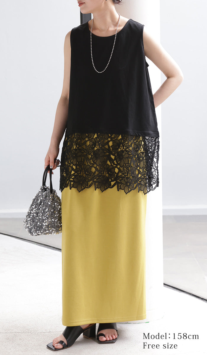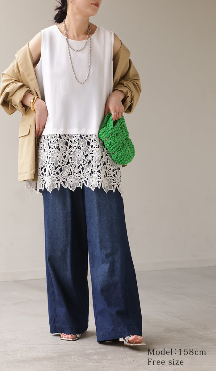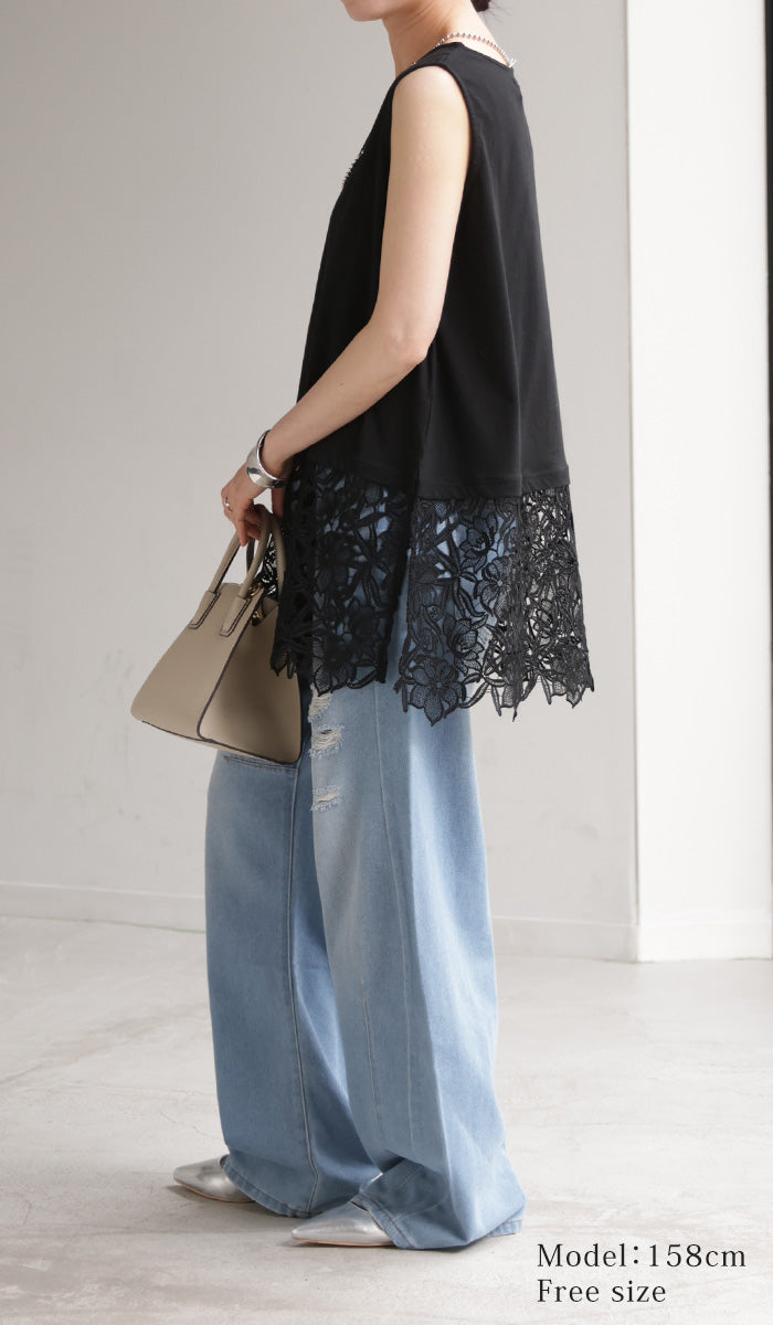 ドッキングデザインで華やかな印象の裾レースタンクトップです。