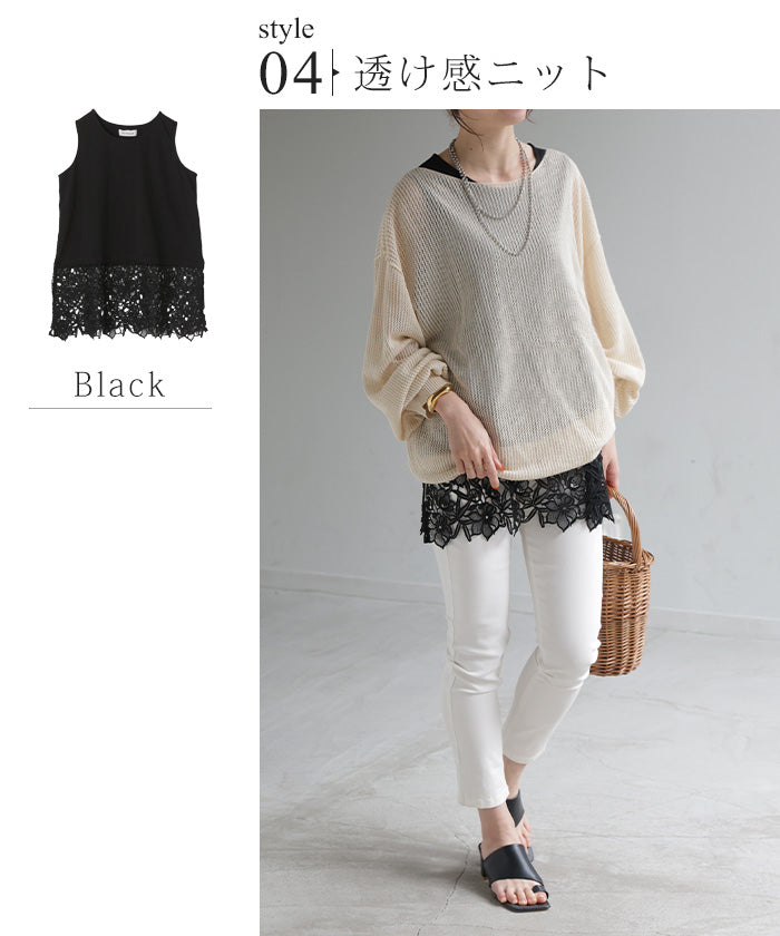 タンクトップ ノースリーブ レースタンク レースタンクトップ レイヤードタンクトップ レイヤードタンク インナータンクトップ インナータンク レイヤードトップス レイヤードインナー キャミ レイヤードキャミソール レイヤードキャミ インナーキャミソール インナーキャミ 袖なし 下着 無地 シンプル 重ね着風 つけ裾 付け裾 つけすそ 裾フリル 裾だし 裾出し ベーシック ベーシックインナー ロング 長い 長め ロングタンクトップ ロングタンク ロングキャミソール ロングキャミ ロング丈 ロング丈タンクトップ ロング丈タンク ロング丈キャミソール ロング丈キャミ Tシャツ カットソー ティーシャツ ティシャツ ロングTシャツ ロングティーシャツ ロングティシャツ ロングトップス ロングT ロングカットソー ティーシャツロング Uネック U字ネック 丸首 ボートネック チュニック チュニックTシャツ チュニックティーシャツ チュニック丈 チュニック丈タンクトップ チュニック丈タンク チュニック丈キャミソール チュニック丈キャミ チュニック丈Tシャツ チュニック丈T ミディアム ミディアム丈 ミドル ミドル丈 ロング丈カットソー すっきり スッキリ 太もも 太ももカバー 綿 綿100% コットン コットン100% コットン100 ふんわり フラワー フラワーレース ボタニカルレース レース刺繍 レース生地 レース素材 シアーレース 透かしレース サイドスリット スリット入り 異素材 異素材ミックス 平編み ジャージー メリヤス なめらか ラクチン らくちん 楽ちん 楽 動きやすい ゆる ゆったりサイズ ゆるカジ ゆるい ゆるファッション フリーサイズ フリー S M L LL 2L XL 3L XXL LLL ブラック 黒色 ホワイト 白色 重ね着 レイヤードコーデ 二の腕カバー 二の腕隠し 着痩せ お尻が隠れる 大きい 大きめ 大き目 プラスサイズ ビッグ ビック big ビックシルエット ビッグシルエット ビックサイズ ビッグサイズ オーバーサイズ オーバー ナチュラル 大人カジュアル レディースファッション オフィス オフィスカジュアル テレワーク リモートワーク リモート オンライン飲み会 韓国ファッション 韓国風 韓国 ストリート おうち時間 お家時間 デート お出かけ フェス リゾート ビーチ 海 旅行 飛行機 パーティー パーティ 母の日 プレゼント ギフト 贈り物 クリスマス 大人 オトナ 女性 綺麗 綺麗目 きれい キレイ キレイめ キレイメ 高見え 上質 上品 旬 トレンド 20代 30代 40代 50代 60代 おしゃれ お洒落 オシャレ 可愛い かわいい カワイイ カッコいい 格好良い カッコイイ 春 夏 秋 冬 春夏 秋冬 BeeBouquet Bee Bouquet びーぶーけ
