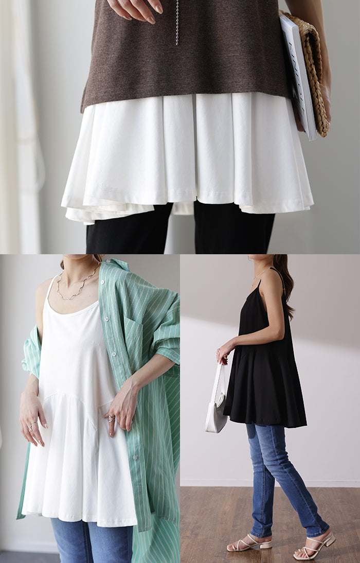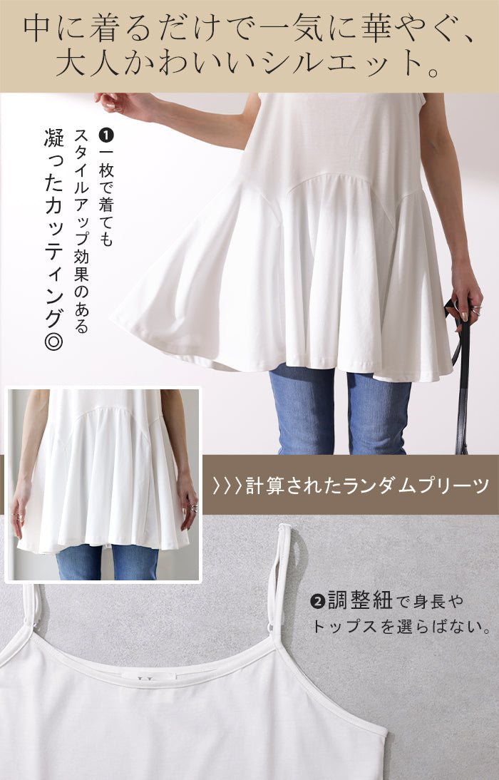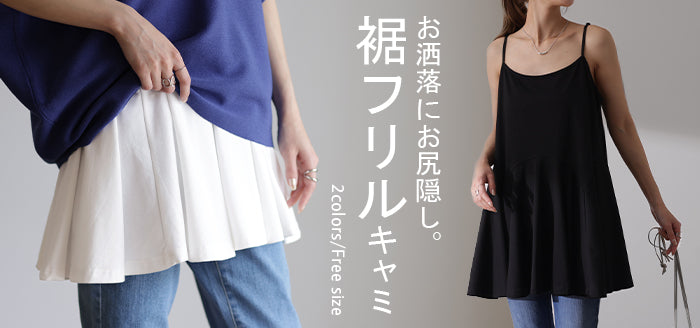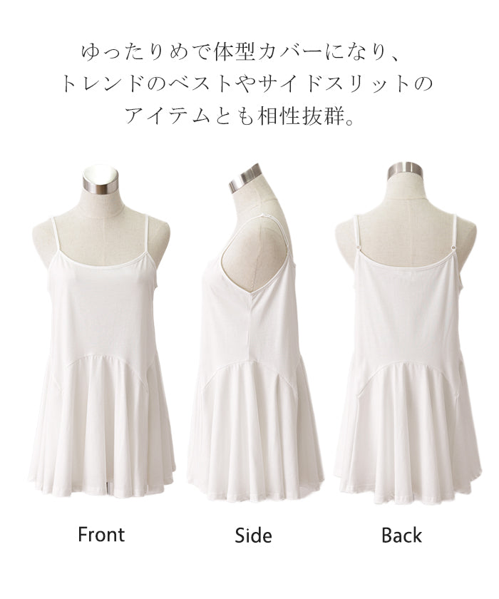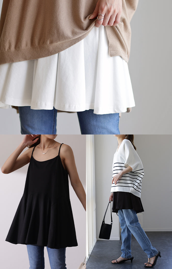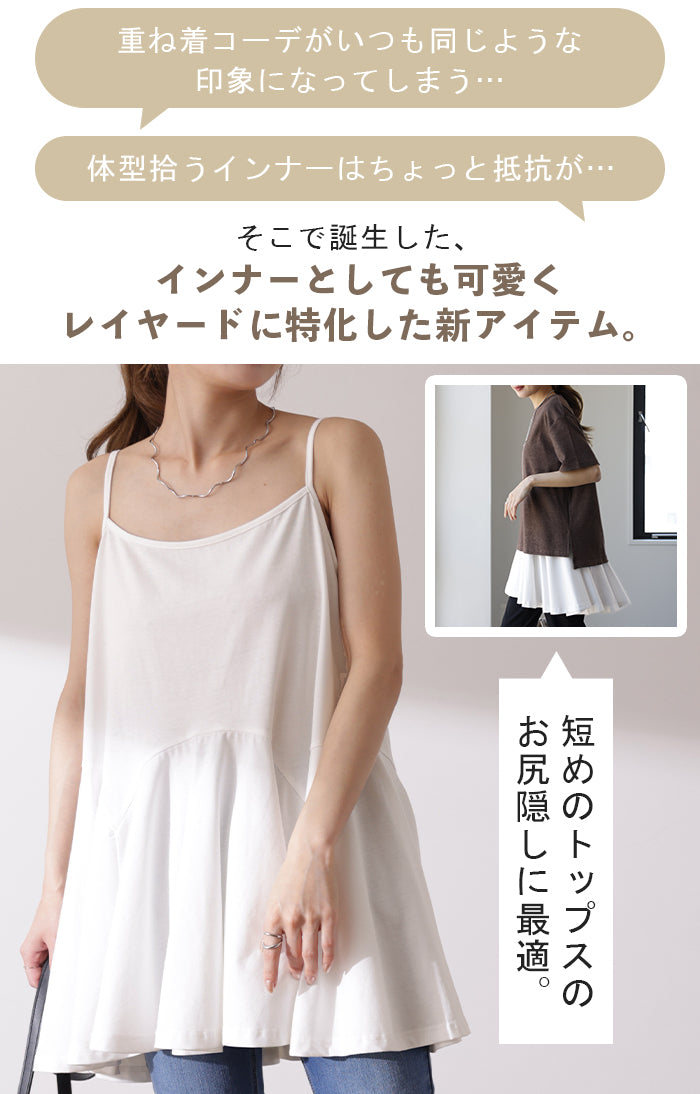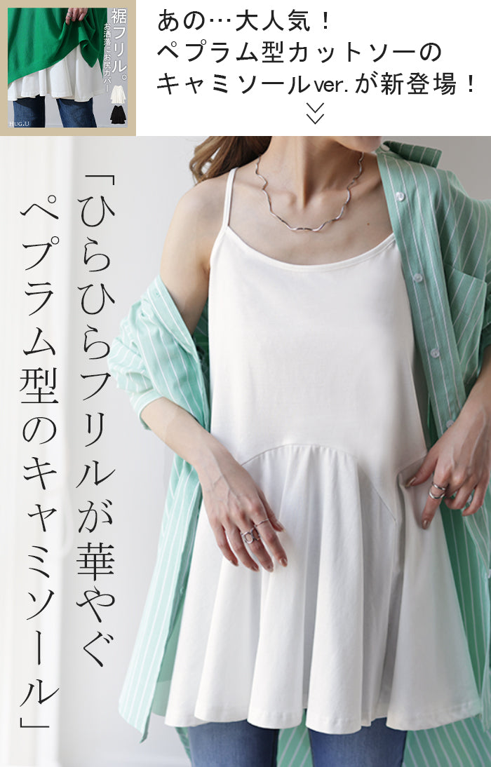 長さ 調節可能。お尻を隠す 裾フリル キャミ ■一部3月上旬入荷 ペプラム フリル キャミソール レイヤード 裾 ロング お尻が隠れる レイヤードキャミソール レディース 重ね着 トップス 無地 バックフリル 体型カバー 大きいサイズ 付け裾 黒 白 春 夏 HUG.U メール便