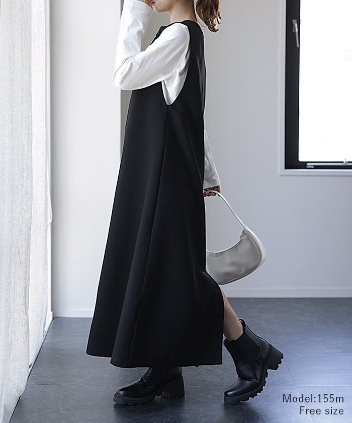 『 前後 2way ワンピ 』で2倍お洒落。 ワンピース レディース ロングワンピース ロング オケージョン マキシ ノースリーブ パーティー 袖なし きれいめ Vネック スリット フォーマル パーティードレス 二次会 大きいサイズ ロング丈 黒 春 夏 HUG.U