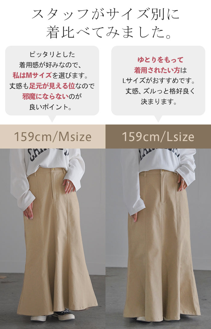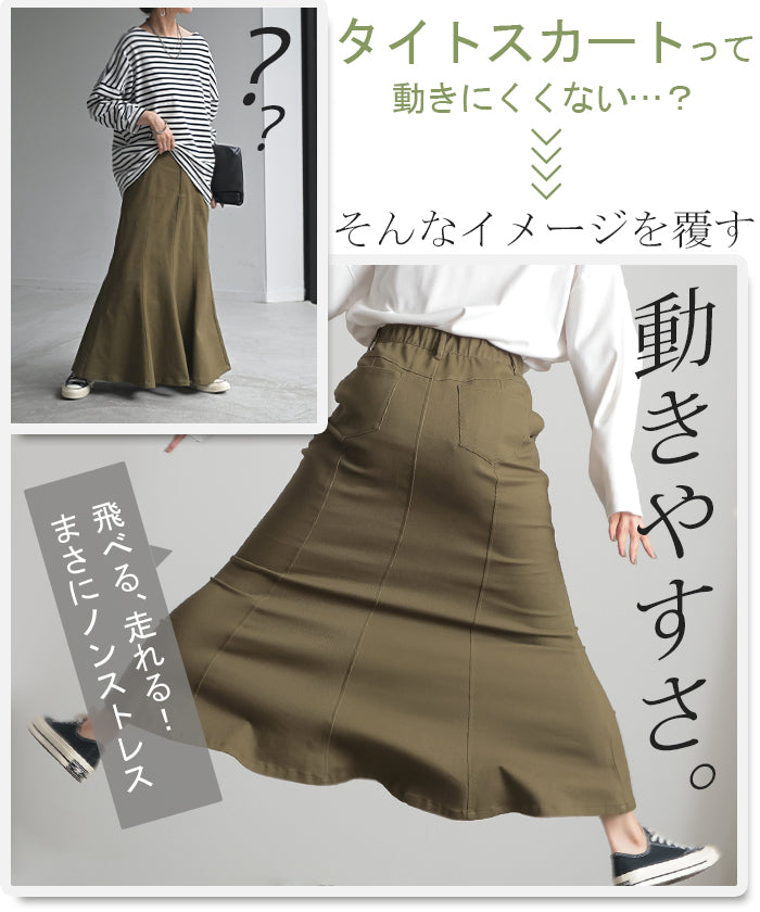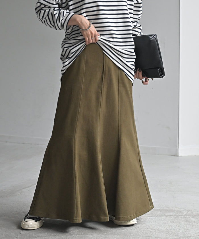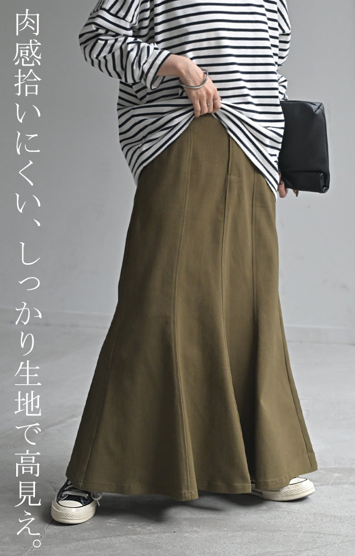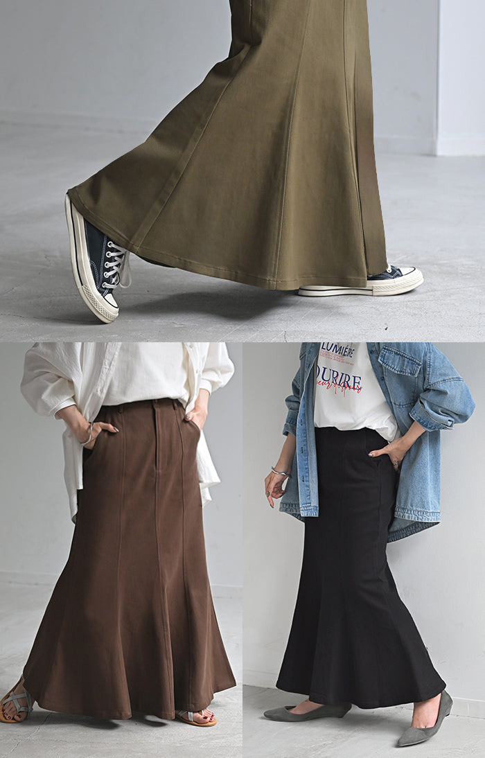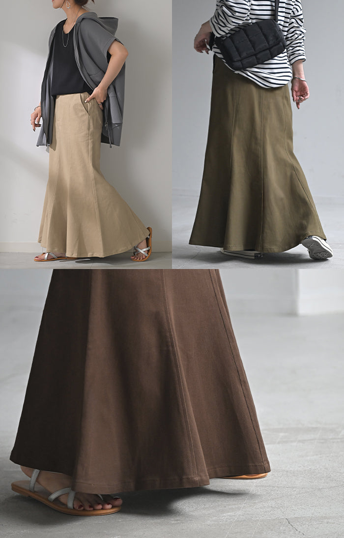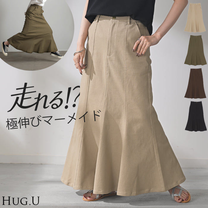 スカート マーメイド ロング チノ レディース ■一部3月中旬入荷 ボトムス 無地 フレア フレアスカート ハイウエスト ウエストゴム マキシ マキシスカート ロングスカート マーメイドスカート 大きいサイズ 体型カバー ゆったり ミリタリー 上品 カーキ 黒 夏 春 HUG.U