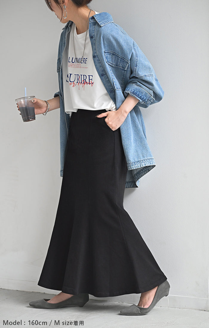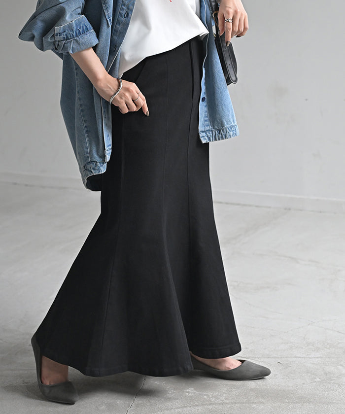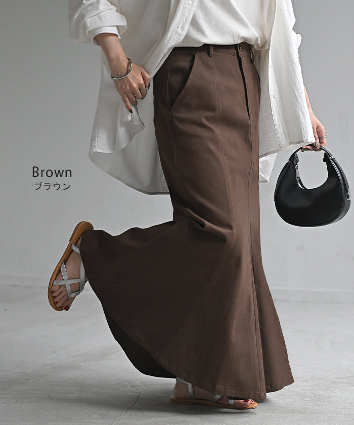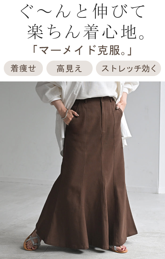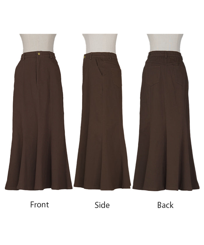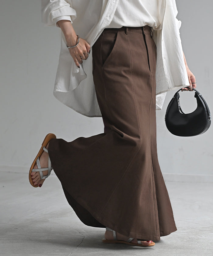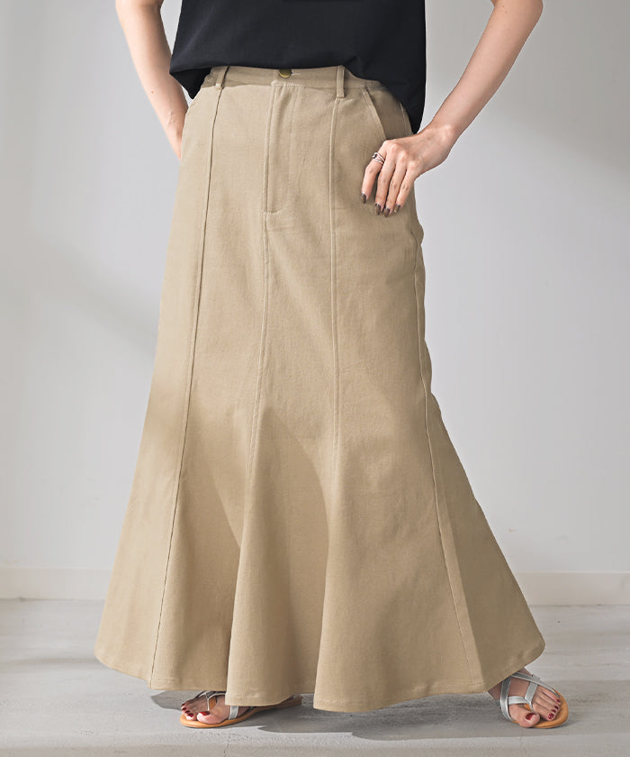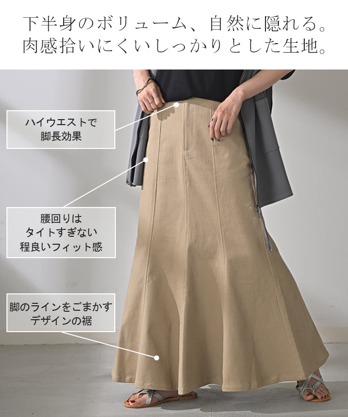スカート マーメイド ロング チノ レディース ■一部3月中旬入荷 ボトムス 無地 フレア フレアスカート ハイウエスト ウエストゴム マキシ マキシスカート ロングスカート マーメイドスカート 大きいサイズ 体型カバー ゆったり ミリタリー 上品 カーキ 黒 夏 春 HUG.U