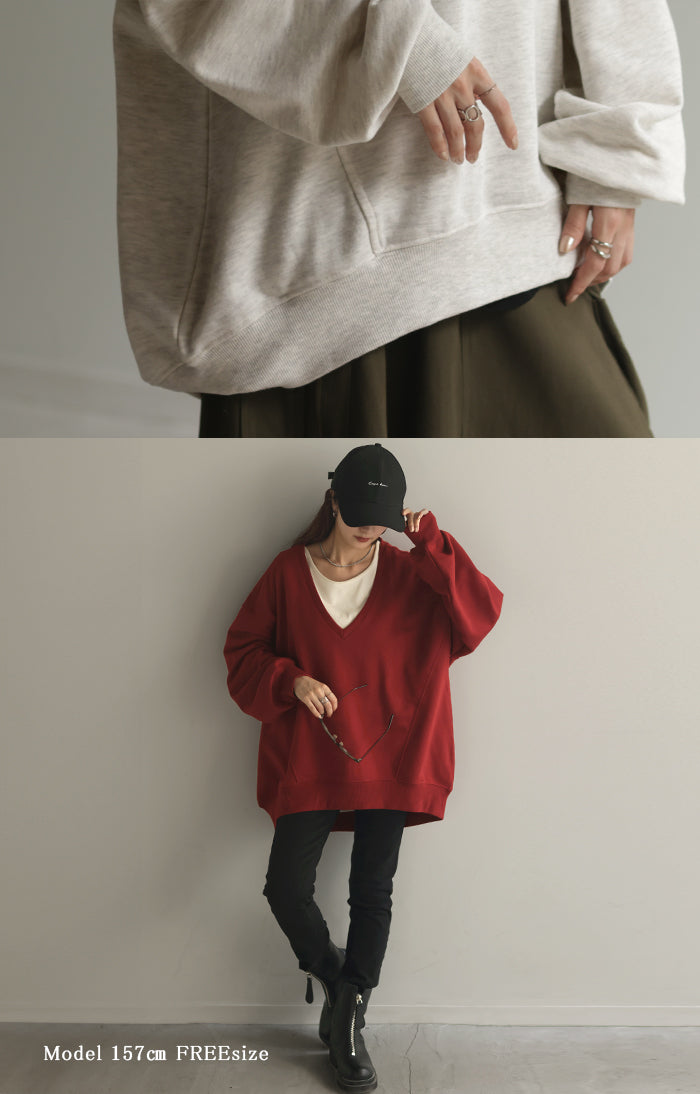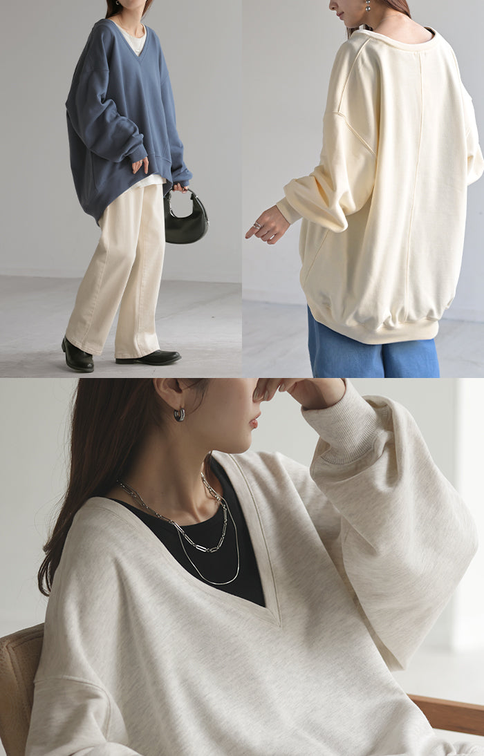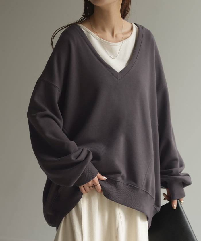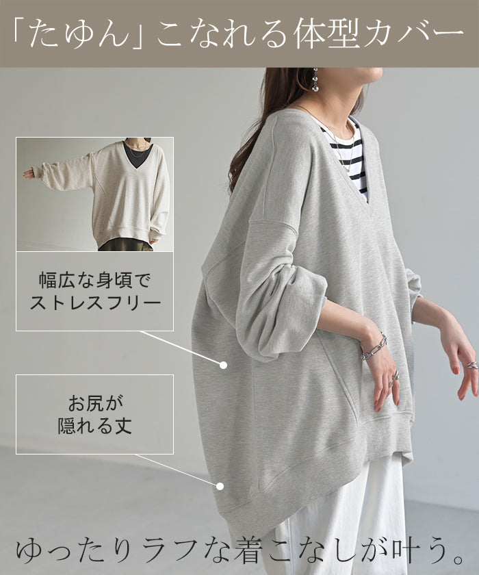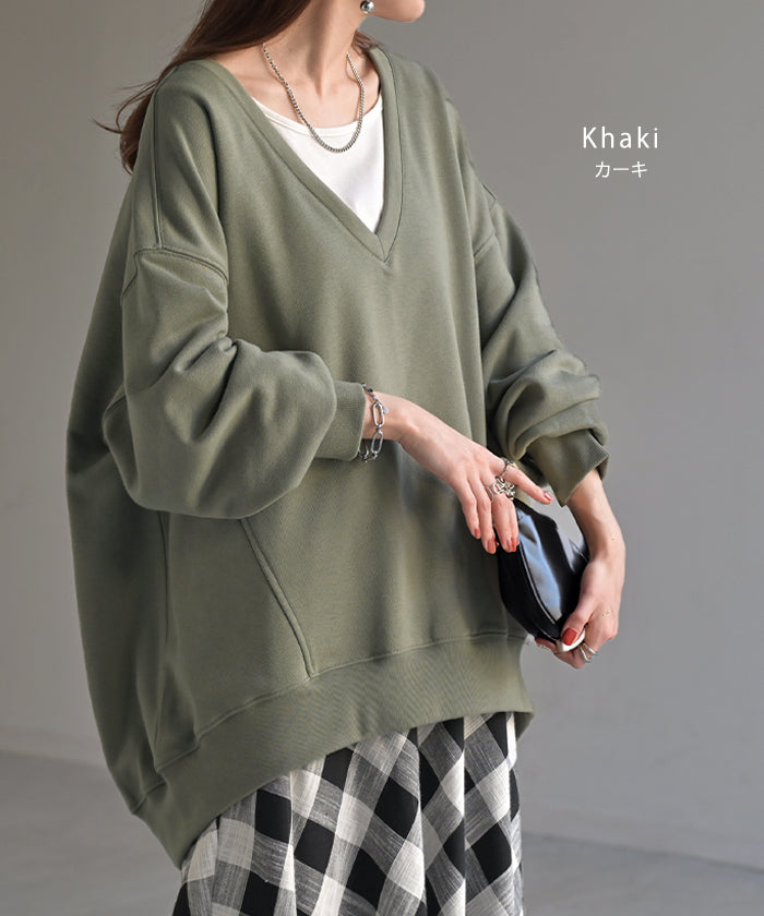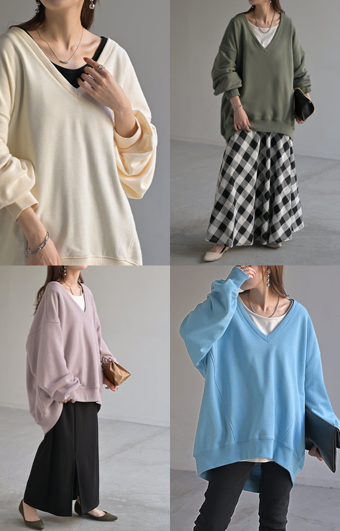 ダボッとしていて後ろのシルエットが可愛い。Vネックがスッキリ見えていい。もう1枚欲しいくらいかわいい
