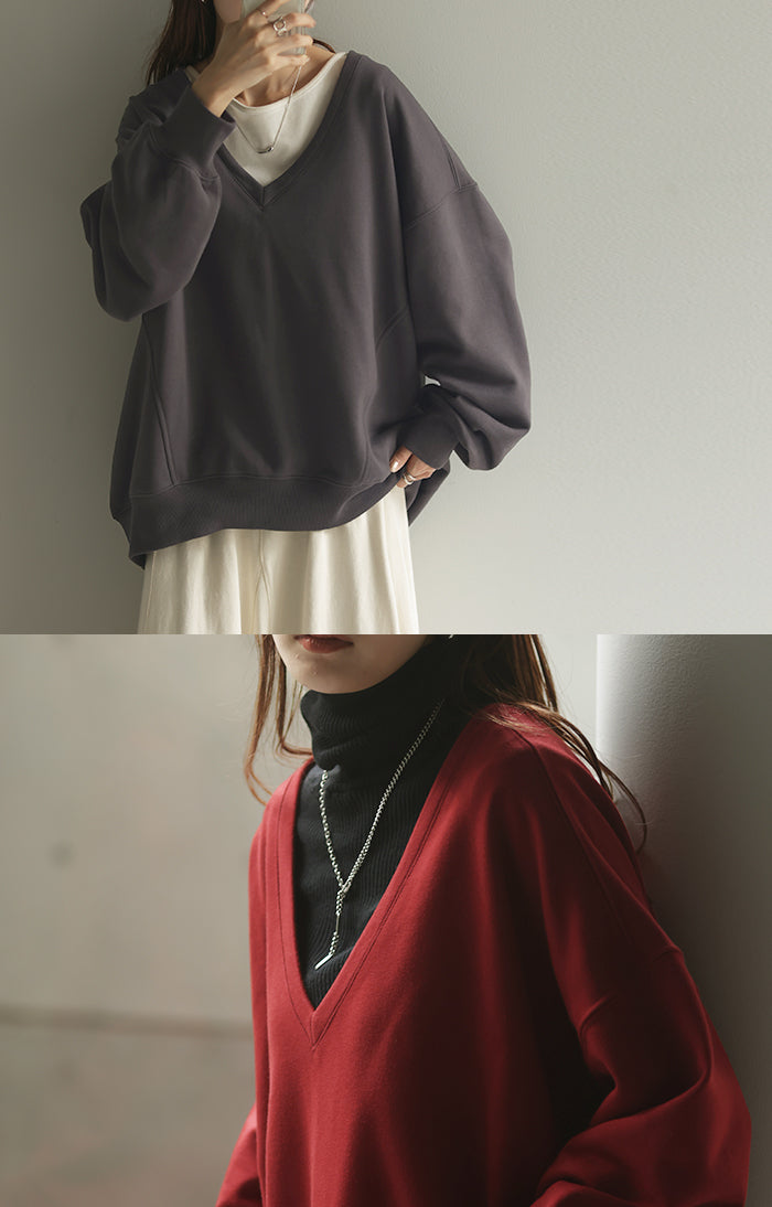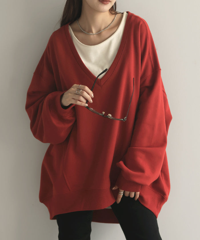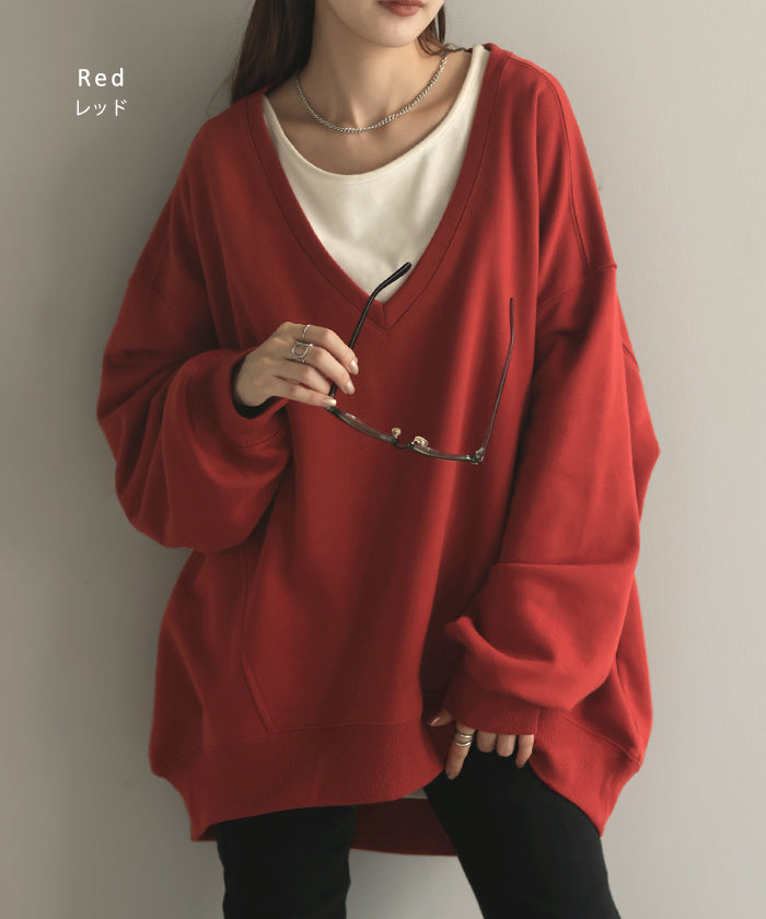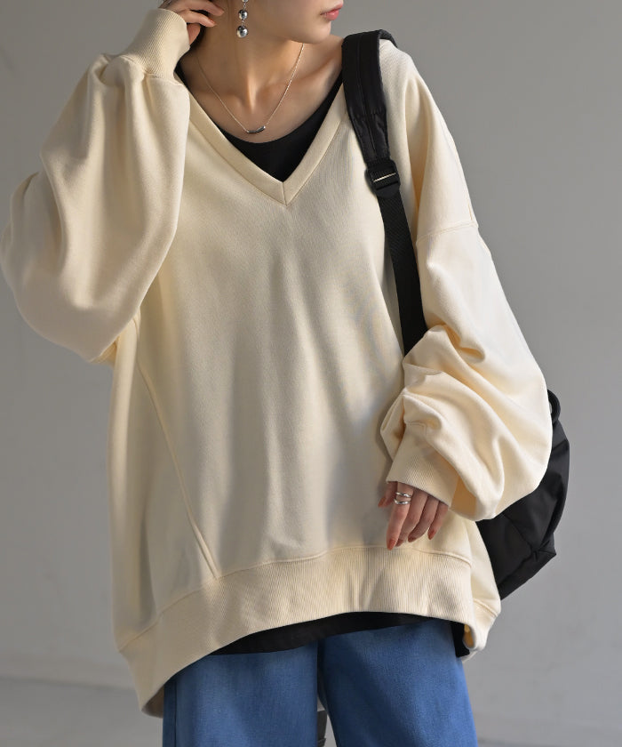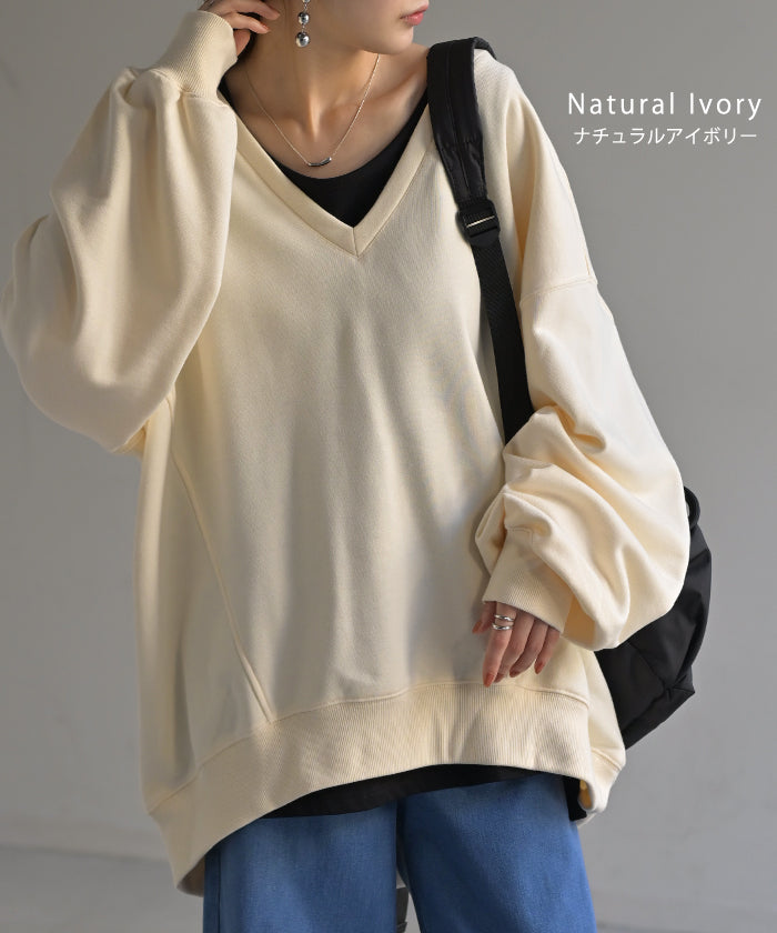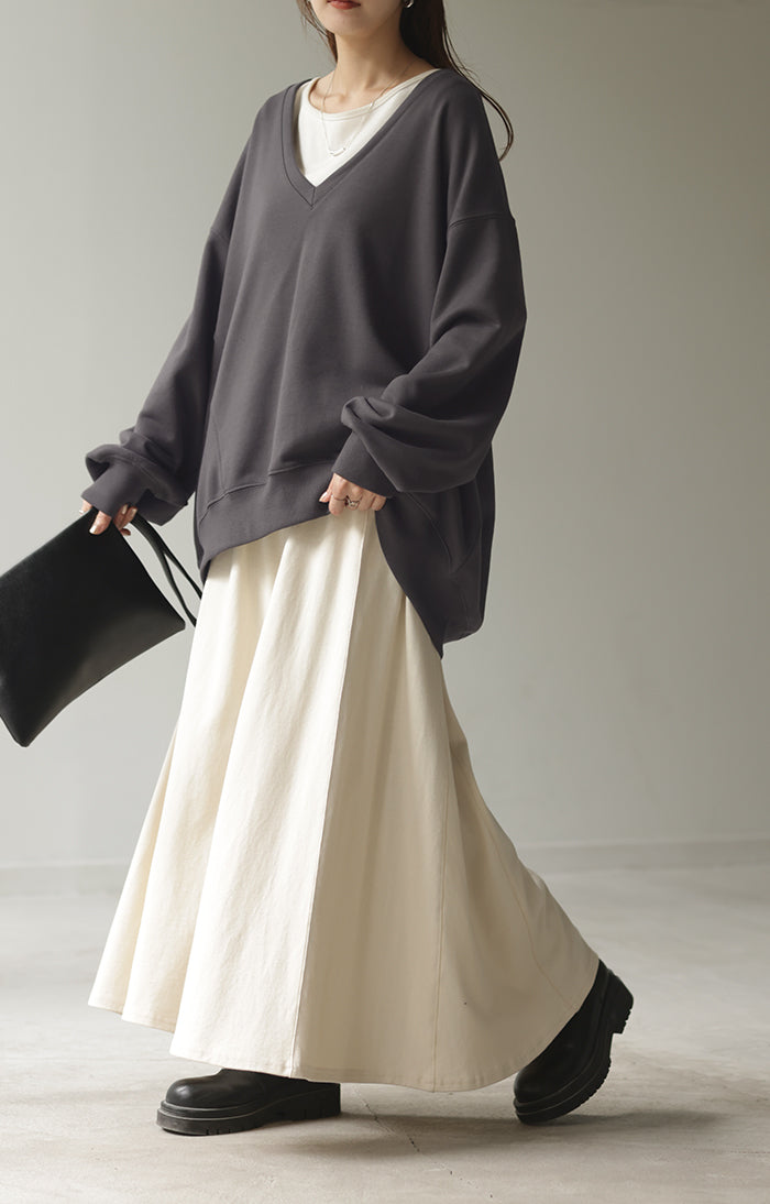 ダボッとしていて後ろのシルエットが可愛い。Vネックがスッキリ見えていい。もう1枚欲しいくらいかわいい