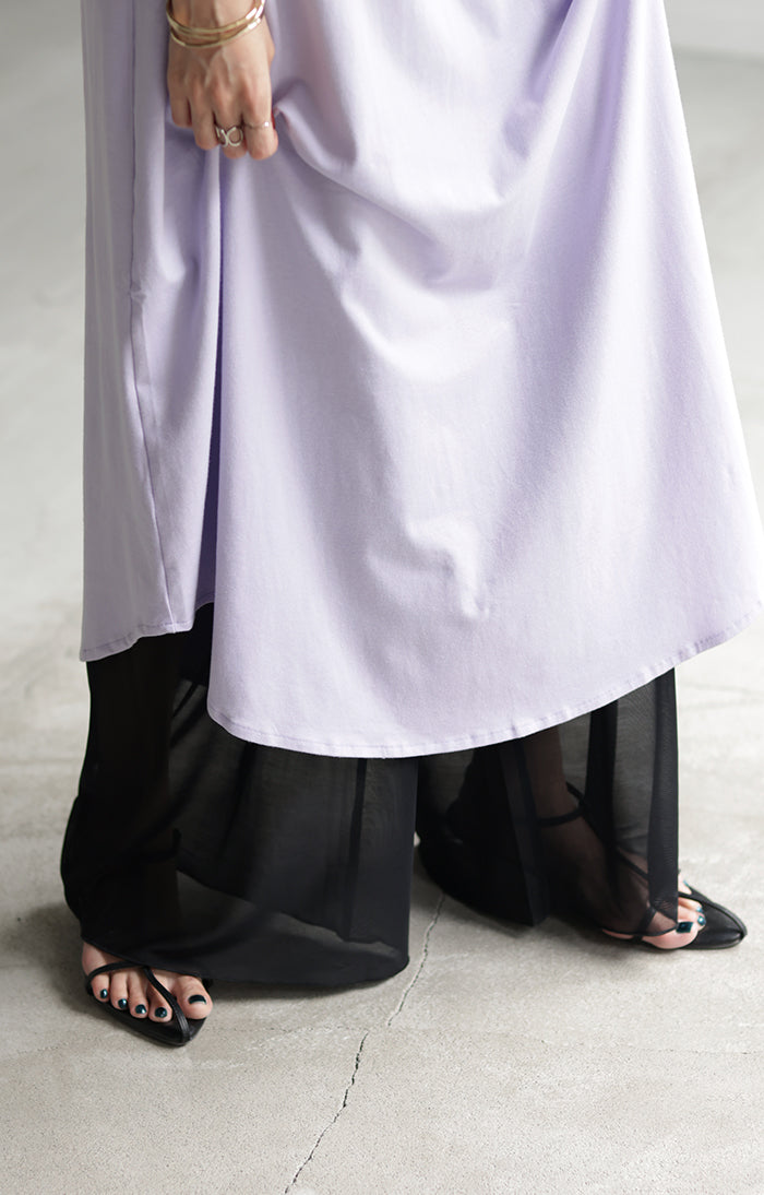 少し丈の短いワンピースに合わせるのに買いました。 まだ蒸し暑い日もあるので腰辺りの綿素材や裾メッシュなのはありがたい。 そして、なんにでも合わせやすい✨