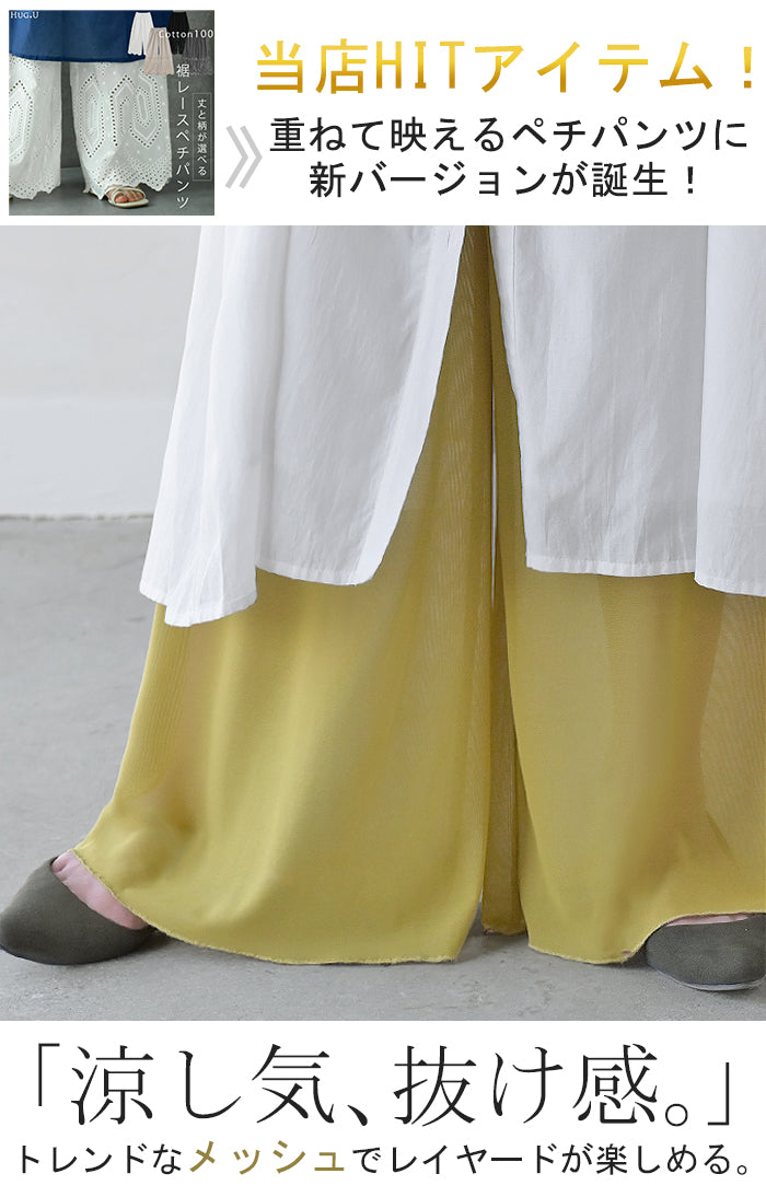 大きめで、ひざの下メッシュでワンピースの下にはいても涼しいです。 どんな色やワンピースの下にはいてもも合いそうで、重宝しそうです。