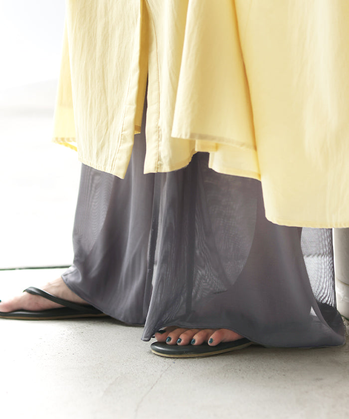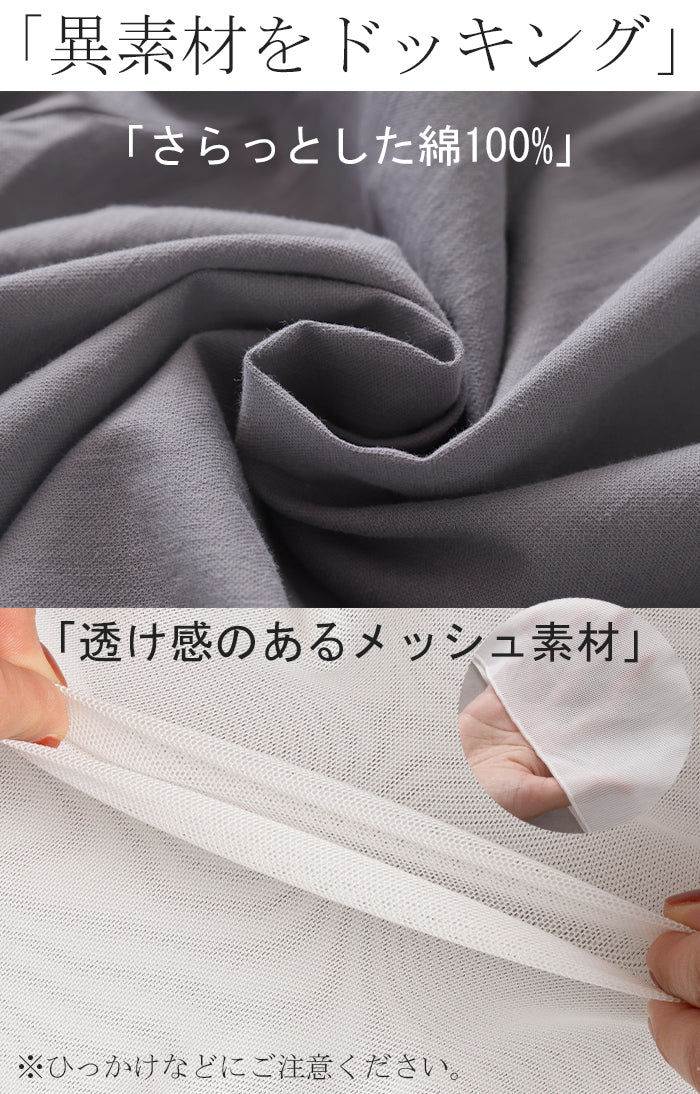 嬉しいご感想をお寄せいただきありがとうございます。 ワンピースに合わせてお選びいただけたとのこと、とても光栄です。 綿素材や裾のメッシュも気に入っていただけて安心いたしました。 ぜひこれからも、様々なコーディネートに合わせていただけますと幸いです。 引き続きご愛顧の程よろしくお願いいたします。