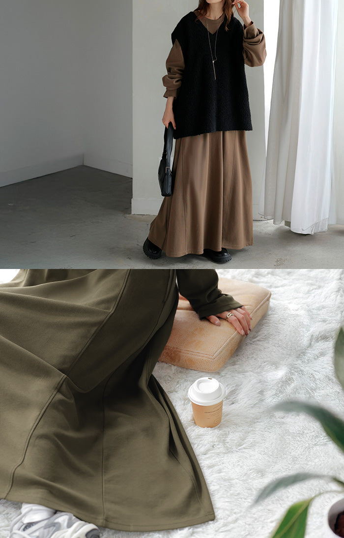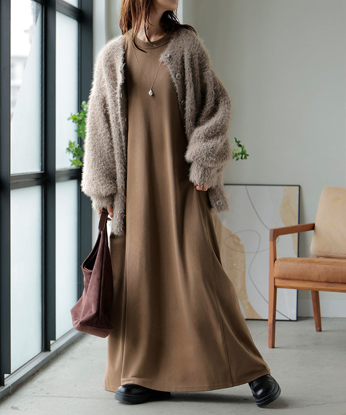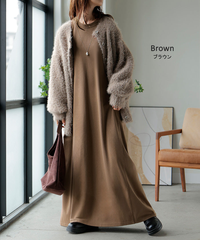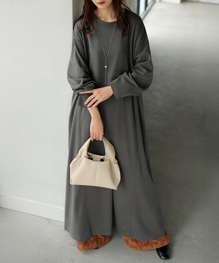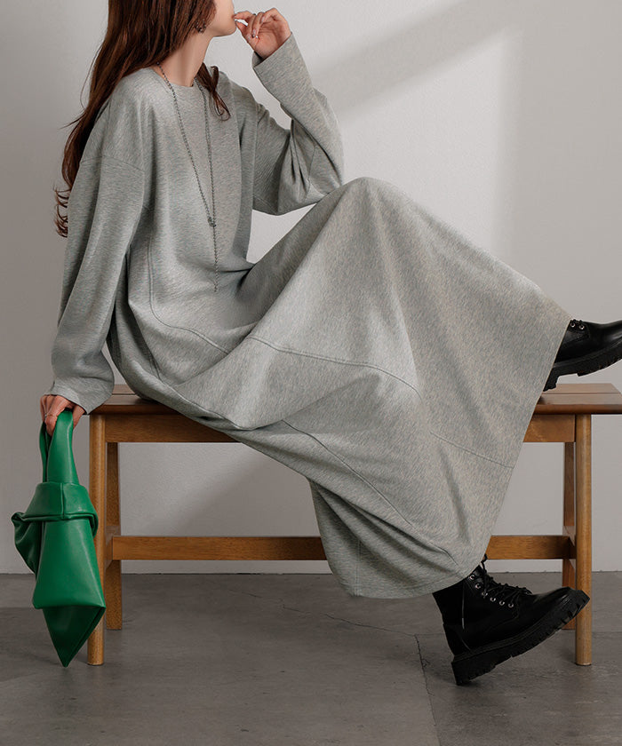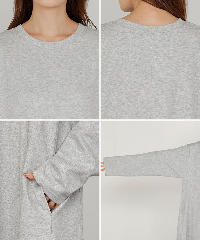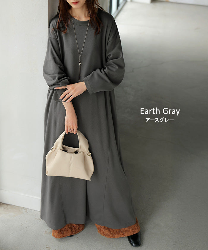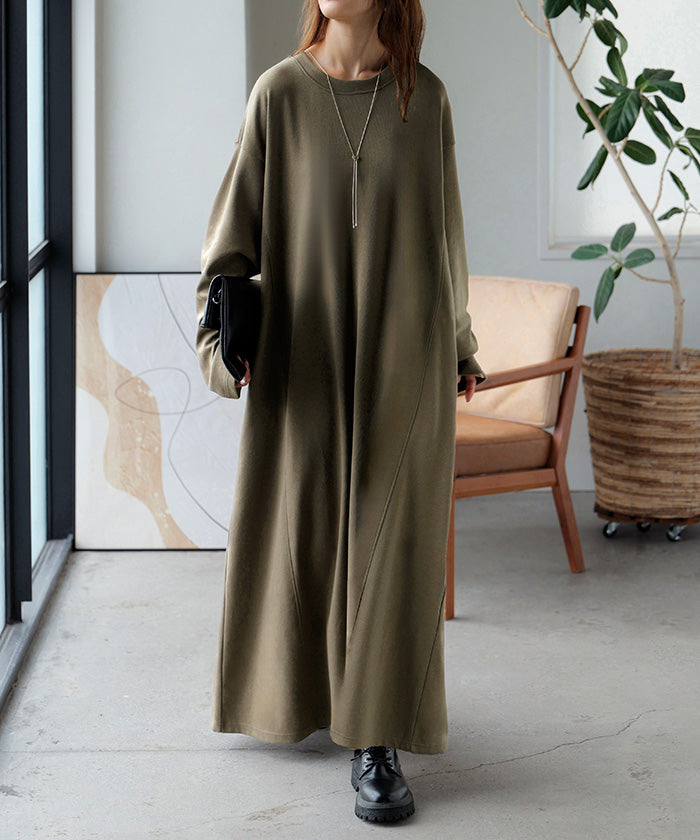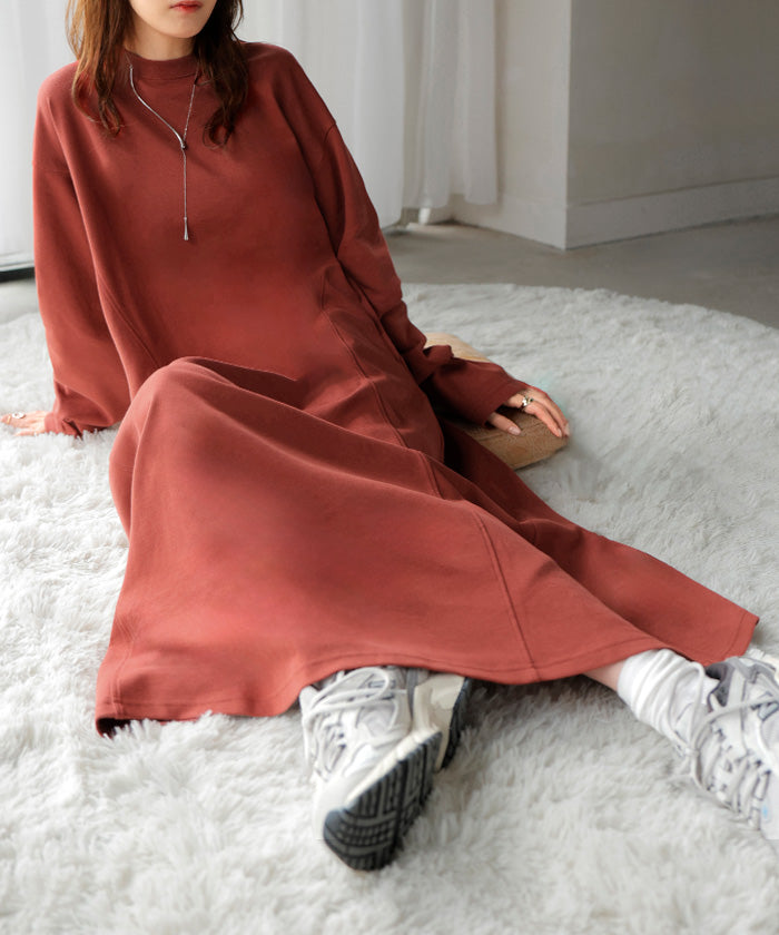 2025AW新作 ワンピ ロング ポンチ 防汚 " 選べる 2丈 " レディース ロンT ロングワンピース カットソー コットンポンチ Aライン マキシ マキシワンピース ロングワンピ クルーネック カラバリ ストレッチ カジュアル 高身長 長袖 大きいサイズ 無地 黒 白 秋 冬 HUG.U