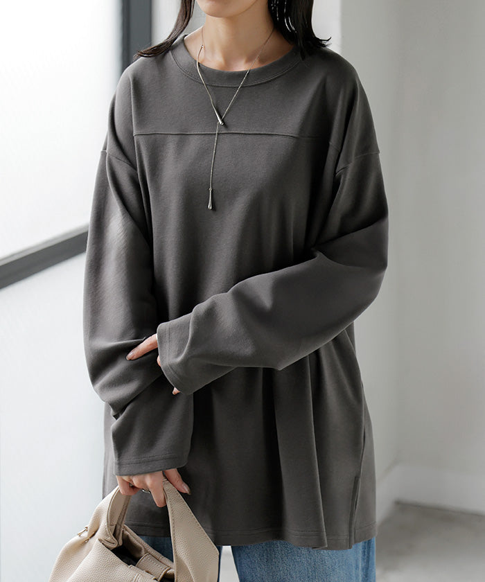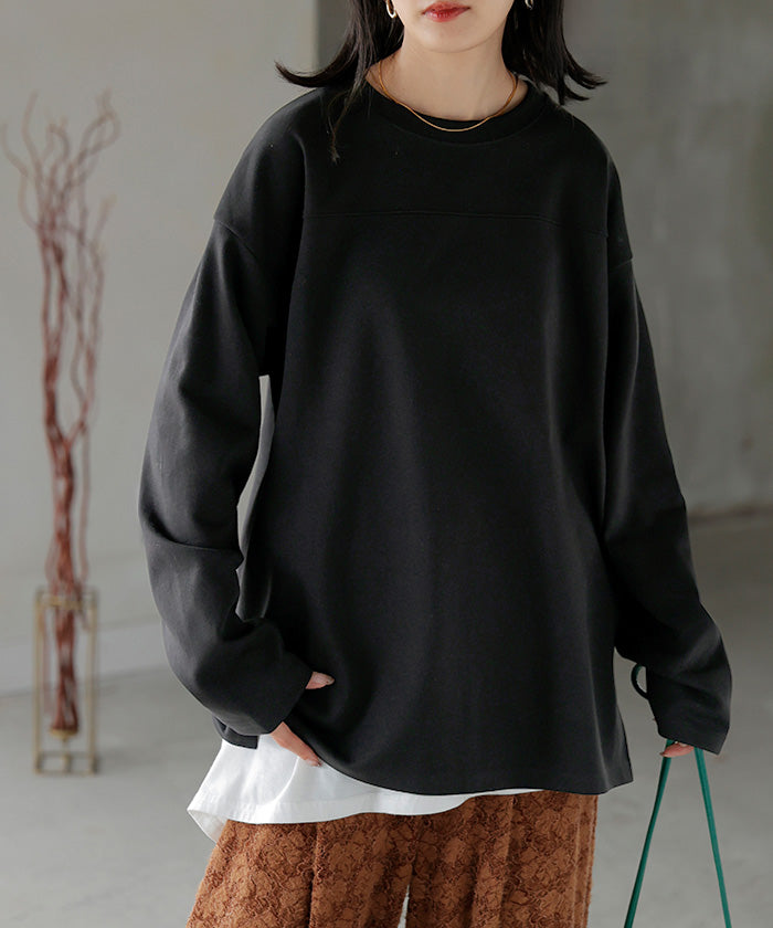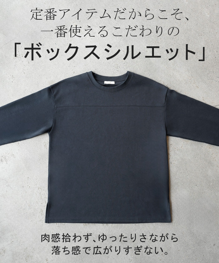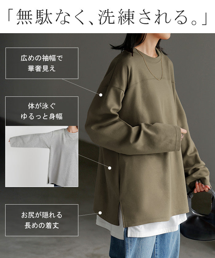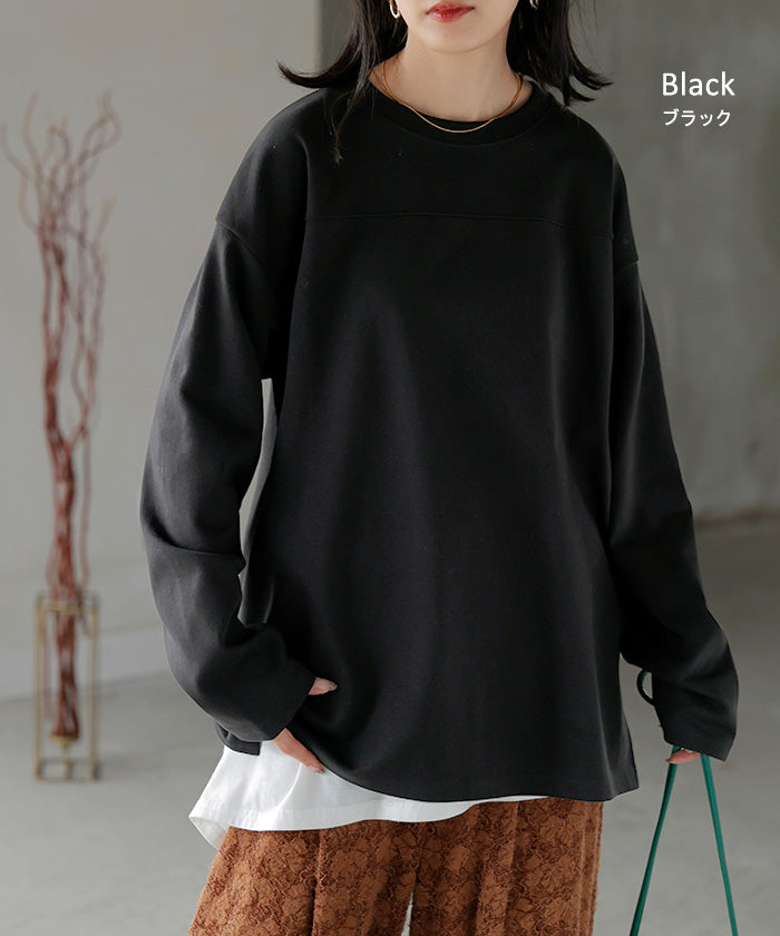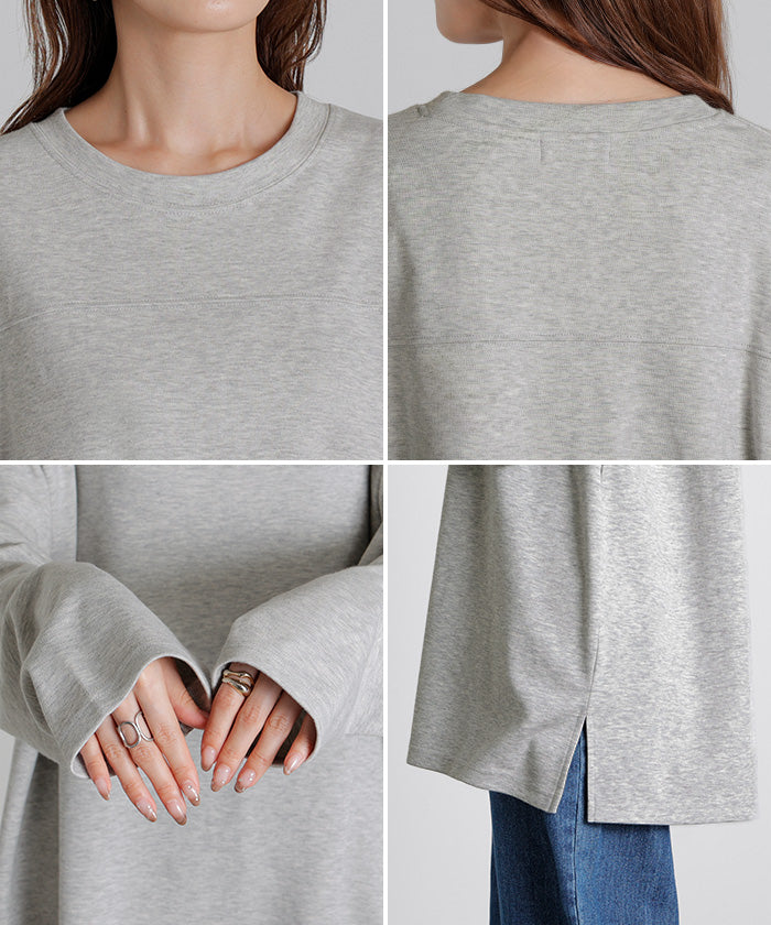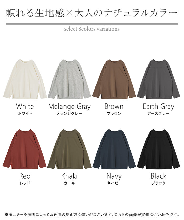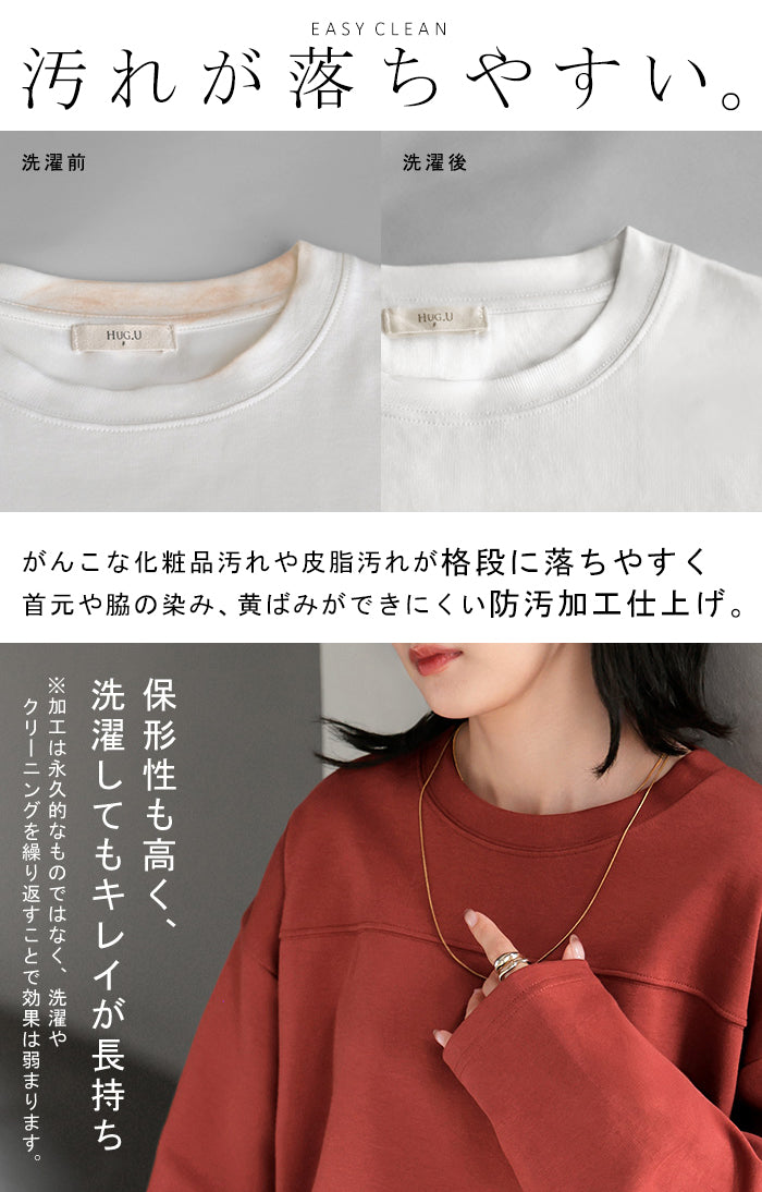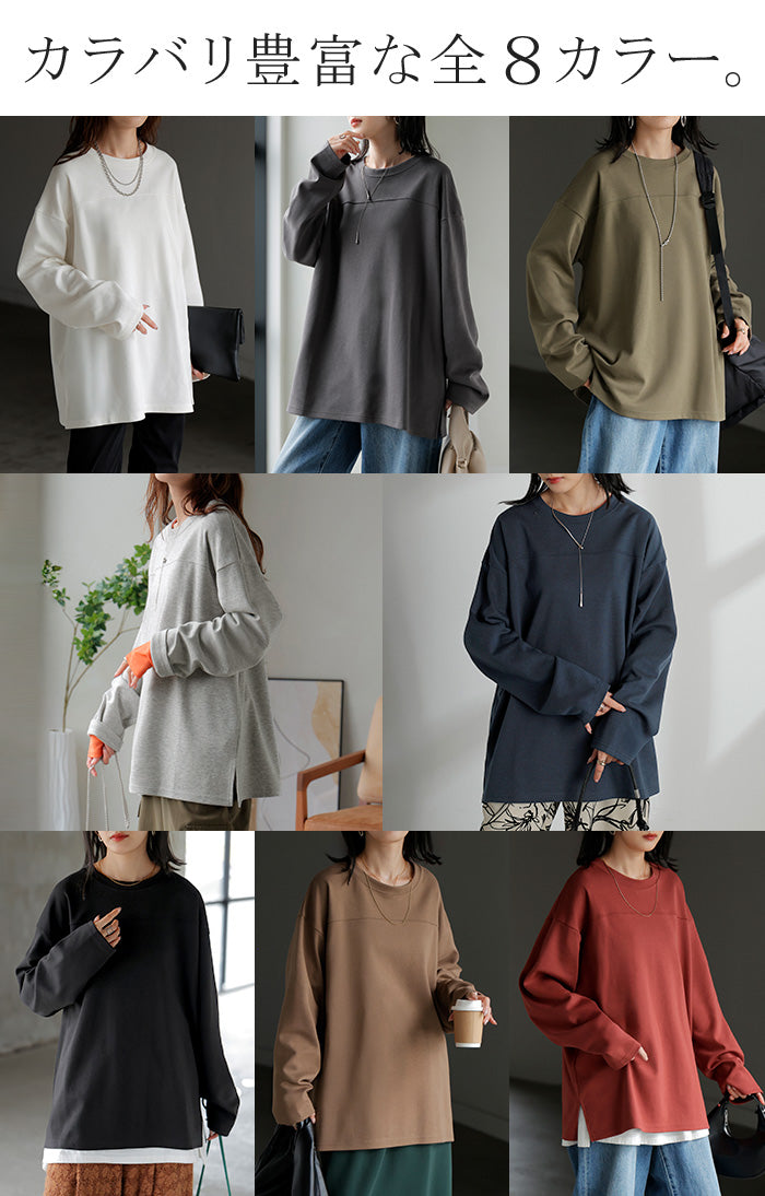 2025AW新作 ロンT ポンチ 防汚 レディース ■一部11月上旬入荷 トップス ロング 長袖 Tシャツ カットソー ティーシャツ フットボールT チュニック クルーネック コットンポンチ カラバリ ストレッチ 長い ゆったり 無地 体型カバー お尻が隠れる 大きいサイズ おしゃれ 白 黒 秋 冬 HUG.U
