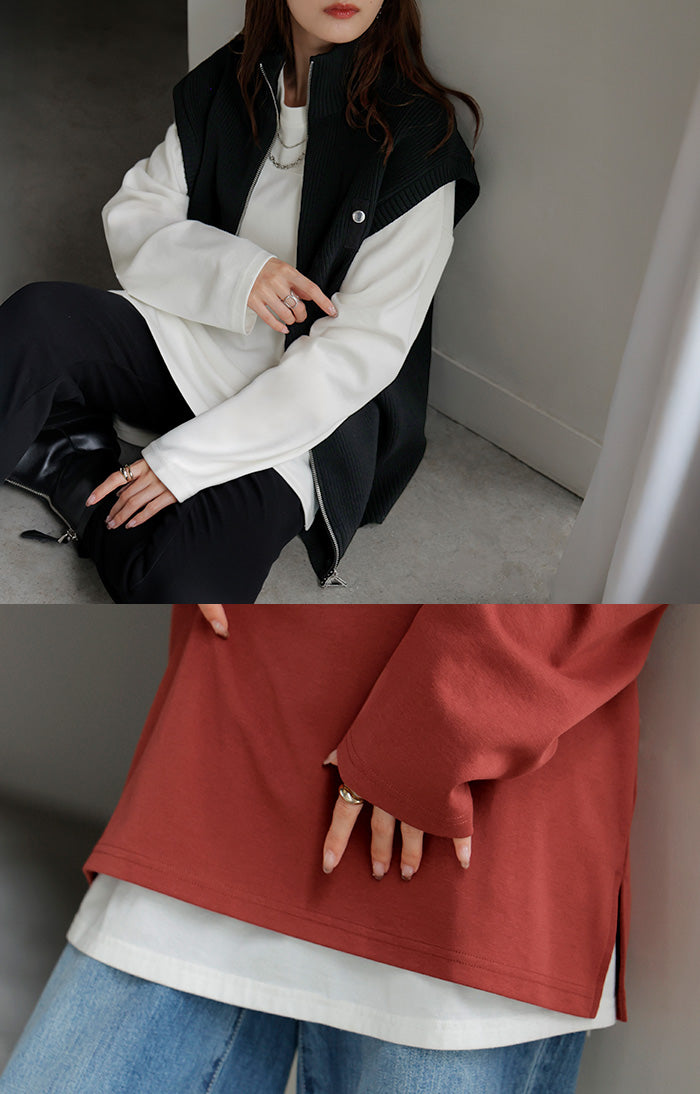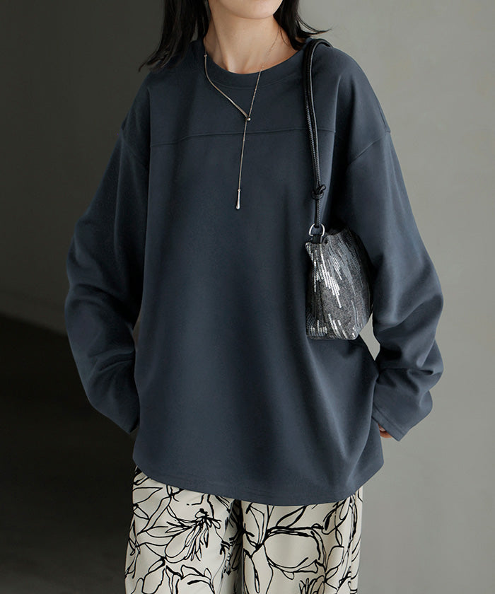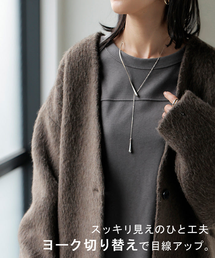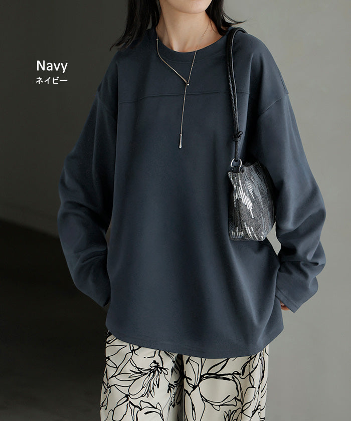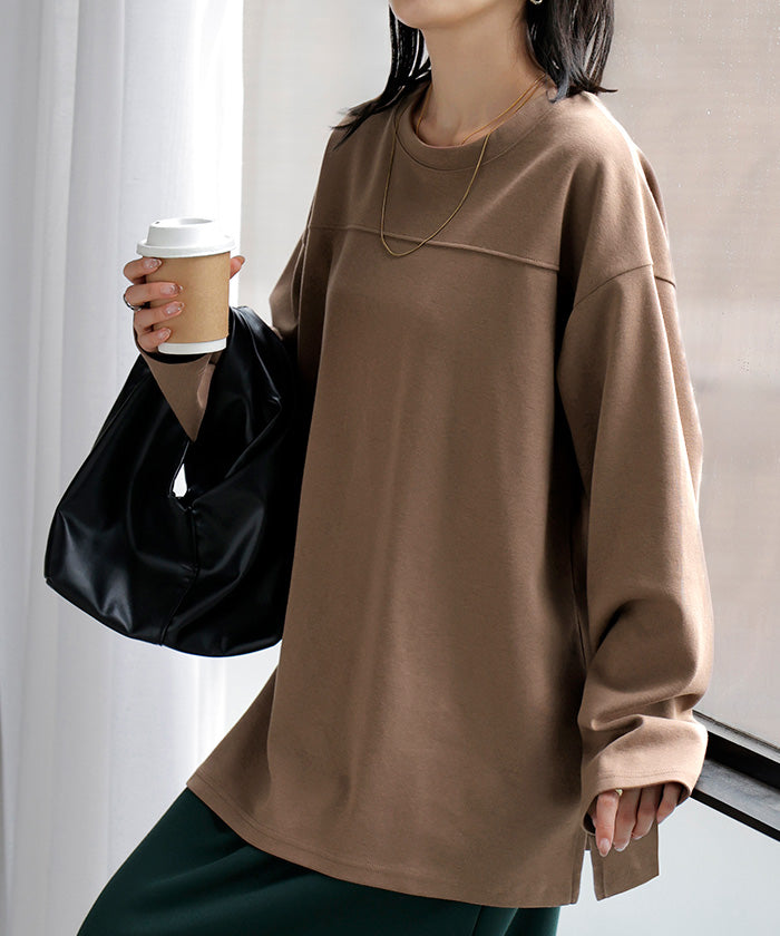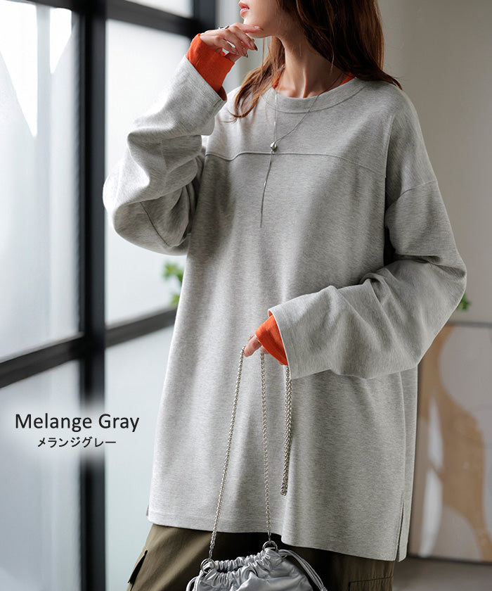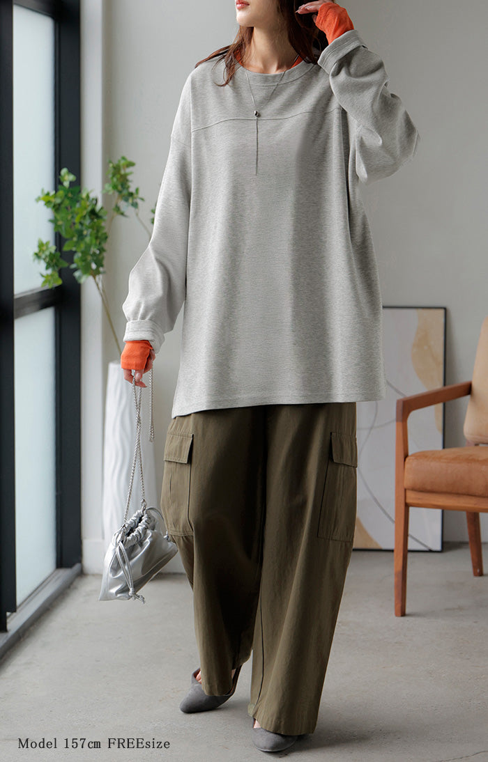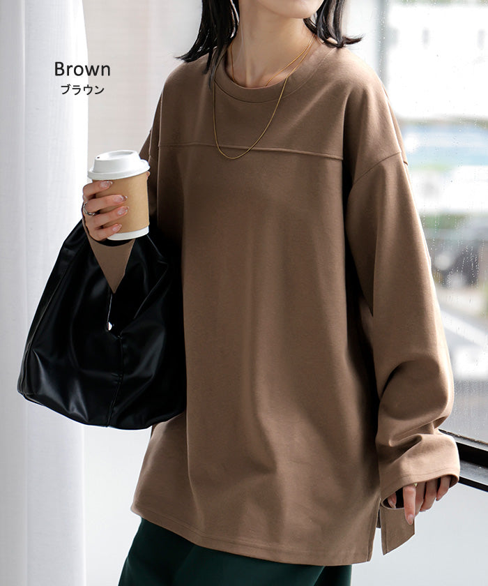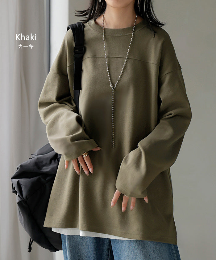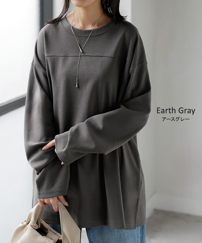 2025AW新作 ロンT ポンチ 防汚 レディース ■一部11月上旬入荷 トップス ロング 長袖 Tシャツ カットソー ティーシャツ フットボールT チュニック クルーネック コットンポンチ カラバリ ストレッチ 長い ゆったり 無地 体型カバー お尻が隠れる 大きいサイズ おしゃれ 白 黒 秋 冬 HUG.U