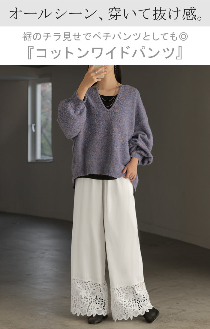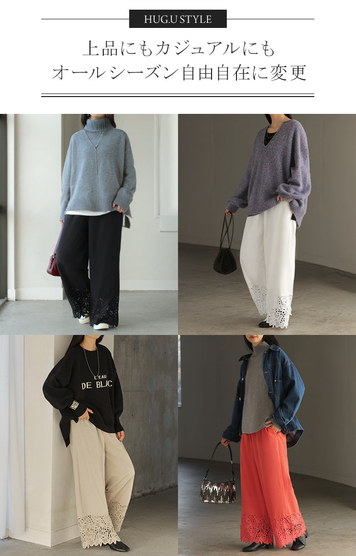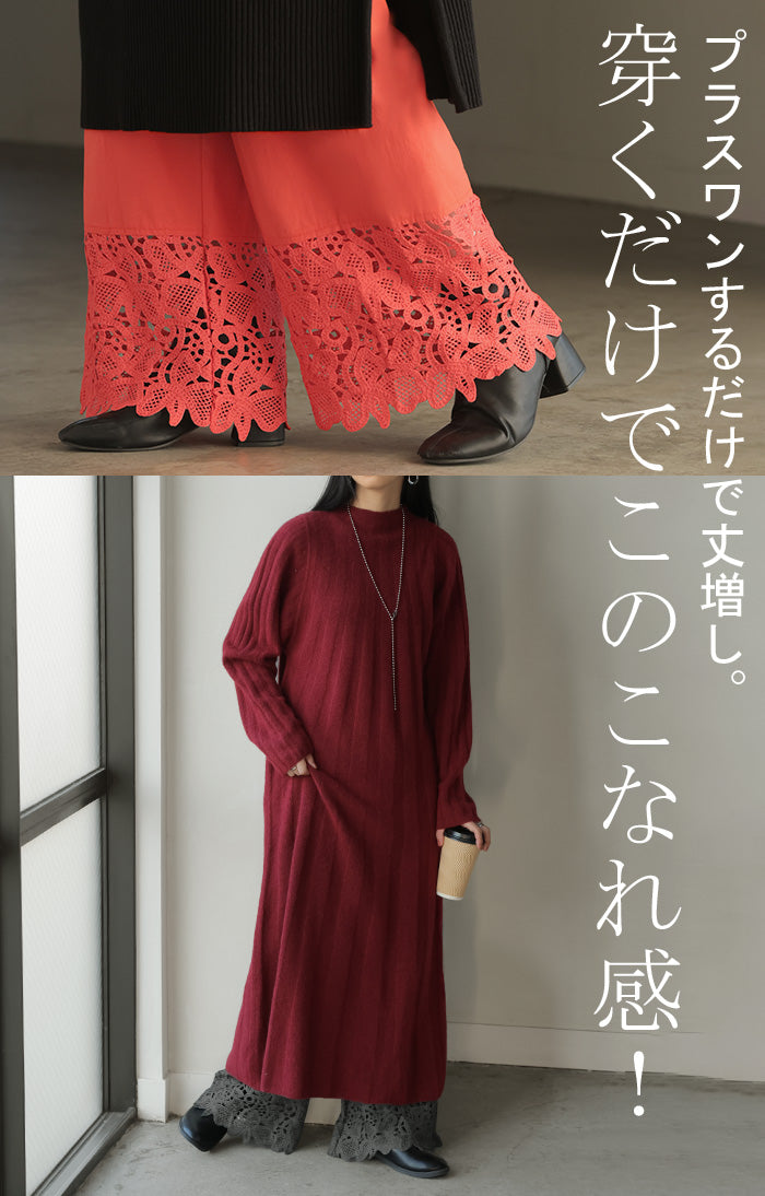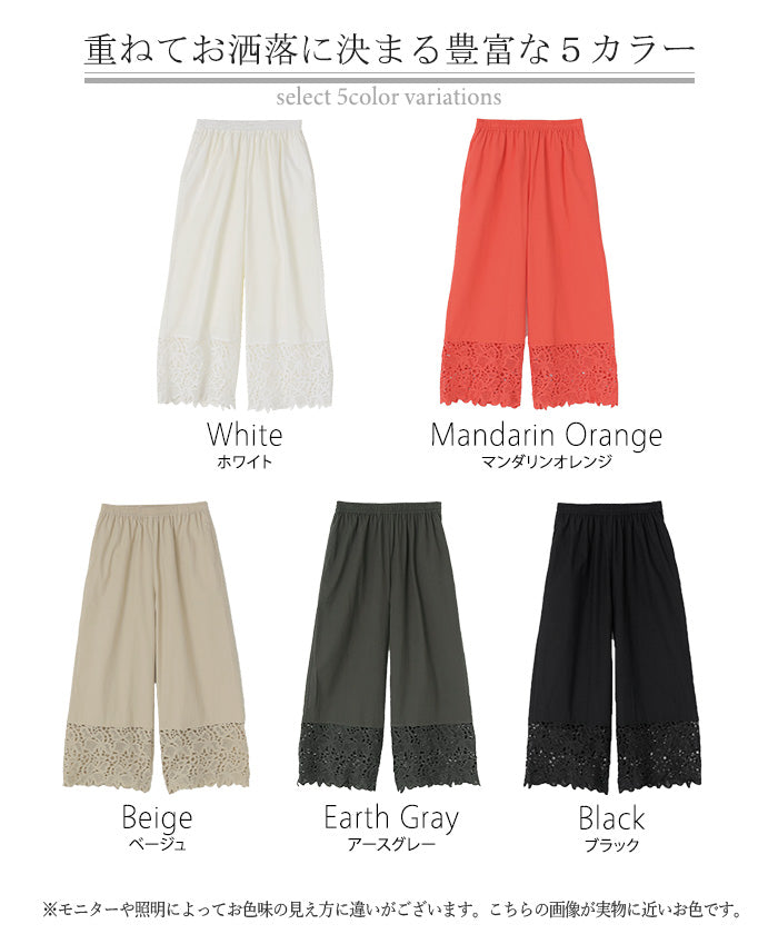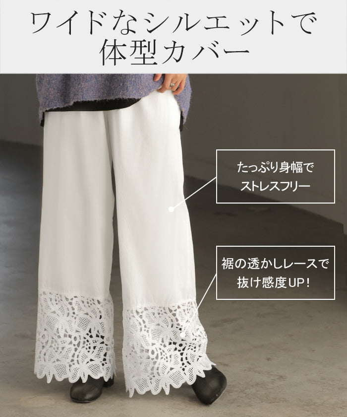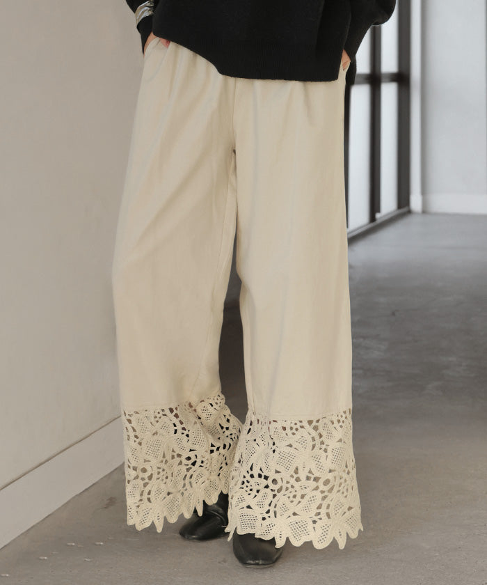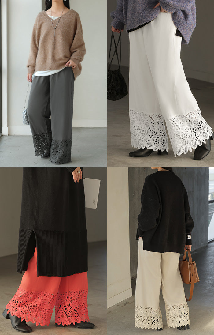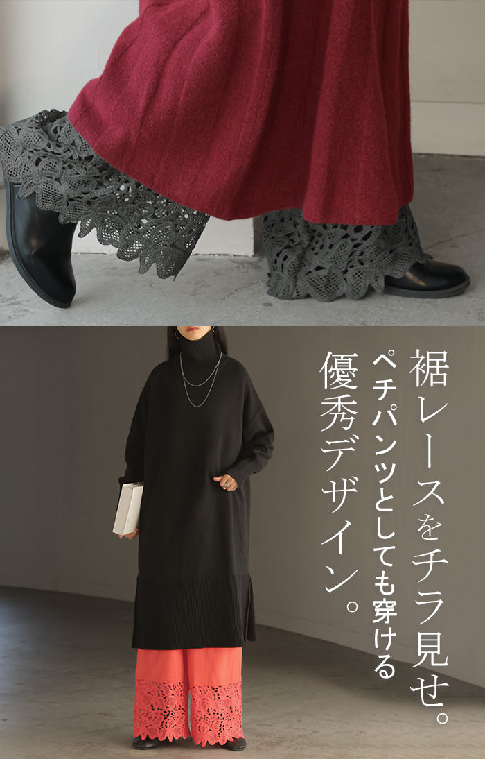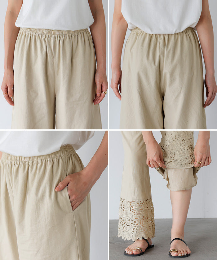 裾先のレース編みが可愛いです パンツ自体も履きやすく着回ししやすい商品だと感じました