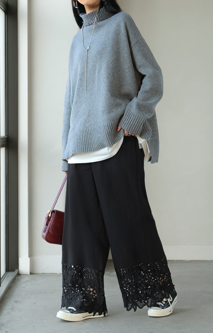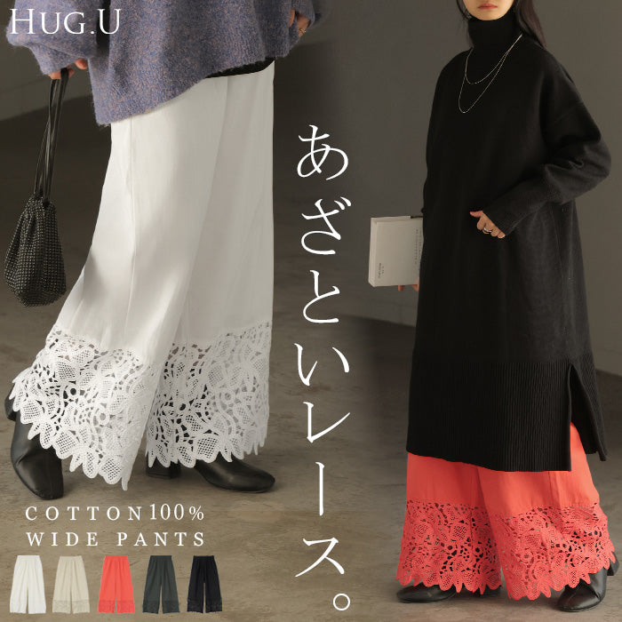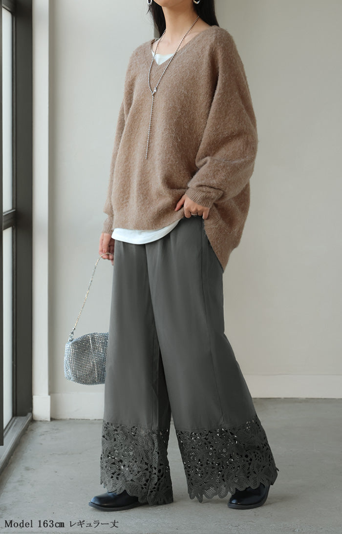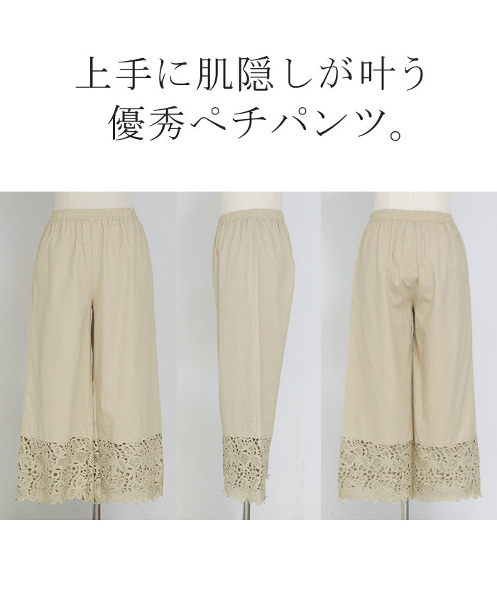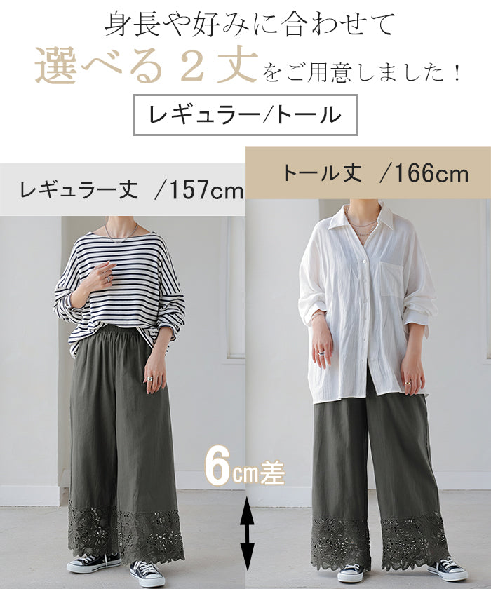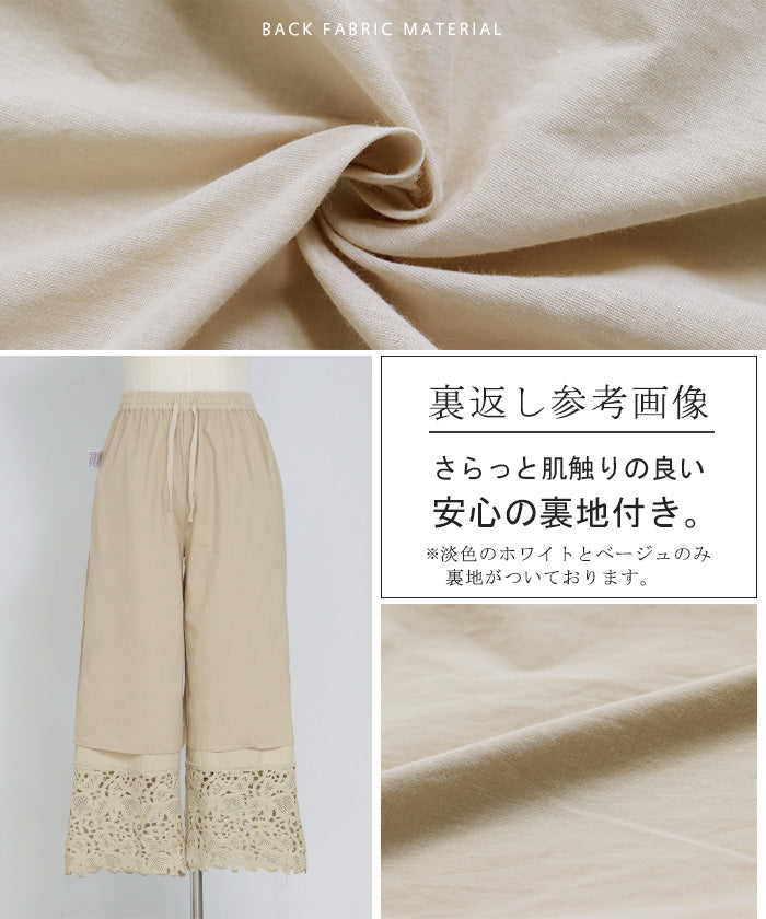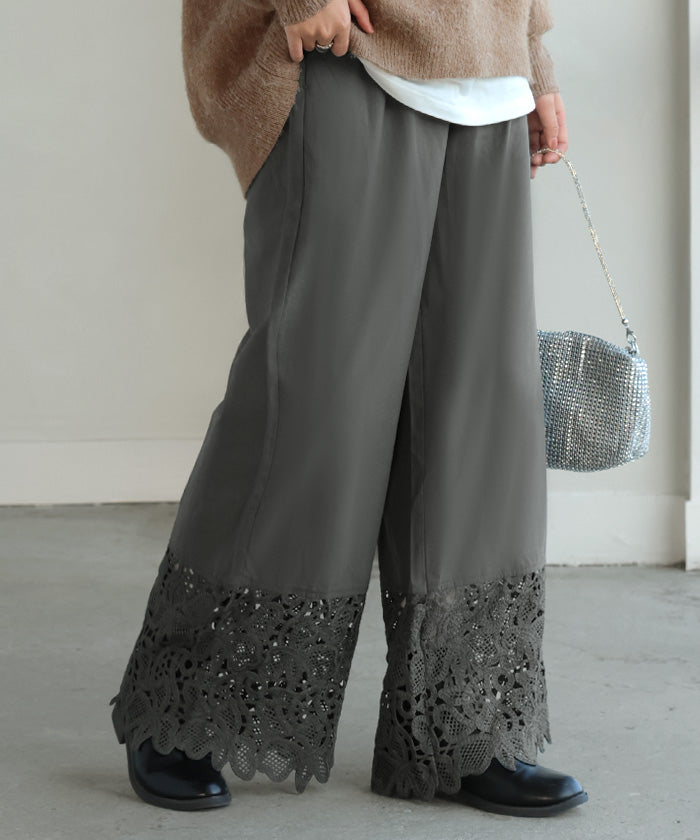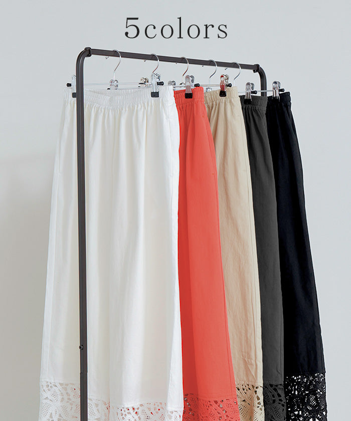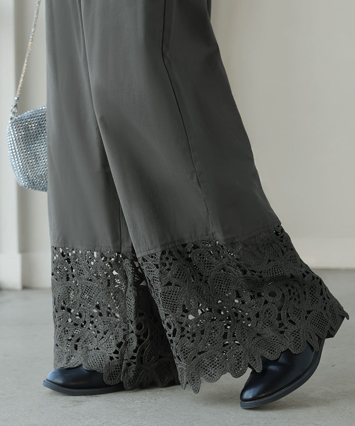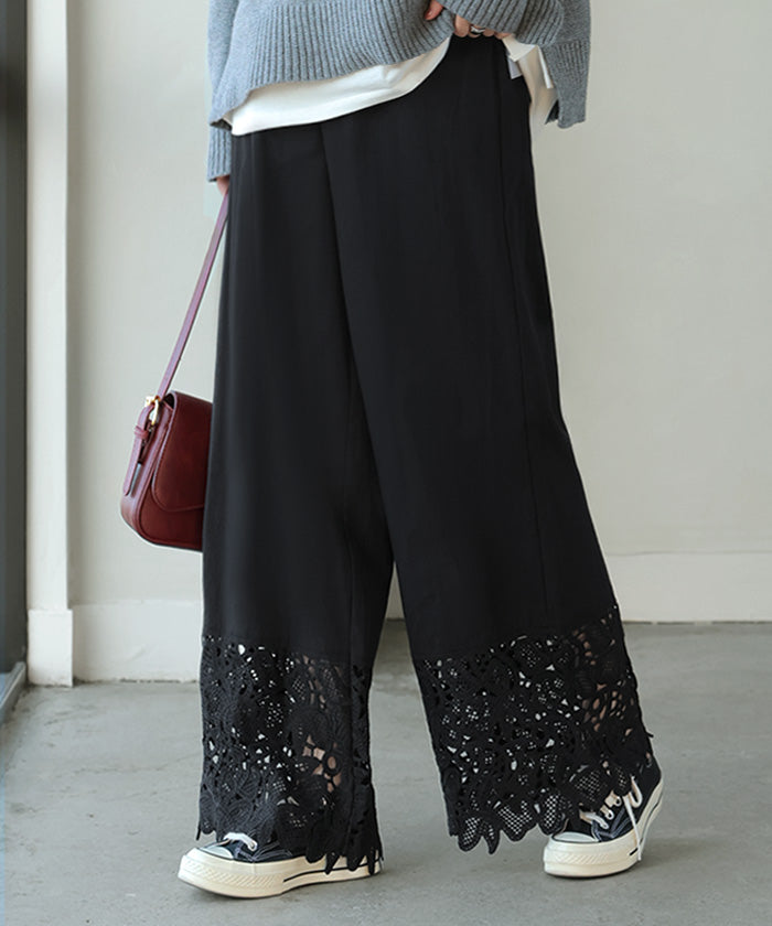 裾先のレース編みが可愛いです パンツ自体も履きやすく着回ししやすい商品だと感じました