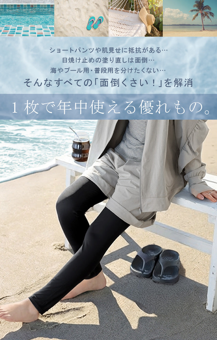 【早割10%OFF】2026SS新作 レギンス 水陸両用 「UVカット99.8%」 UVカット ラッシュガード スパッツ タイツ レディース ロング ラッシュガードパンツ レギンスパンツ 紫外線対策 耐塩素加工 接触冷感 吸水 速乾 長い 10分丈 ストレッチ プール 海 海水浴 スポーツ 黒 春 夏 HUG.U メール便