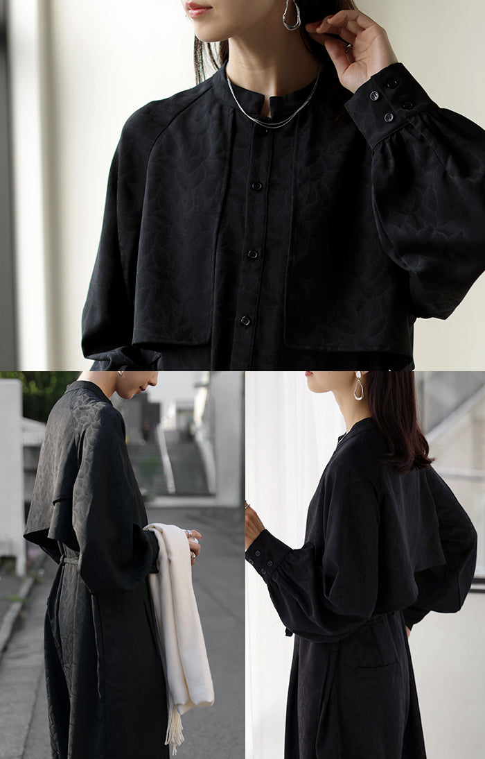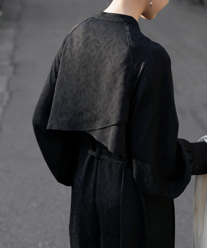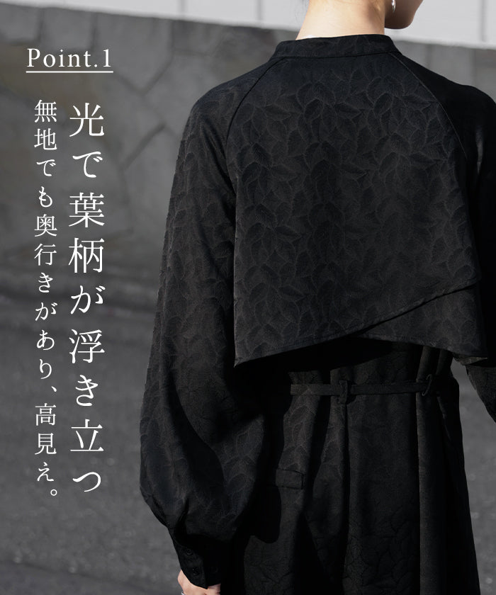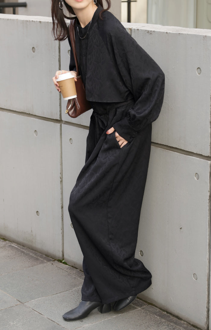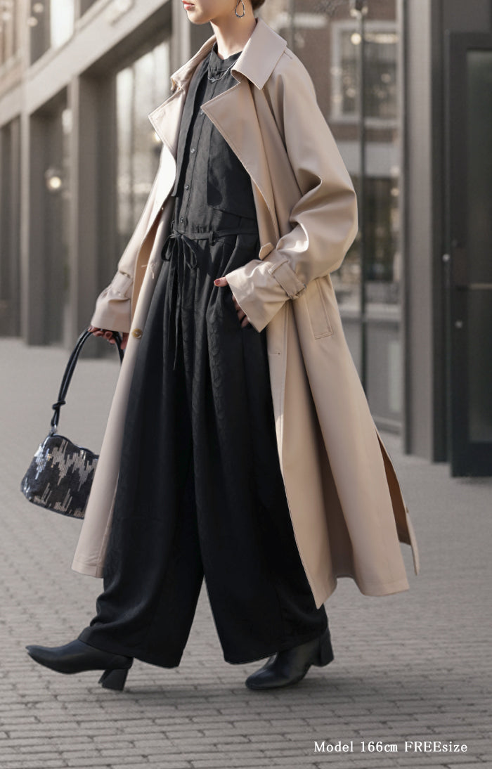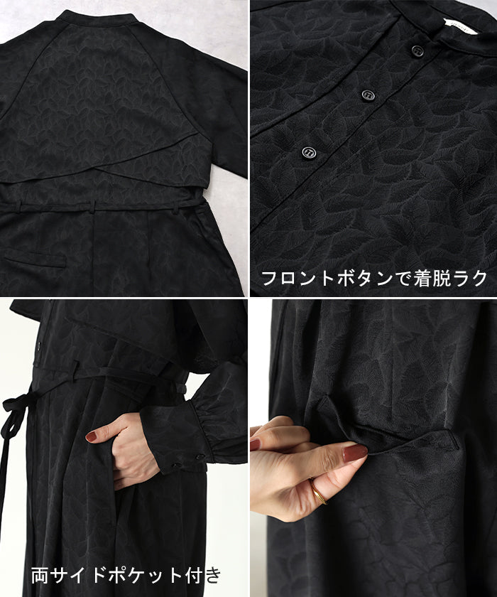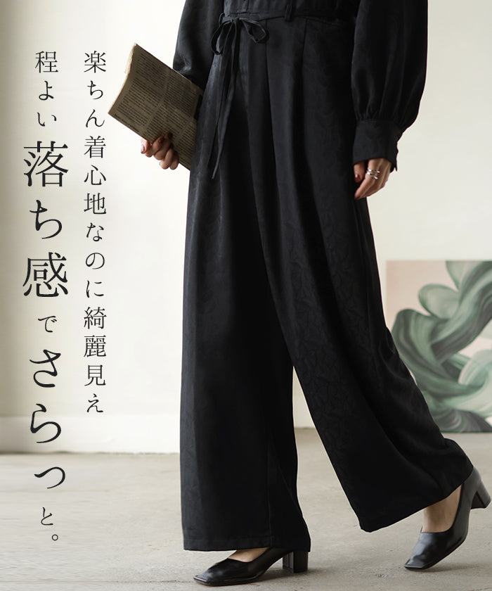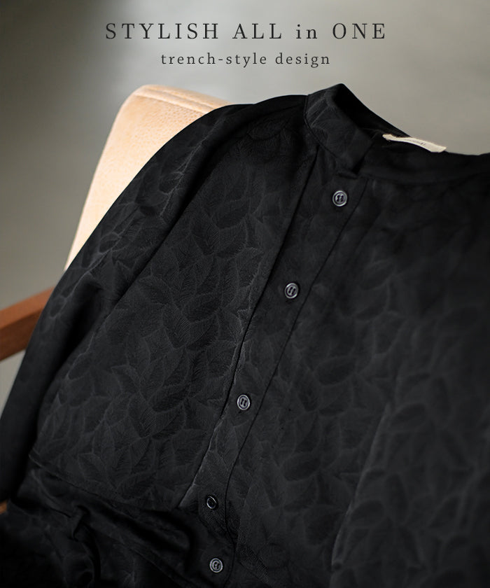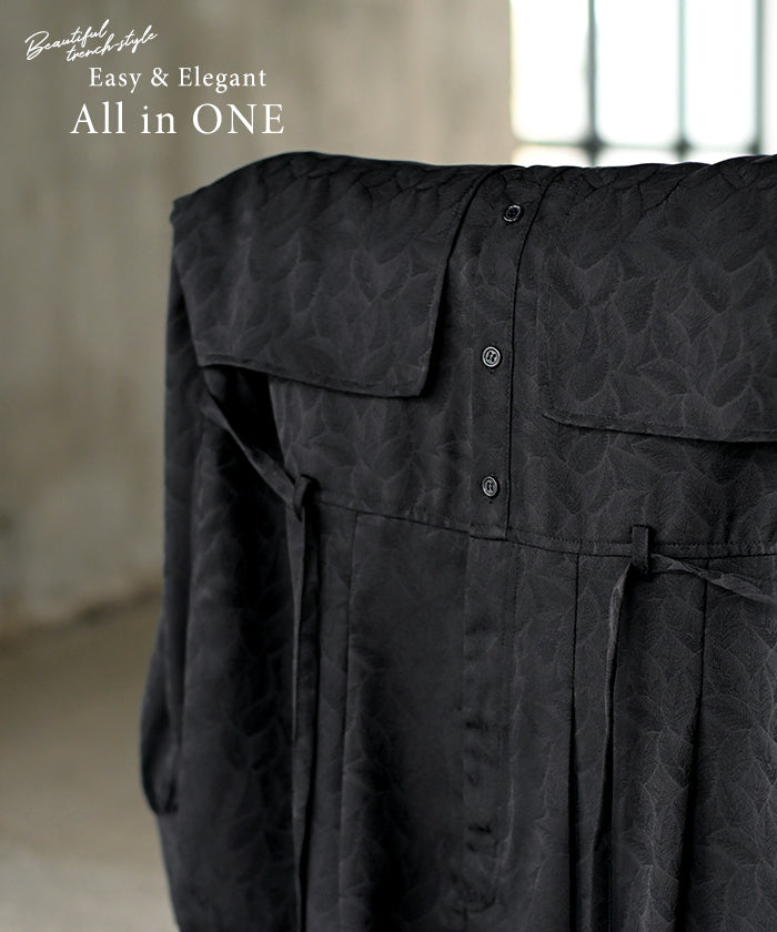 2025AW新作 オールインワン ■11月中旬入荷 ジャンプスーツ イージーケア レディース パンツ ロング ロングパンツ ジャガード シワになりにくい トレンチ クルーネック 総柄 ボタニカル柄 つなぎ ゆったり きれいめ 大きいサイズ 体型カバー オケージョン 黒 ブラック 秋 冬 HUG.U