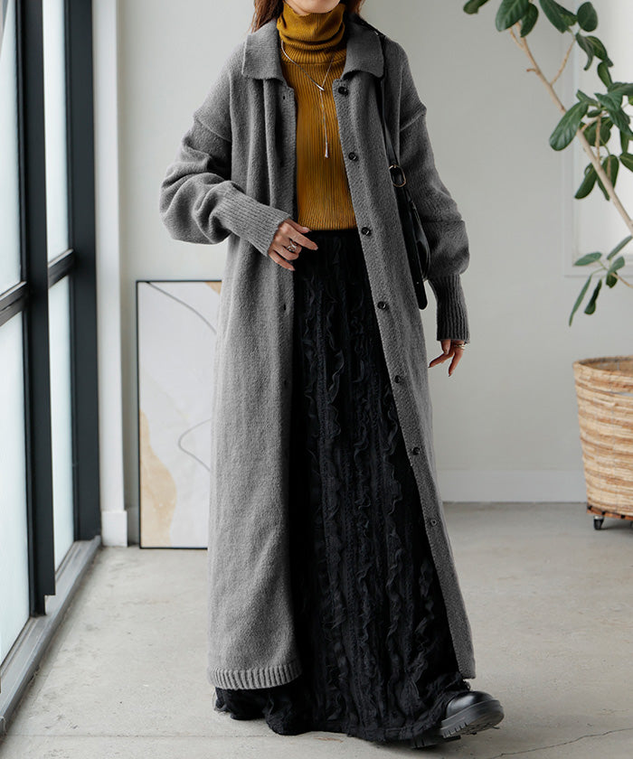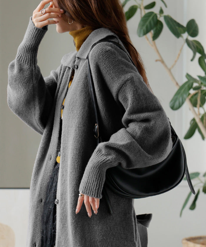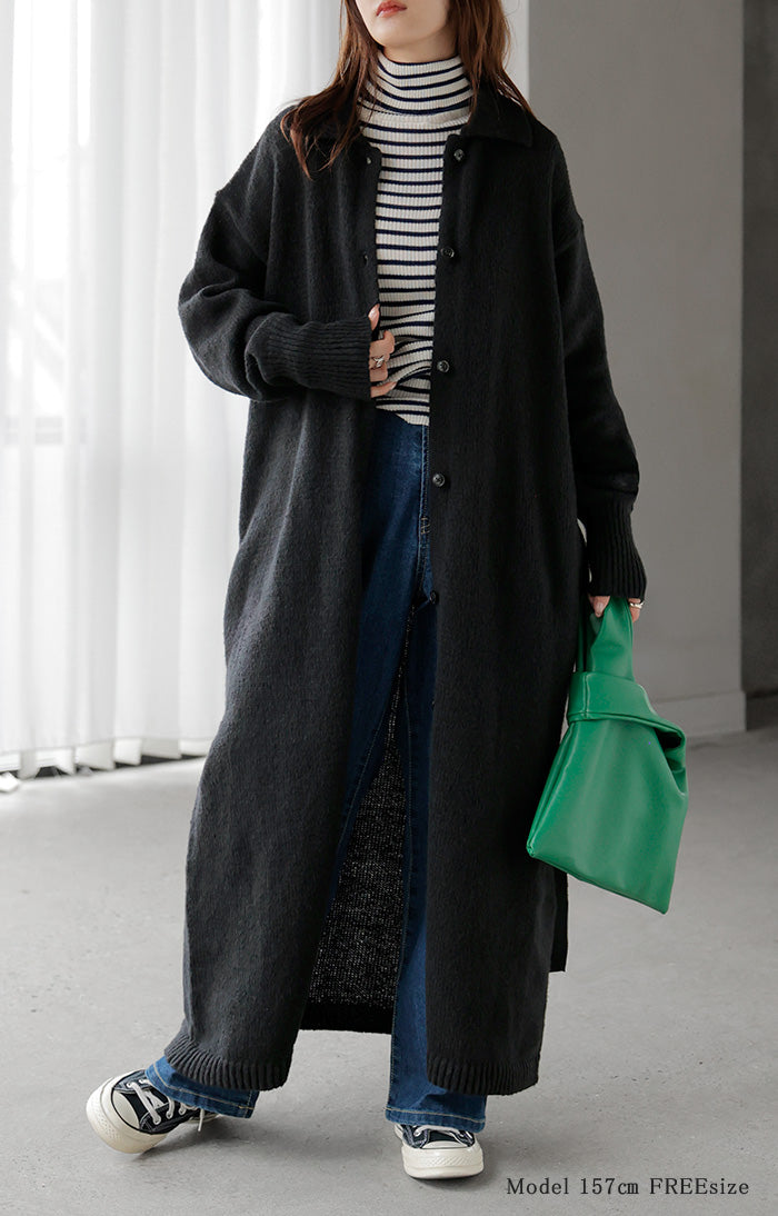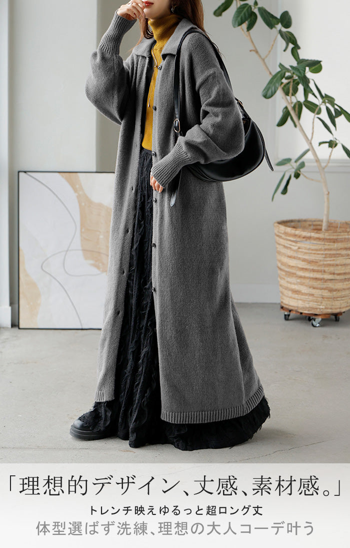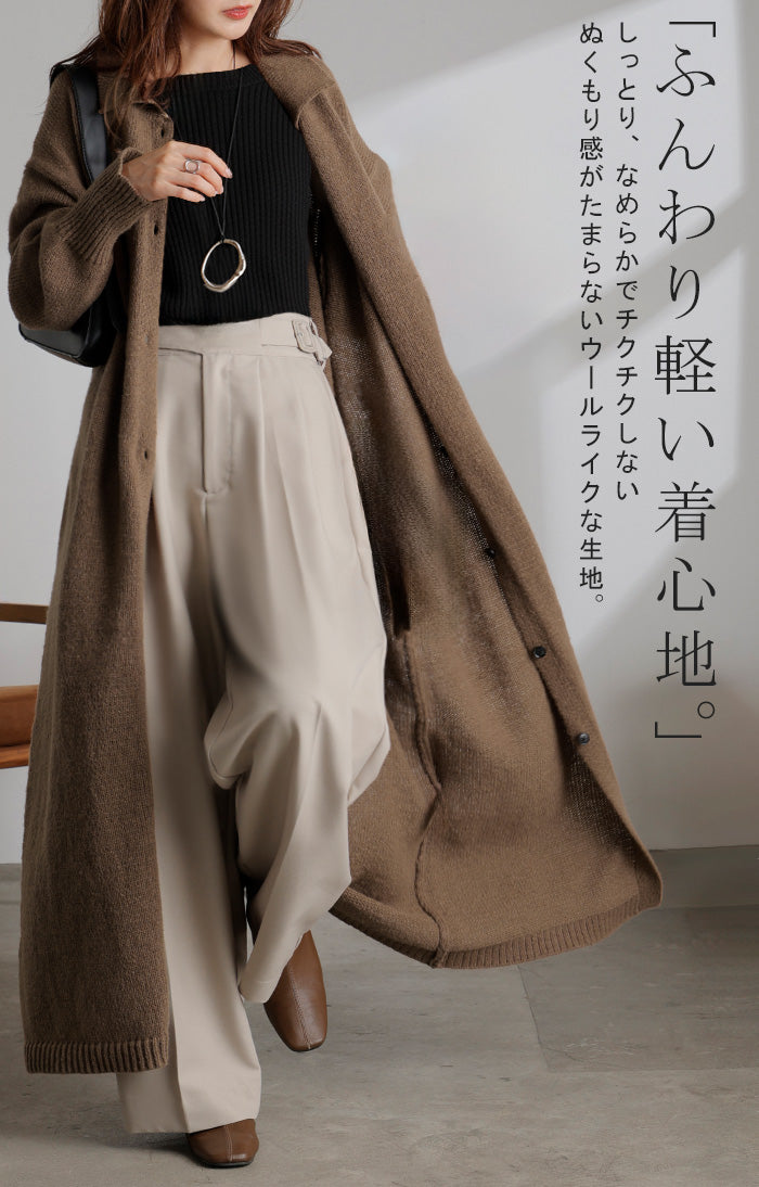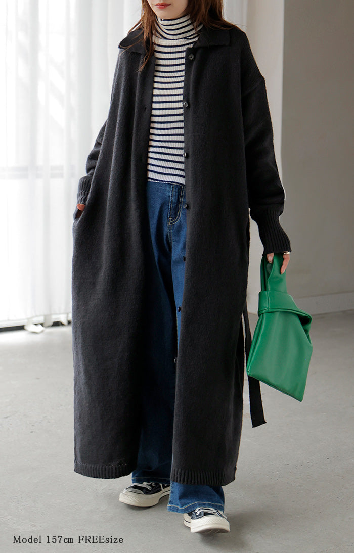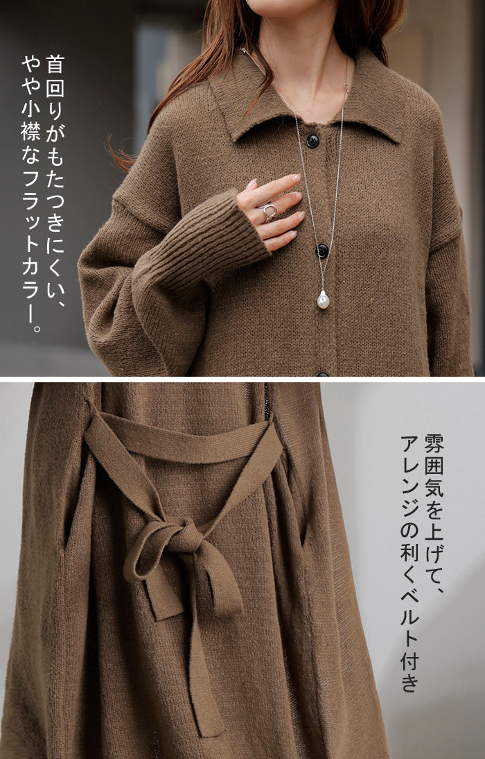 2025AW新作 カーディガン コート ■11月上旬入荷 カシミヤタッチ コーディガン レディース カーデ トップス ロングカーディガン レイヤード 羽織 コート 長袖 長い 襟 リブ チュニック 軽い ベルト ゆったり 体型カバー 大きいサイズ お尻が隠れる カジュアル 黒 グレー 秋 冬 HUG.U