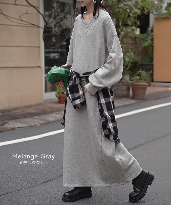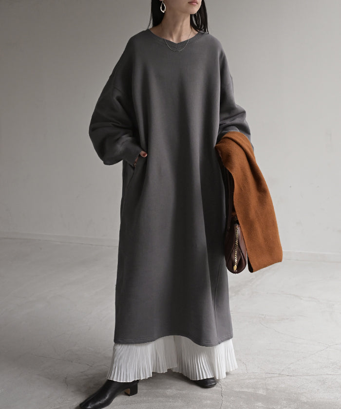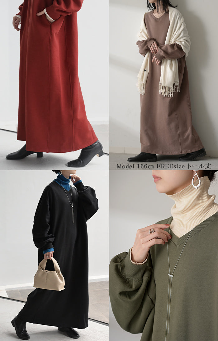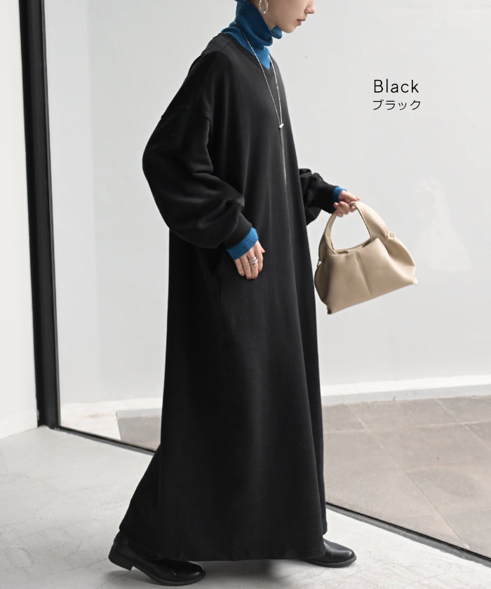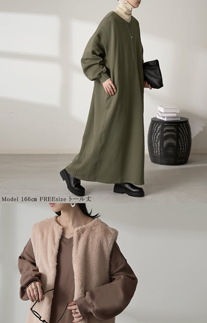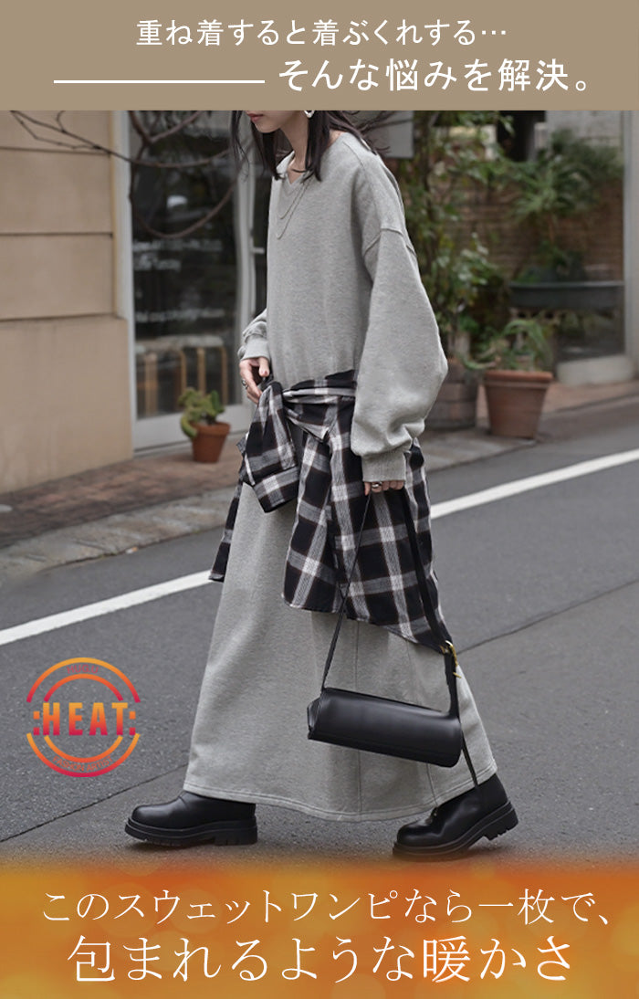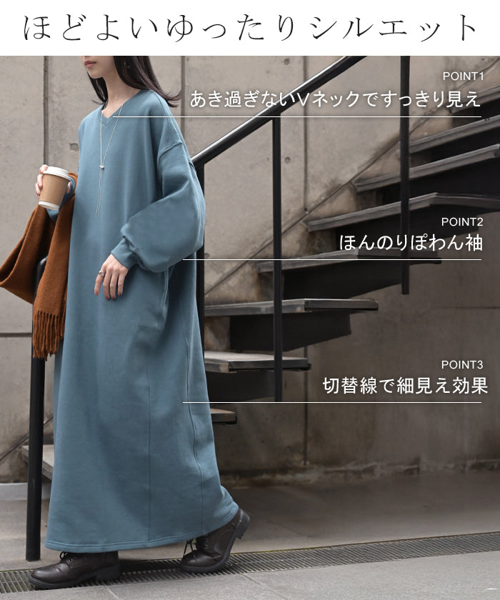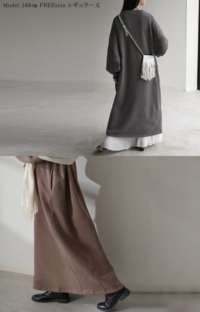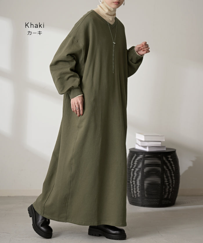 2025AW新作 ワンピース 綿100% 裏起毛 " 選べる 2丈 " スウェット 抗菌 防臭 ロング ワンピ レディース ロングワンピース スエット トレーナー Aライン マキシ マキシワンピース ロングワンピ 長袖 チクチクしない 体型カバー 大きいサイズ 無地 黒 グレー 秋 冬 HUG.U