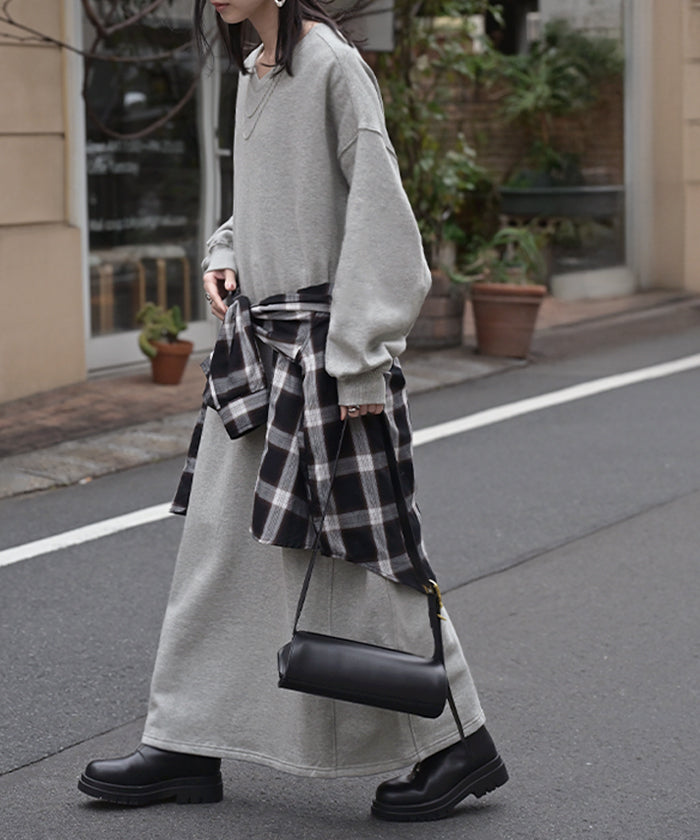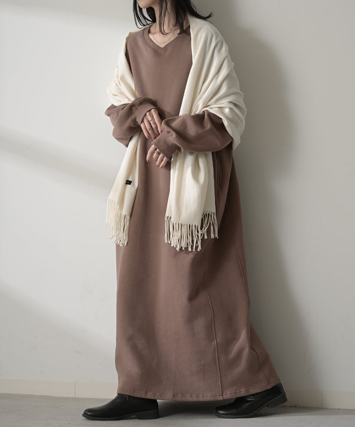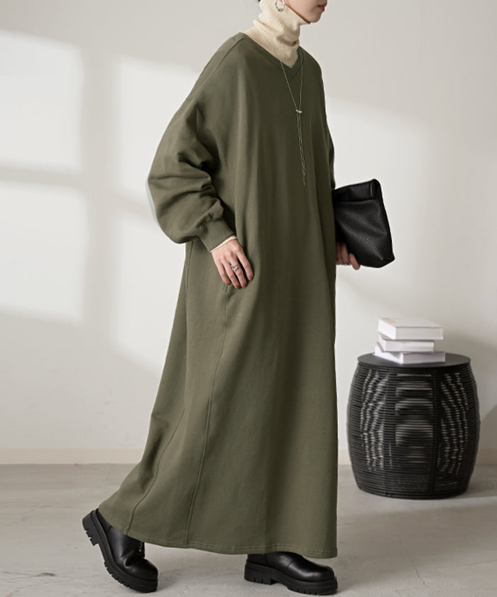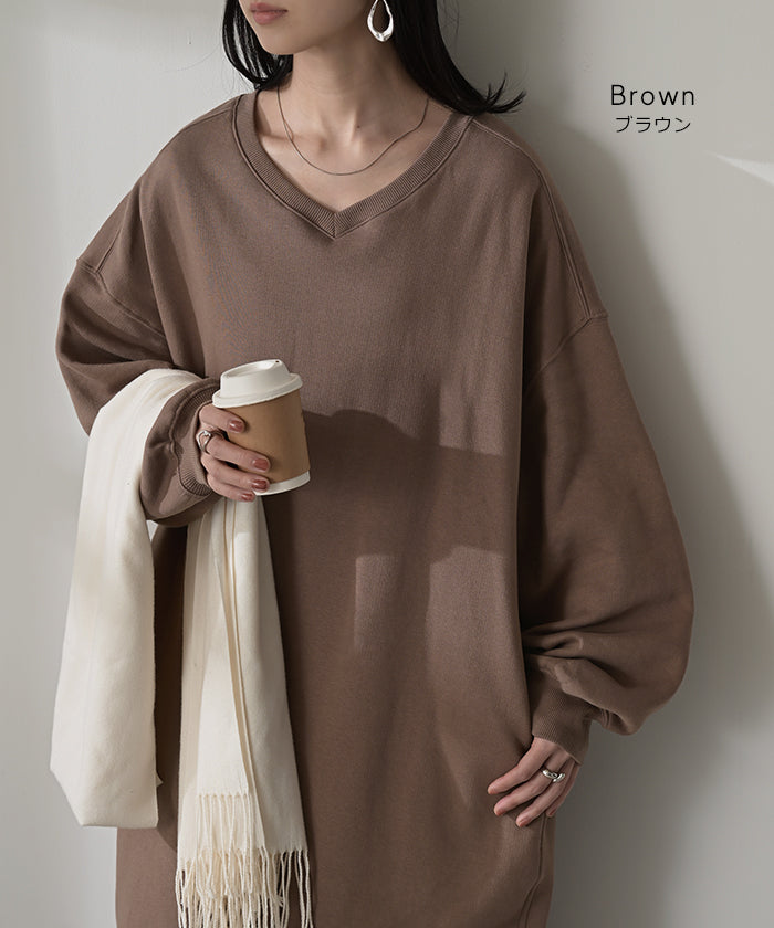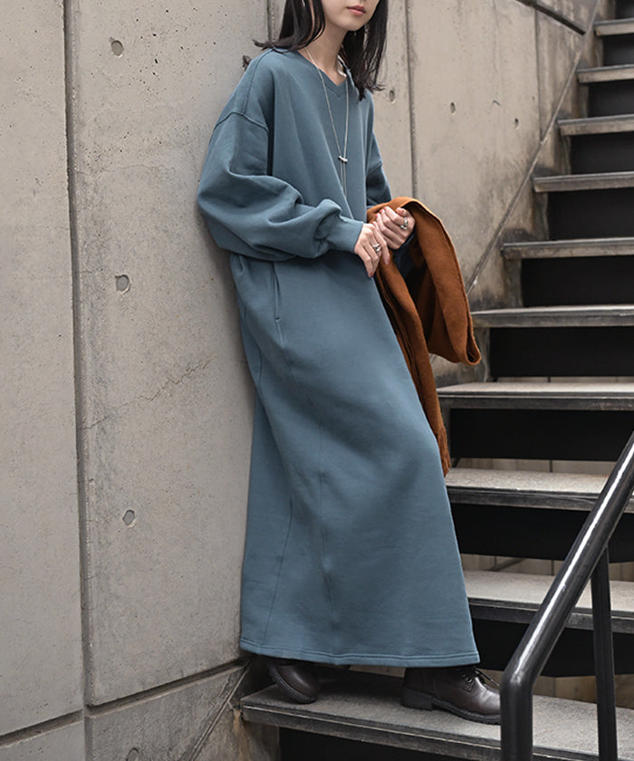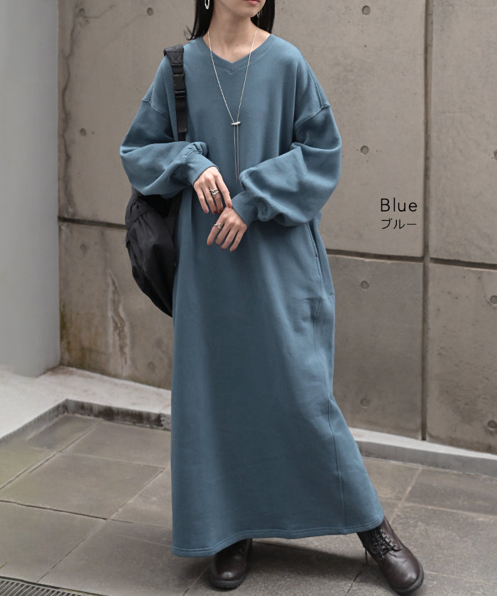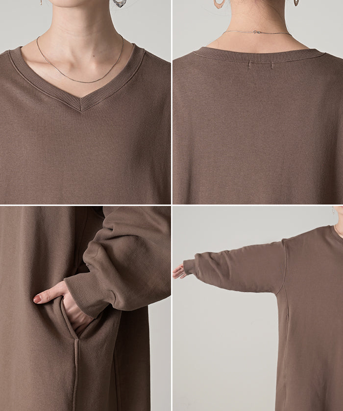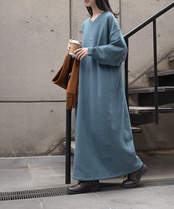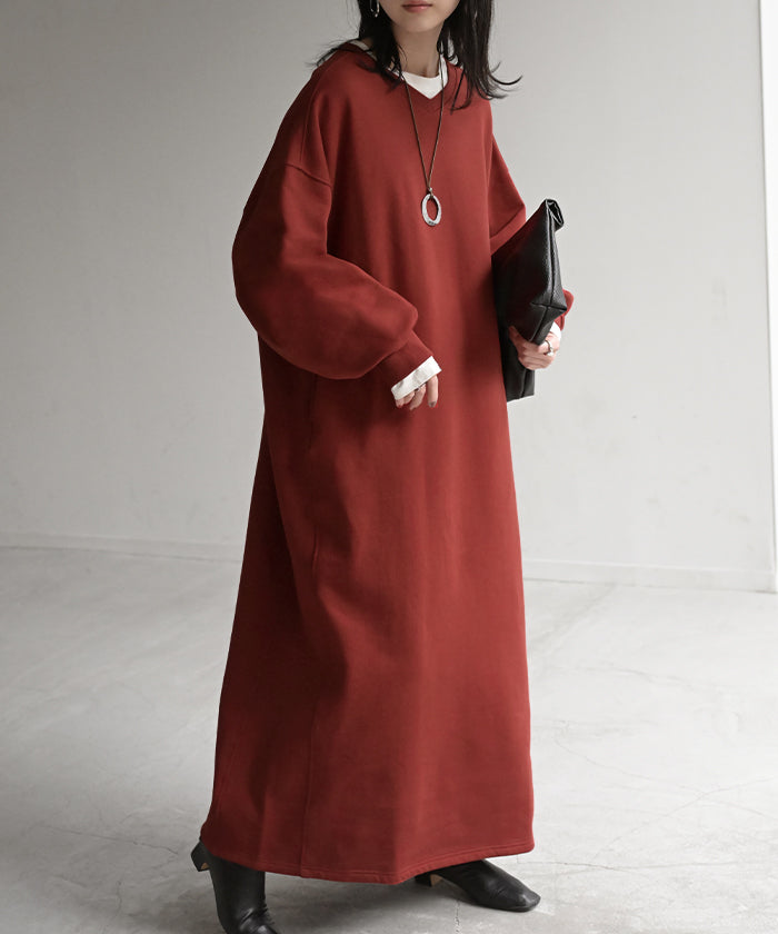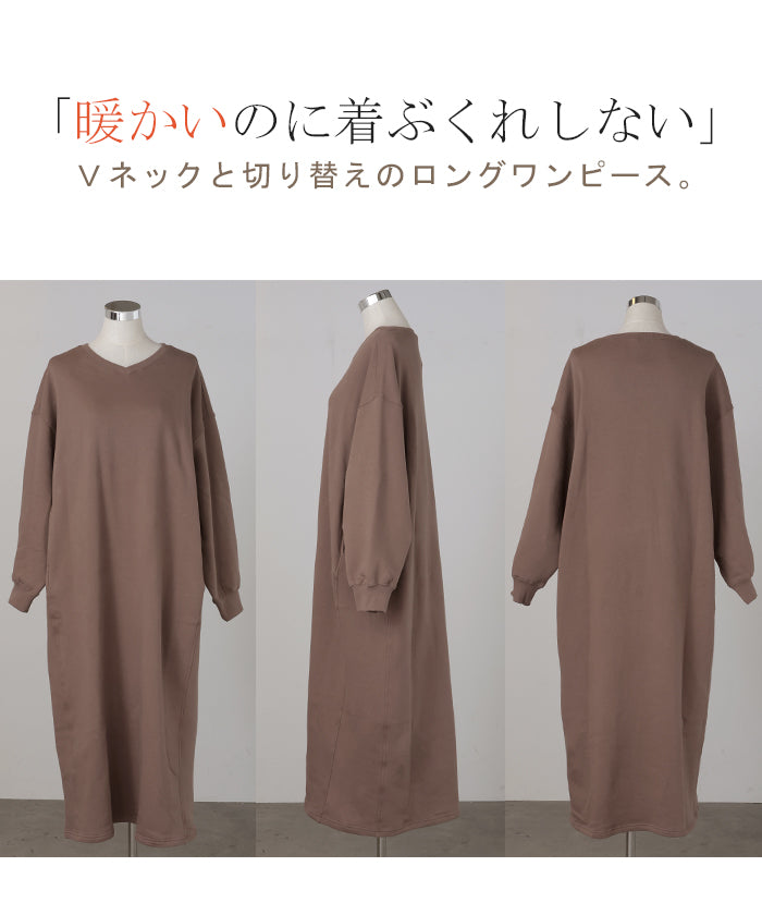2025AW新作 ワンピース 綿100% 裏起毛 " 選べる 2丈 " スウェット 抗菌 防臭 ロング ワンピ レディース ロングワンピース スエット トレーナー Aライン マキシ マキシワンピース ロングワンピ 長袖 チクチクしない 体型カバー 大きいサイズ 無地 黒 グレー 秋 冬 HUG.U
