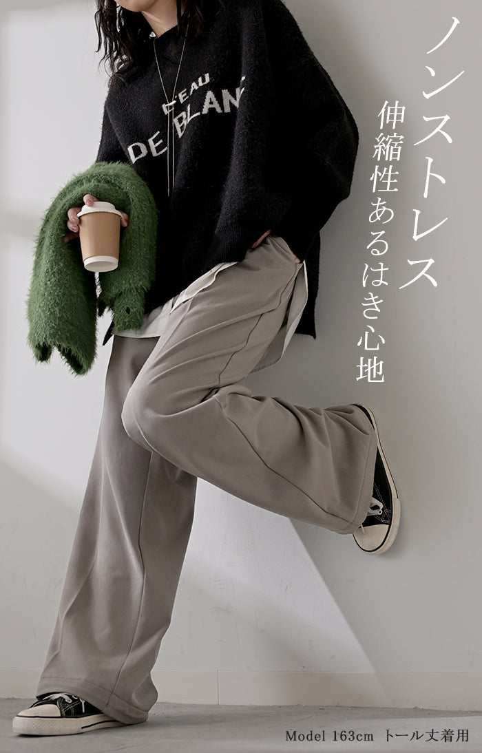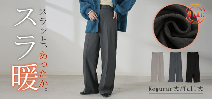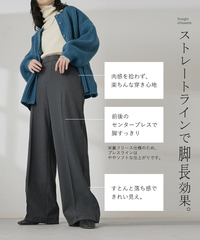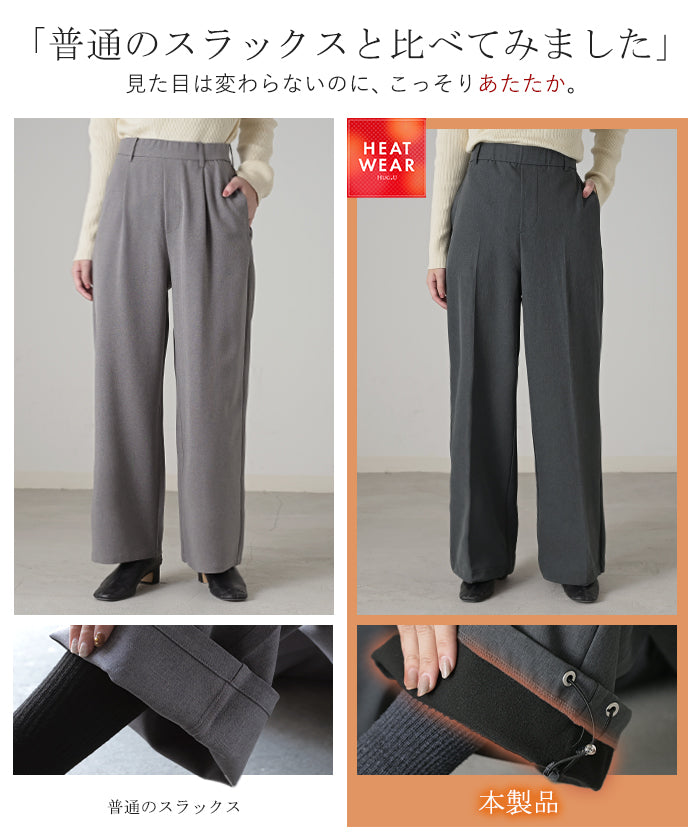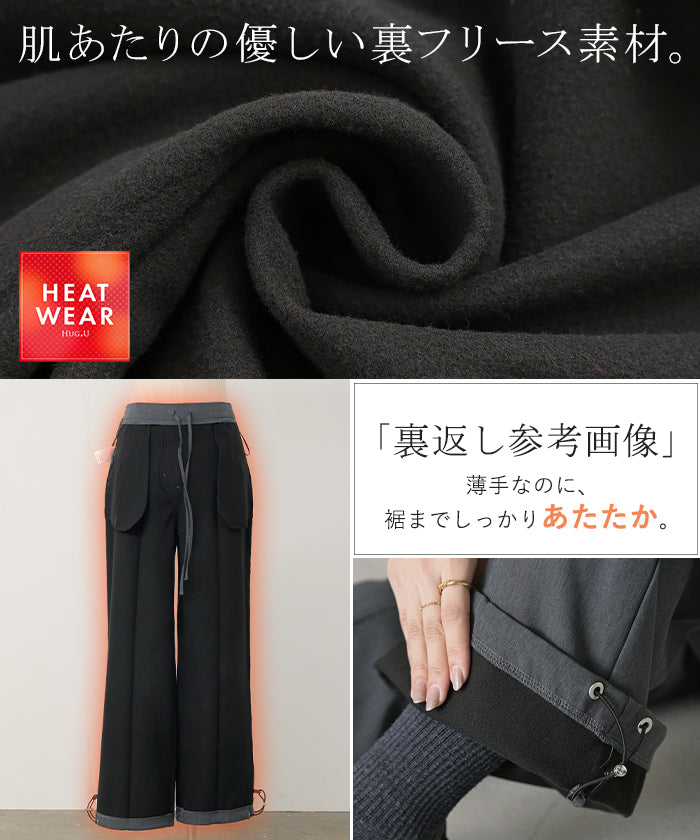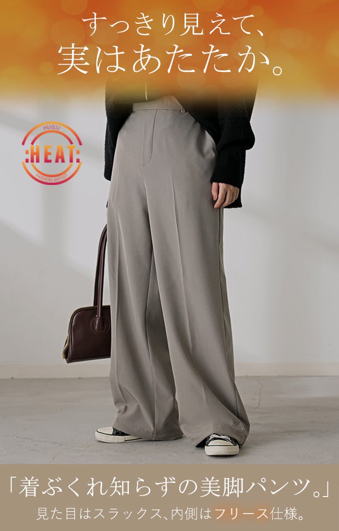 2025AW新作 パンツ 裏起毛 ストレッチ " 選べる 2丈 " ワイド レディース フリース スラックス あったか ワイドパンツ ロング 体型カバー ボトムス ボトム ストレート ズボン ゆったり ハイウエスト 美脚 大きいサイズ きれいめ カジュアル 黒 グレー 秋 冬 HUG.U