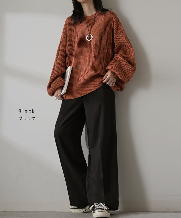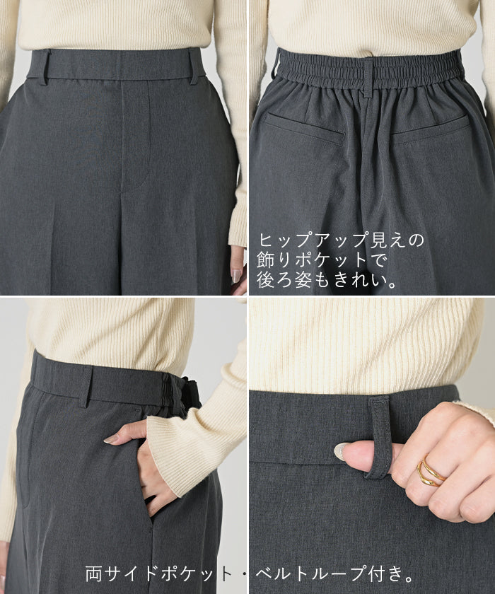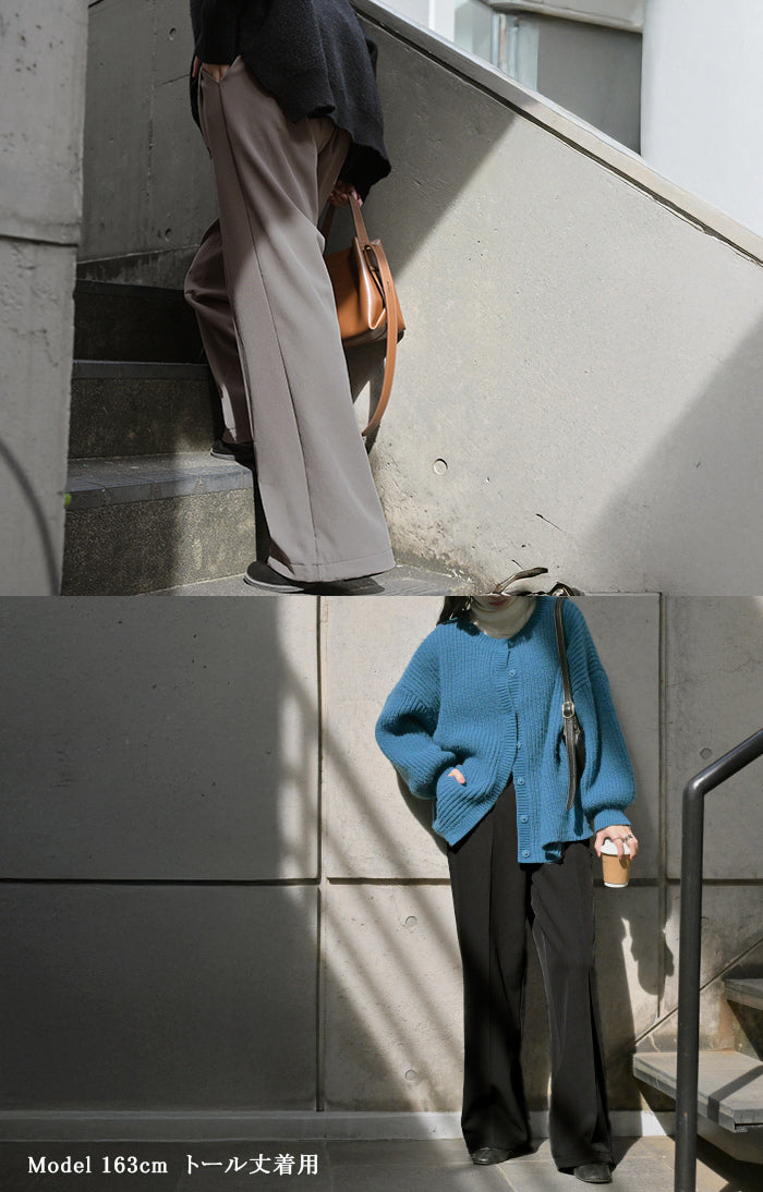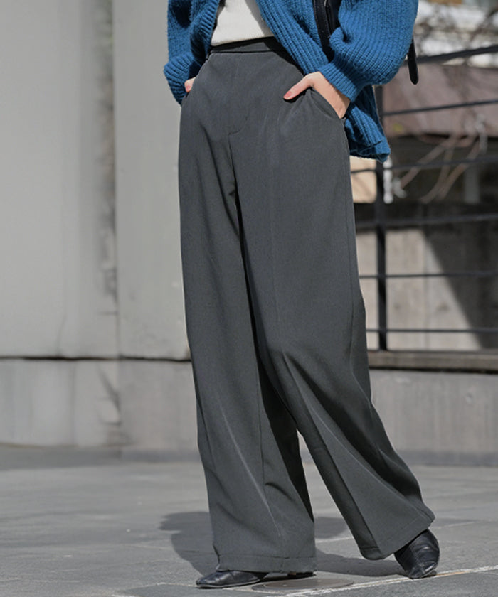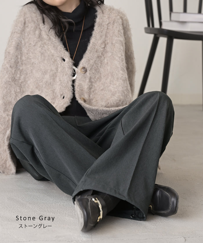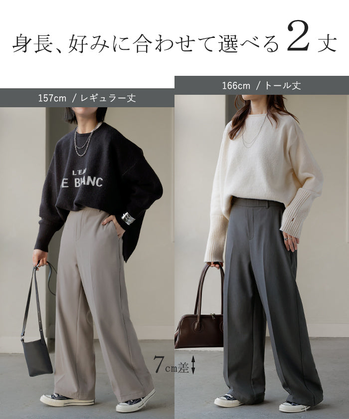 2025AW新作 パンツ 裏起毛 ストレッチ " 選べる 2丈 " ワイド レディース フリース スラックス あったか ワイドパンツ ロング 体型カバー ボトムス ボトム ストレート ズボン ゆったり ハイウエスト 美脚 大きいサイズ きれいめ カジュアル 黒 グレー 秋 冬 HUG.U
