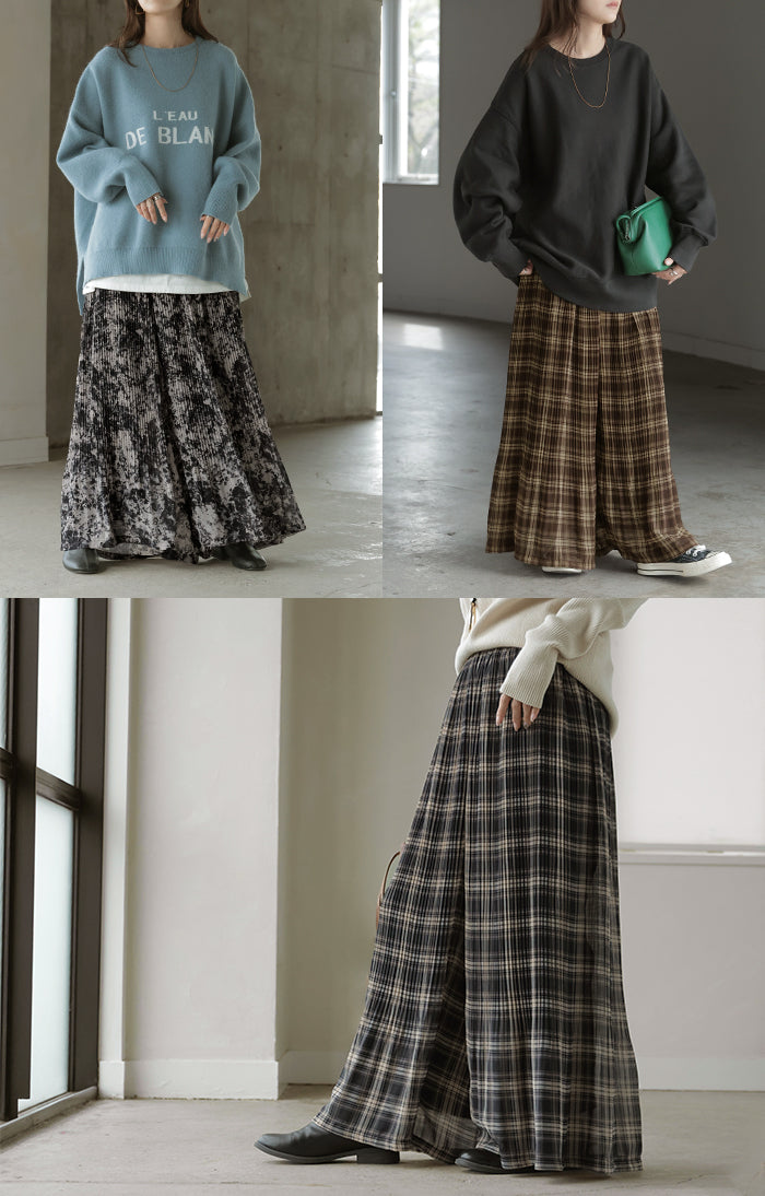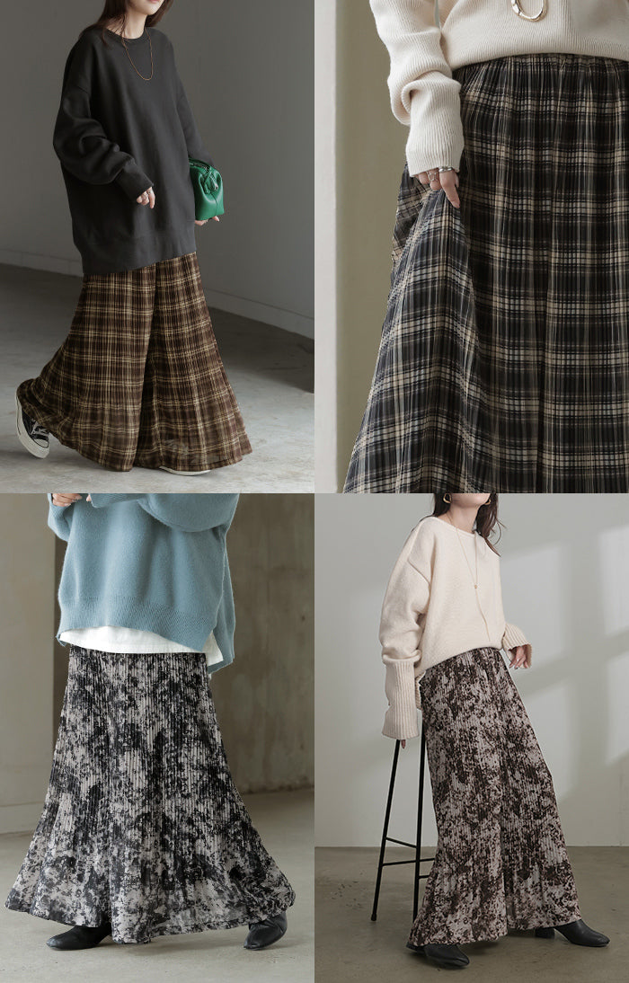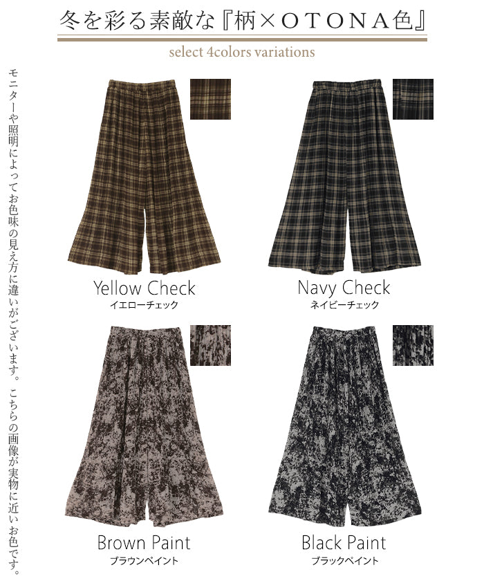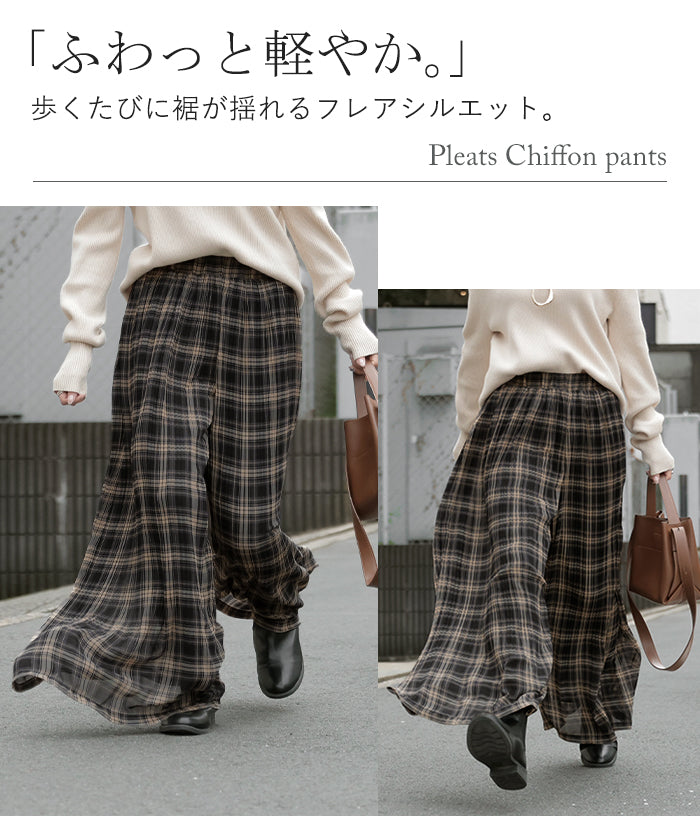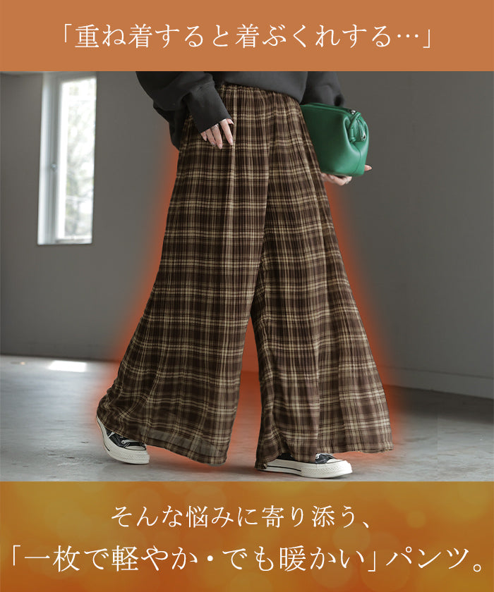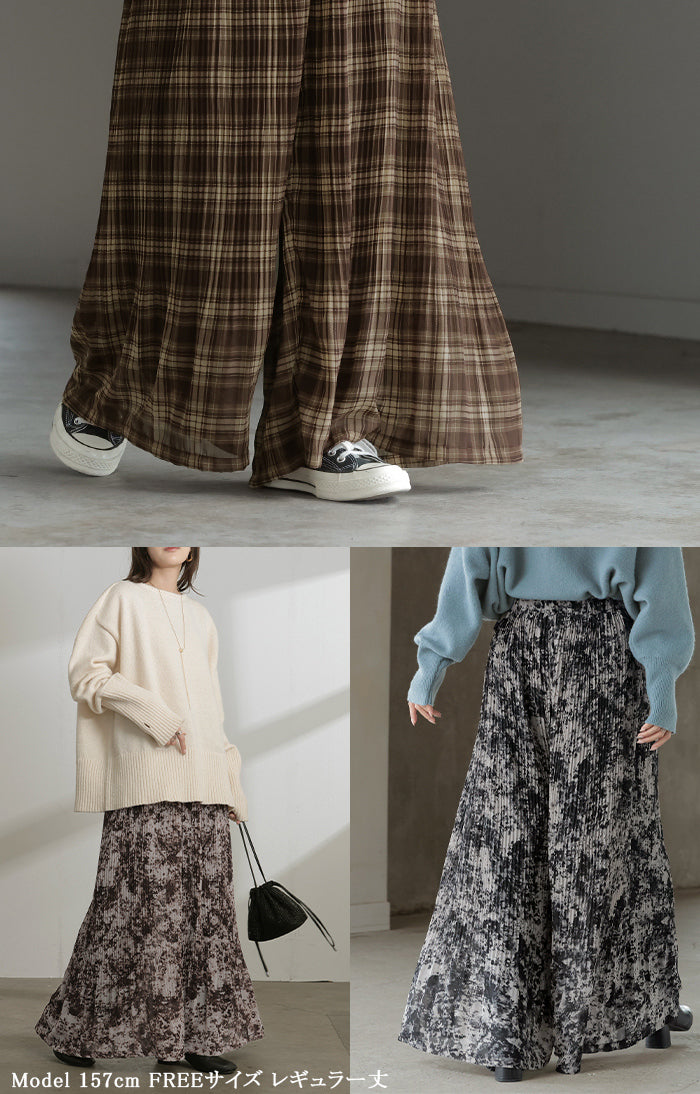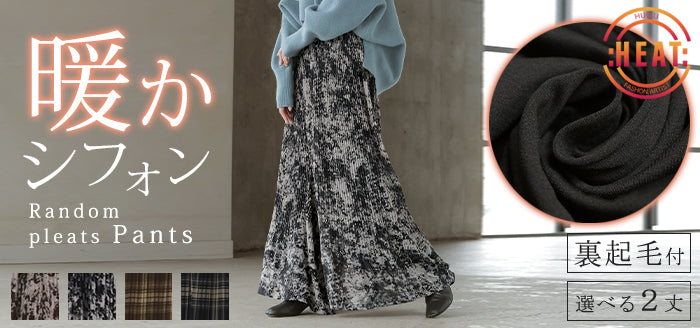 2025AW新作 パンツ 裏起毛 ■12月上旬入荷 秘密の暖か フレアパンツ シフォン プリーツ ワイド レディース ワイドパンツ ロング ロングパンツ 柄 シワになりにくい 体型カバー ボトムス ボトム ストレート ズボン ゆったり ハイウエスト ストレッチ 美脚 大きいサイズ 黒 ネイビー 秋 冬 HUG.U