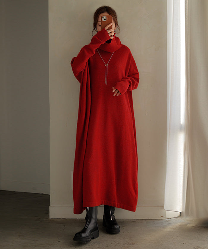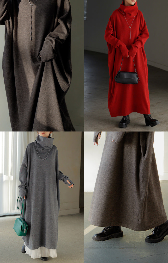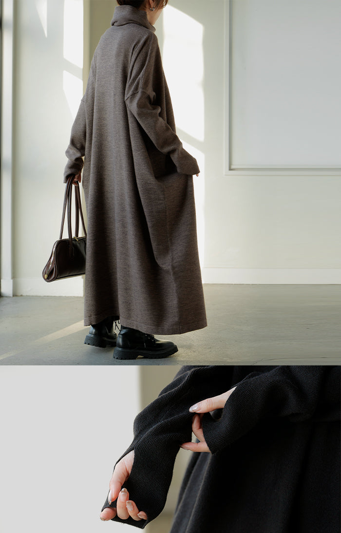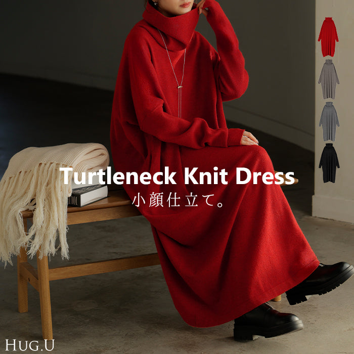 2025AW新作 ワンピース ニット タートルネック ロング ワンピ セーター レディース 指穴 ニットワンピース ニットワンピ ロングワンピース 長袖 マキシ シンプル タイト Aライン 無地 大きいサイズ 体型カバー きれいめ 上品 カジュアル きれいめ 黒 グレー 秋 冬 HUG.U