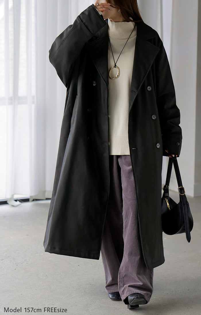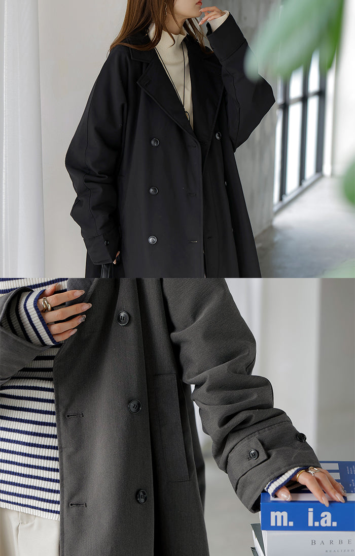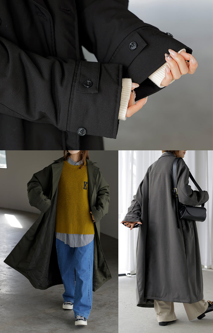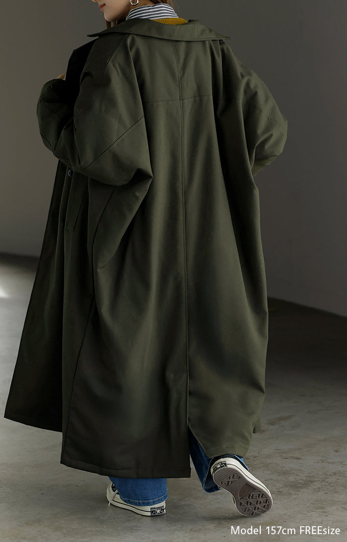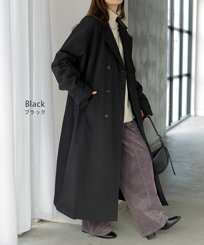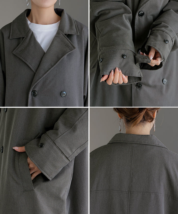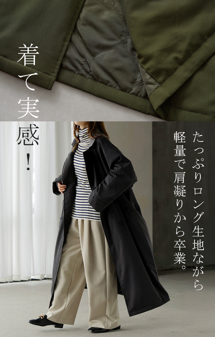 2025AW新作 アウター トレンチコート ■12月下旬入荷 中綿 レディース コート ロング ロングコート トレンチ ジャケット オーバー ドルマン 羽織 オーバーサイズ 裏地 付き あったか 高身長 きれいめ 大きいサイズ 体型カバー お尻が隠れる 黒 グレー 秋 冬 HUG.U