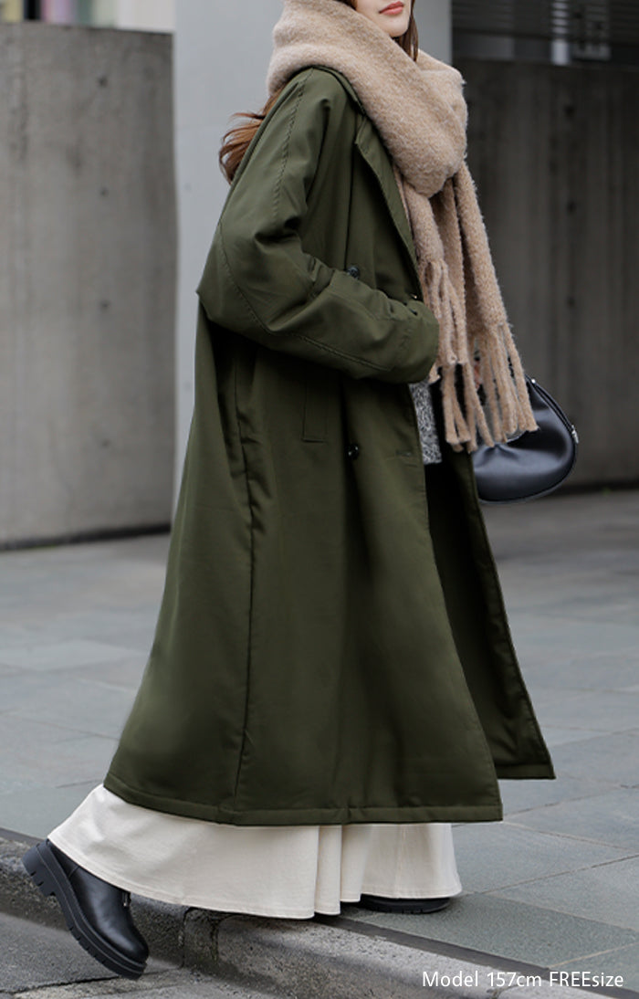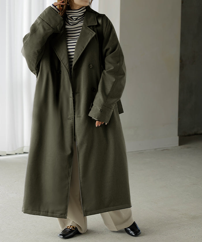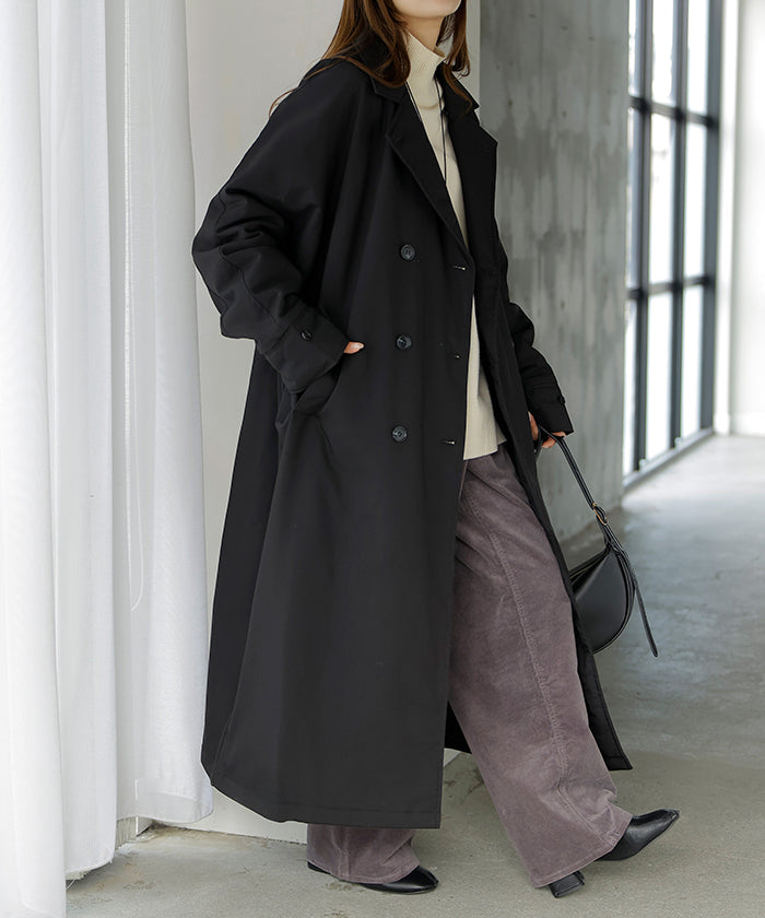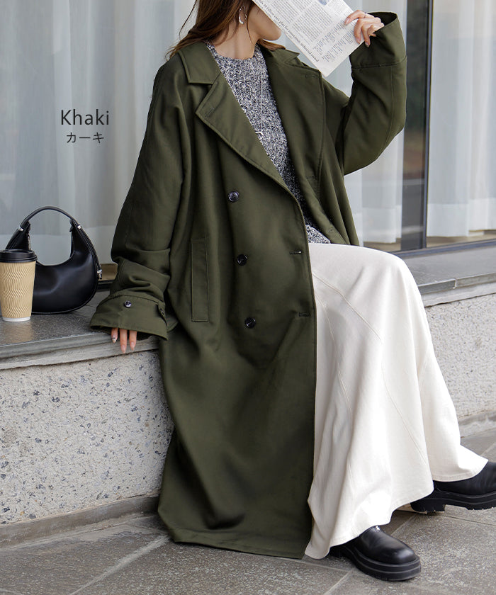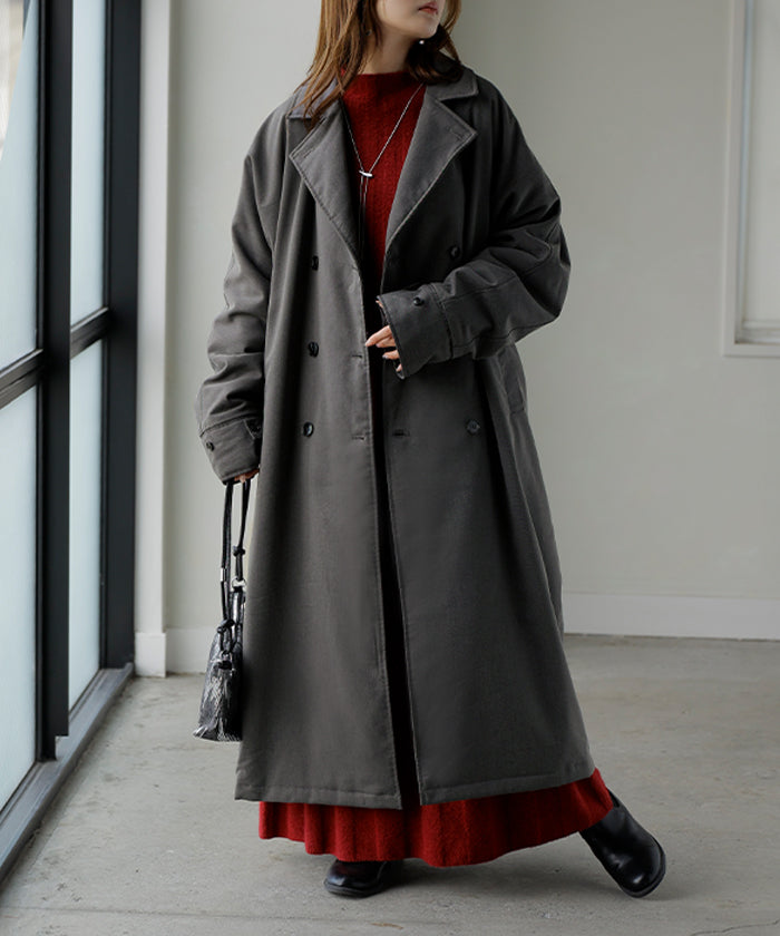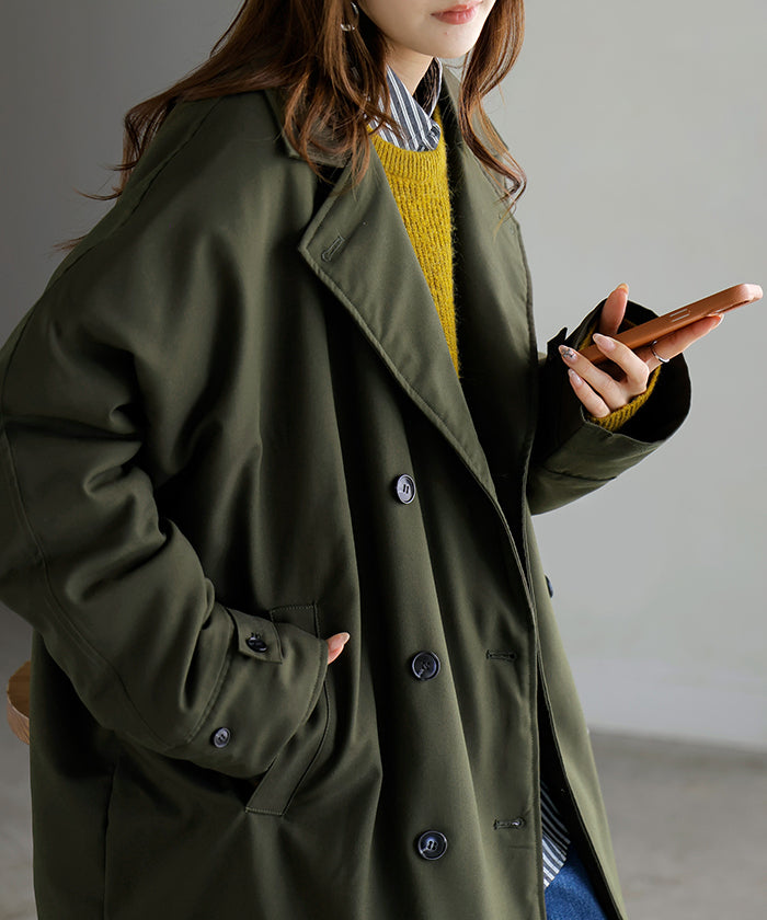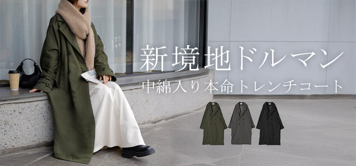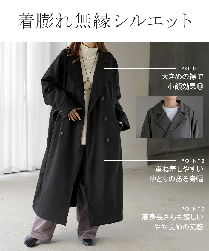 2025AW新作 アウター トレンチコート ■12月下旬入荷 中綿 レディース コート ロング ロングコート トレンチ ジャケット オーバー ドルマン 羽織 オーバーサイズ 裏地 付き あったか 高身長 きれいめ 大きいサイズ 体型カバー お尻が隠れる 黒 グレー 秋 冬 HUG.U