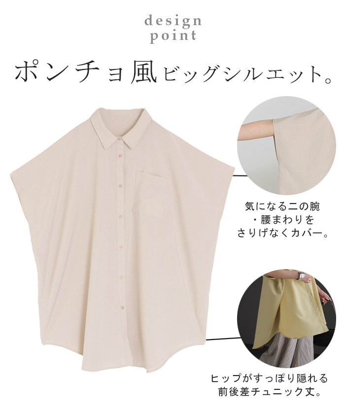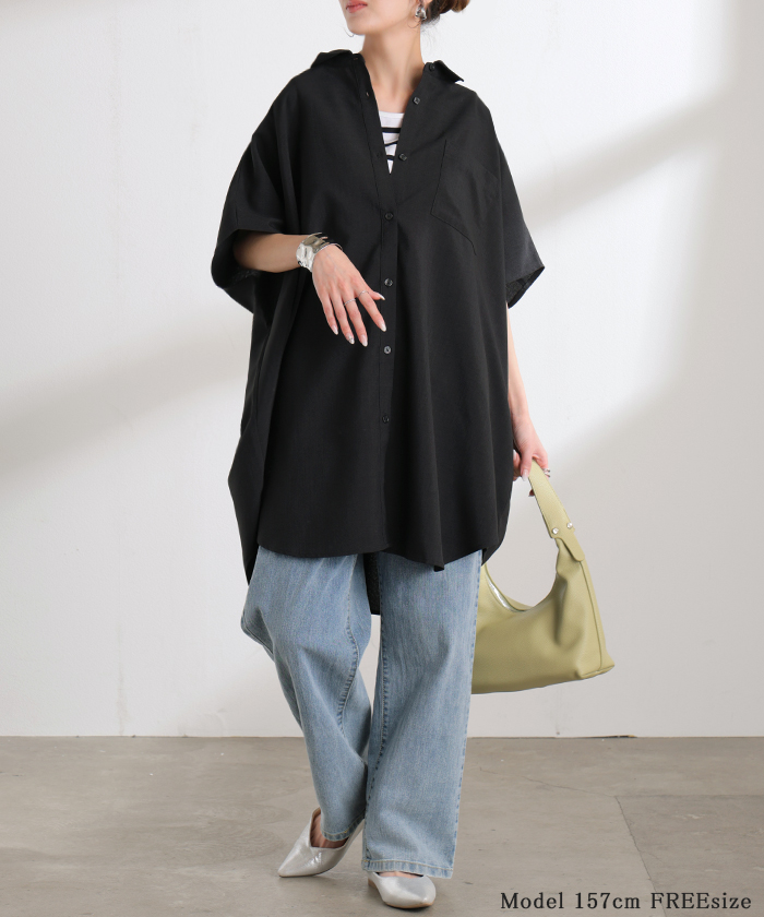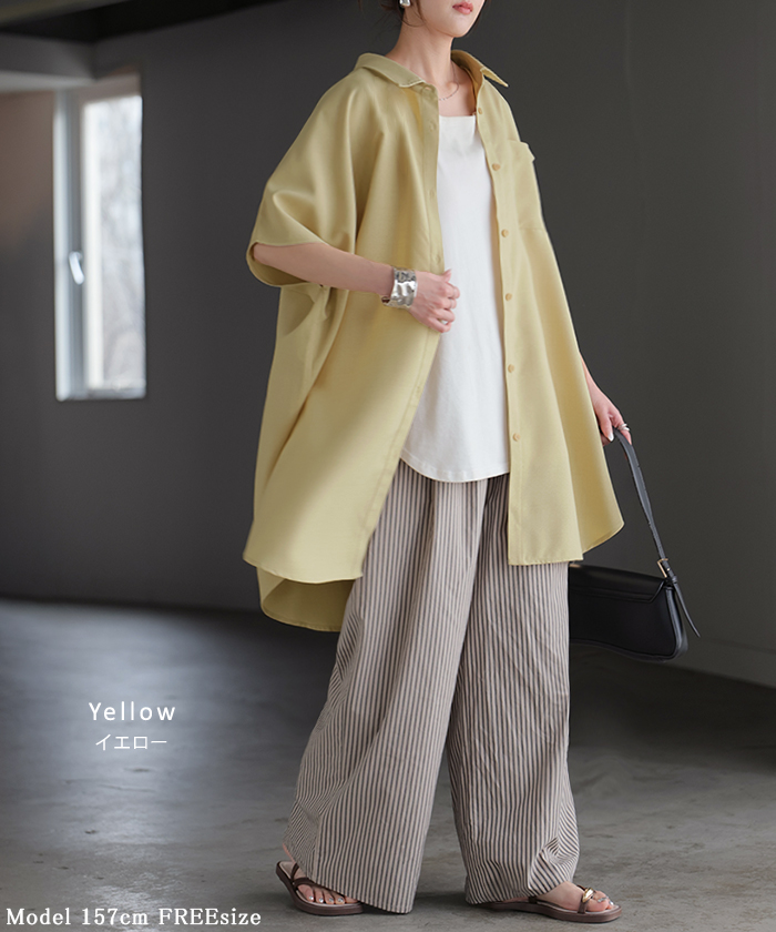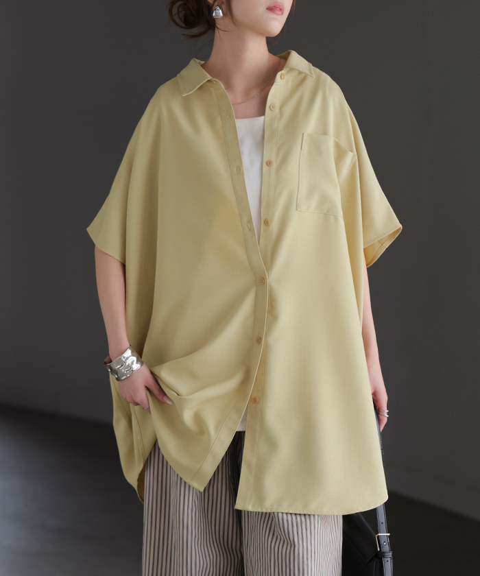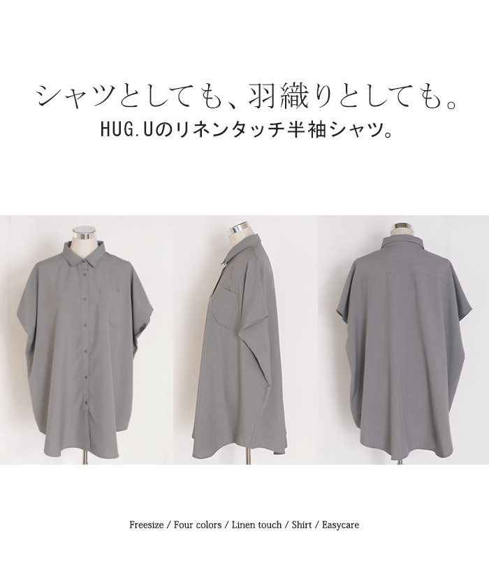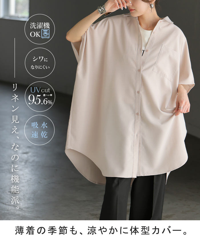 2026SS新作 シャツ 半袖 イージーケア 【 30分で乾く 】チュニック リネン ライク レディース トップス ドルマンシャツ ブラウス ポンチョ 風 羽織り シワになりにくい UVカット 薄手 体型カバー お尻が隠れる ゆったり 大きいサイズ 春 夏 イエロー ブラック HUG.U
