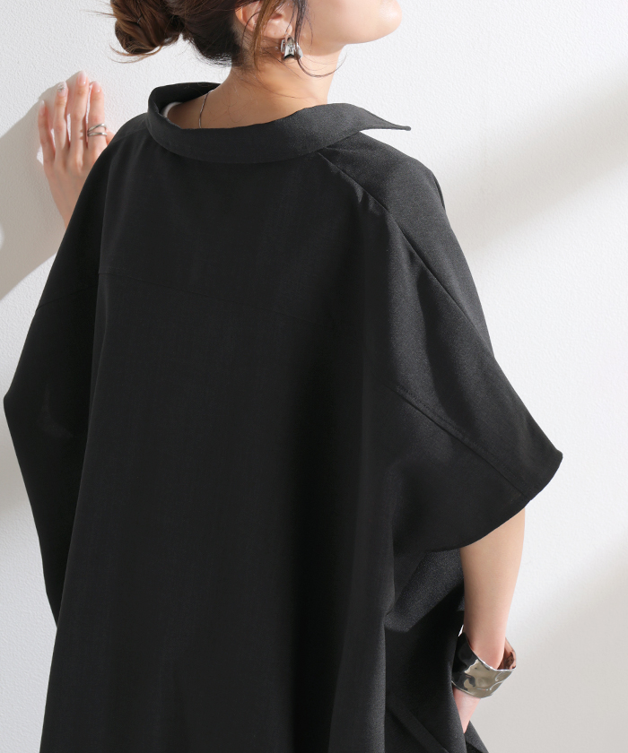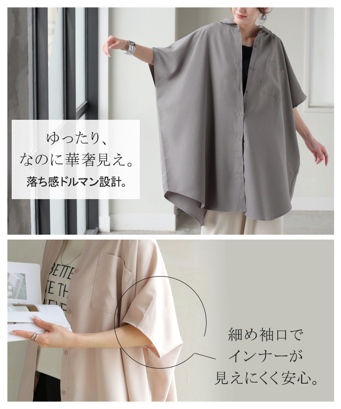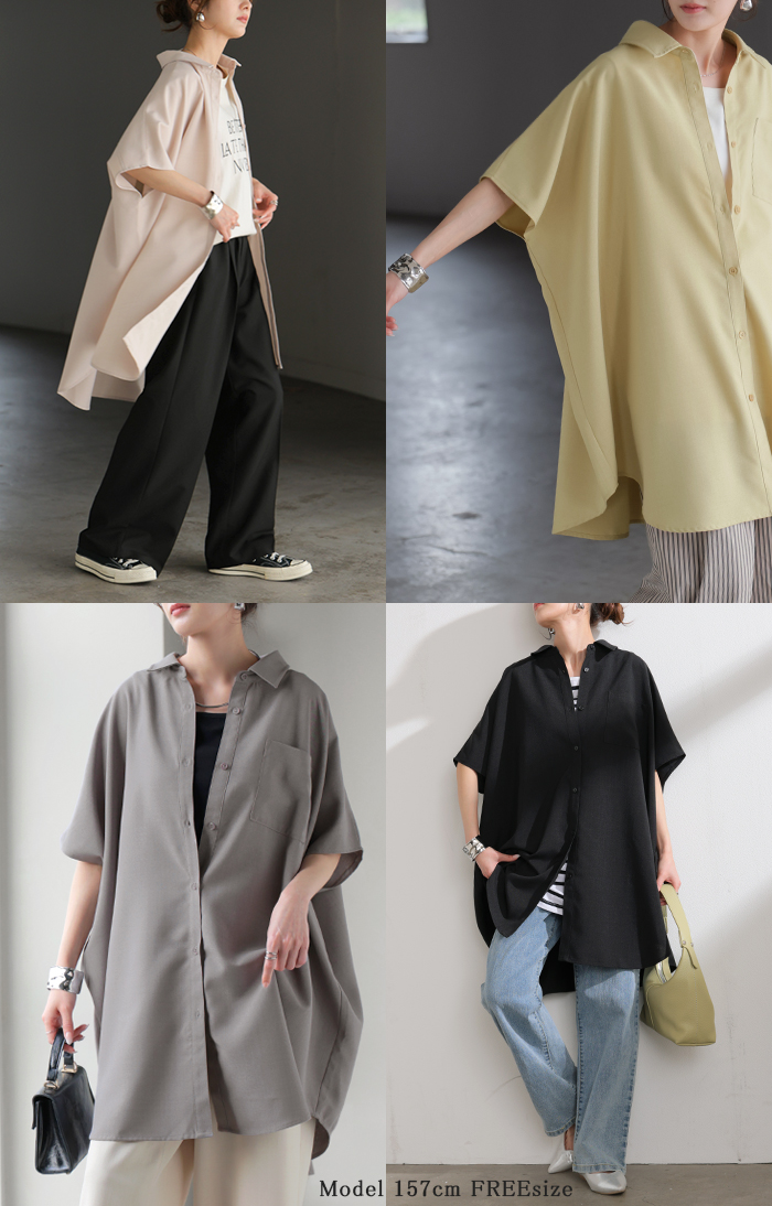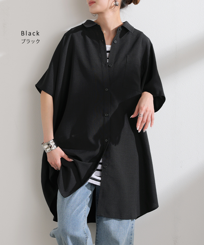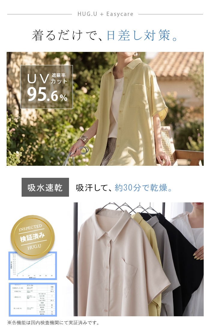 2026SS新作 シャツ 半袖 イージーケア 【 30分で乾く 】チュニック リネン ライク レディース トップス ドルマンシャツ ブラウス ポンチョ 風 羽織り シワになりにくい UVカット 薄手 体型カバー お尻が隠れる ゆったり 大きいサイズ 春 夏 イエロー ブラック HUG.U