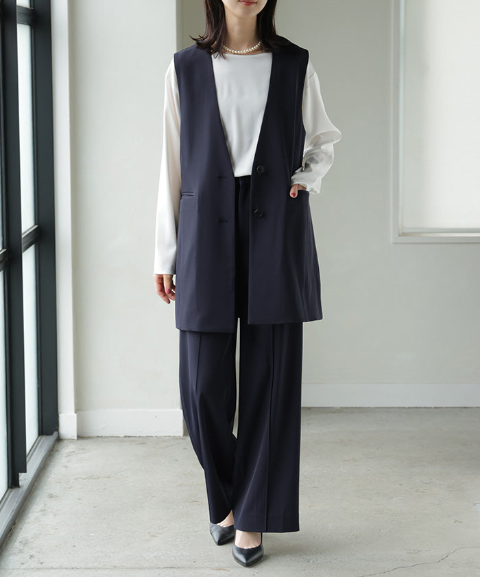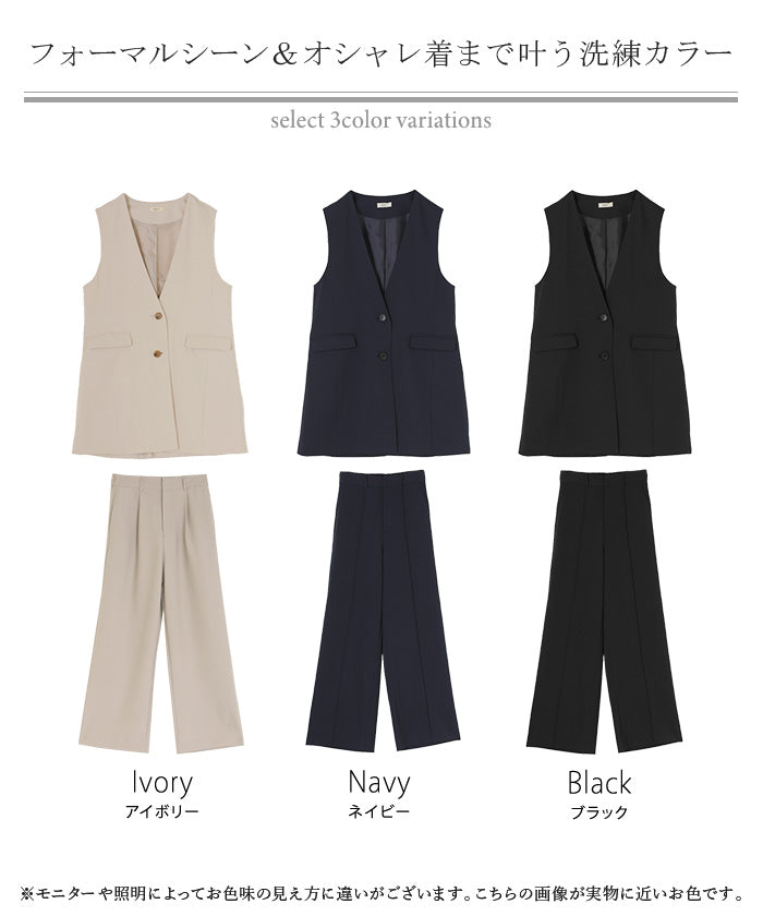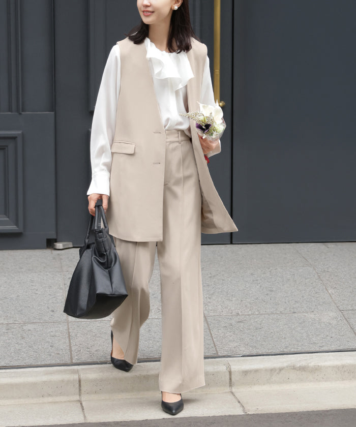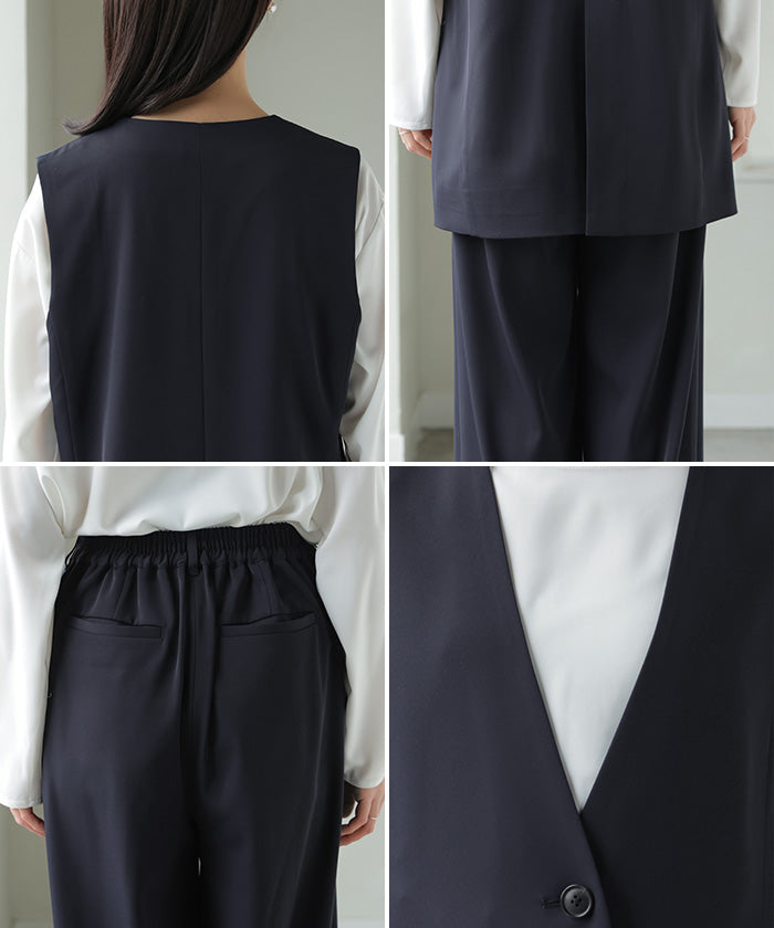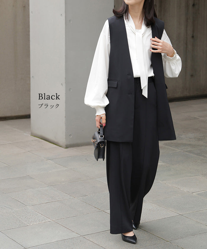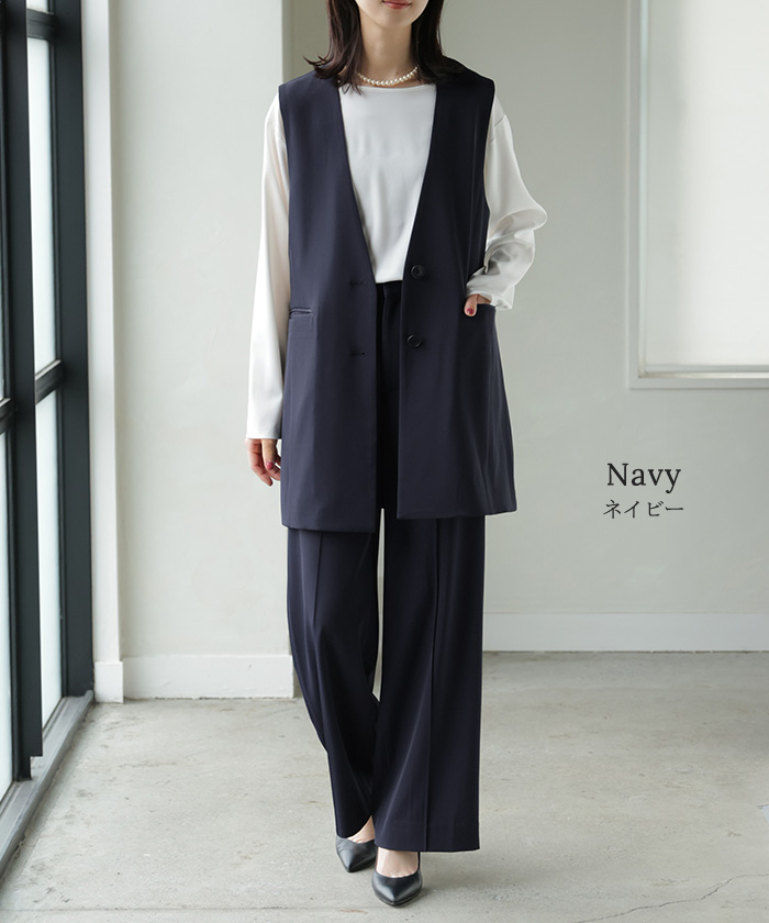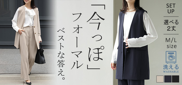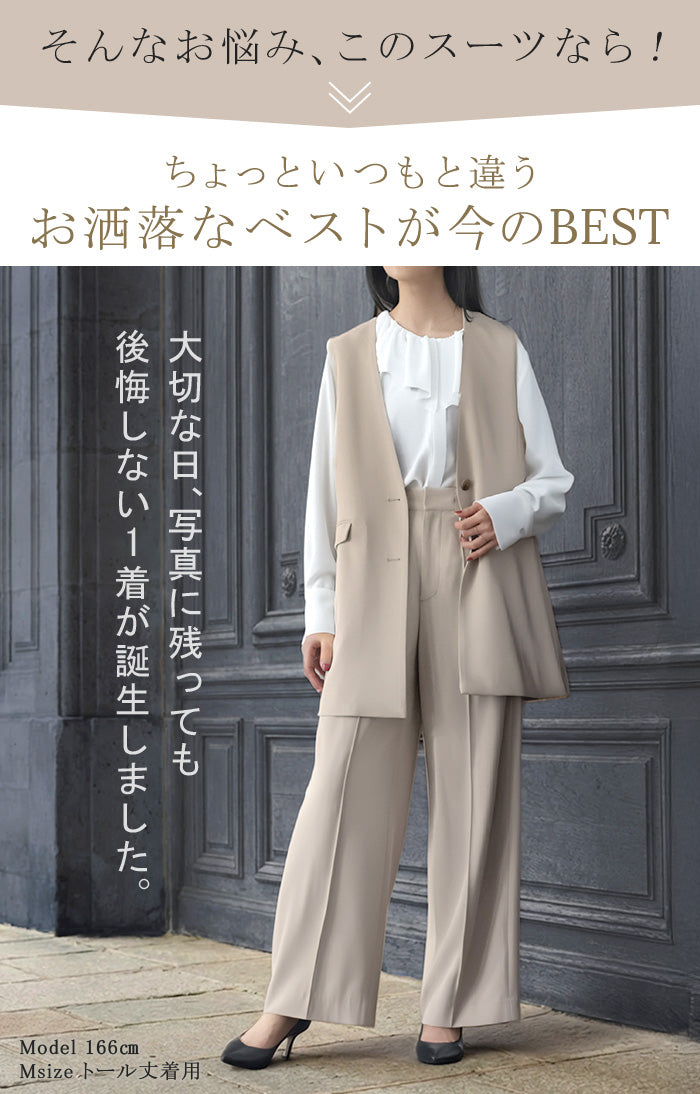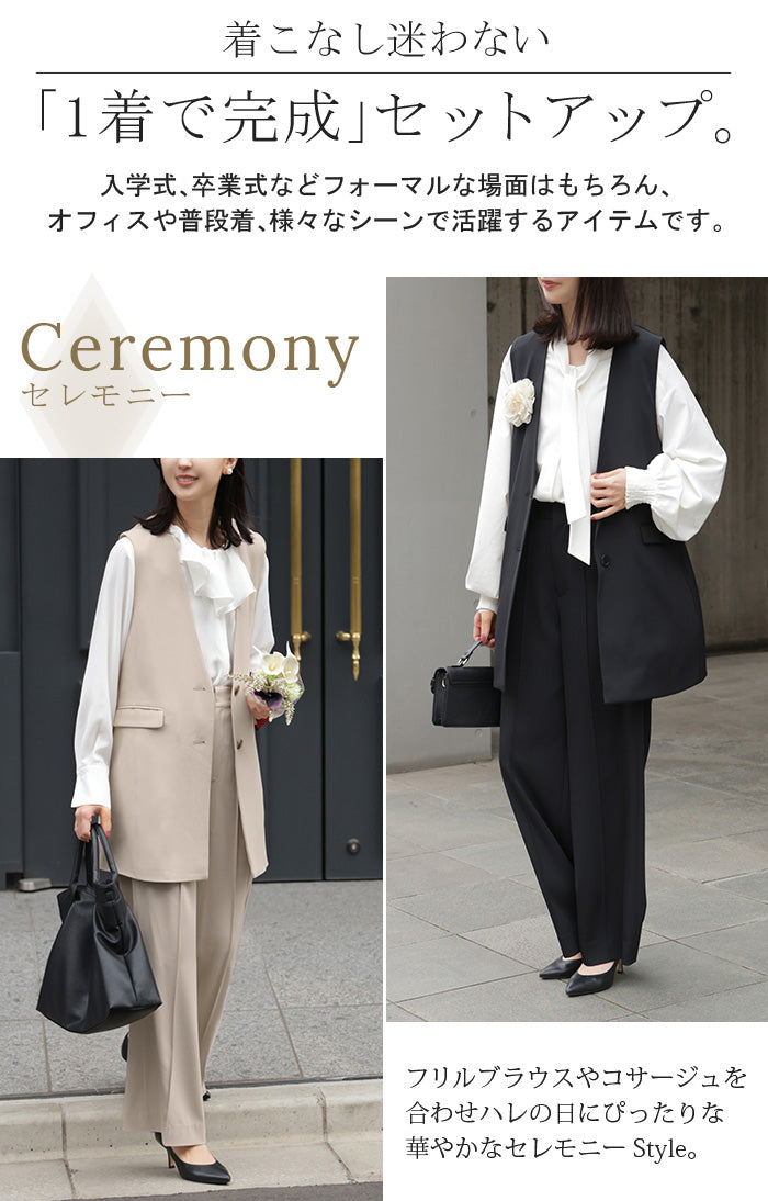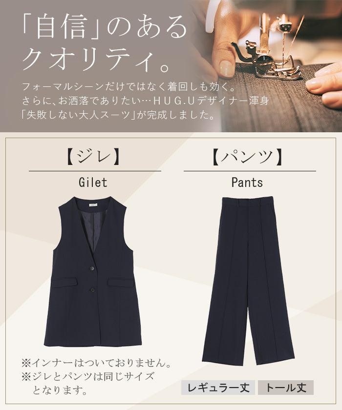 【5,000円OFF】2026SS新作 フォーマル 2点セット パンツ ジレ ベスト ■2月中旬入荷 レディース パンツスーツ スーツ セットアップ ノーカラー 入学式 卒業式 お宮参り セレモニースーツ レディーススーツ 母親 ママ フォーマルスーツ オフィスカジュアル 洗濯機 洗える 黒 ネイビー 春 夏 HUG.U
