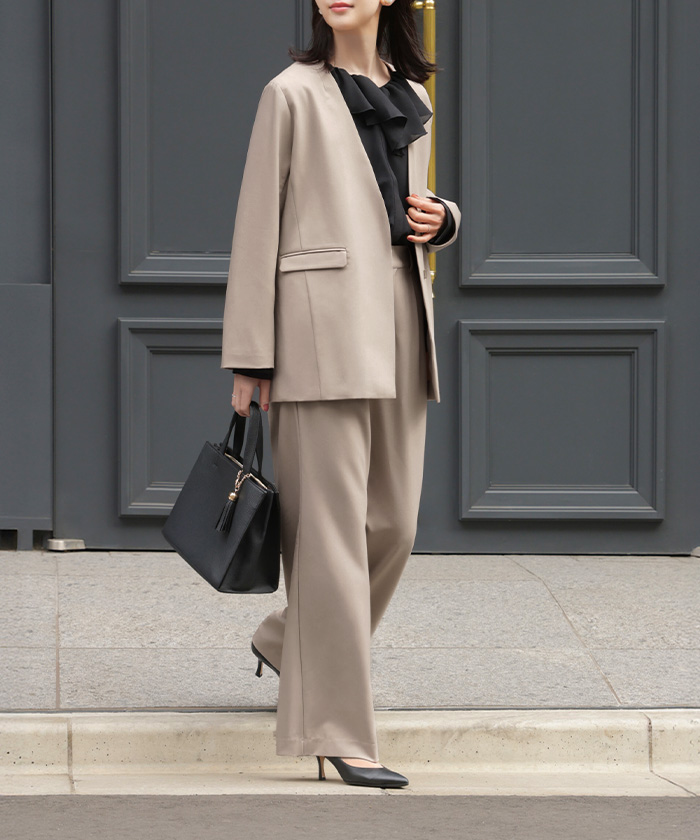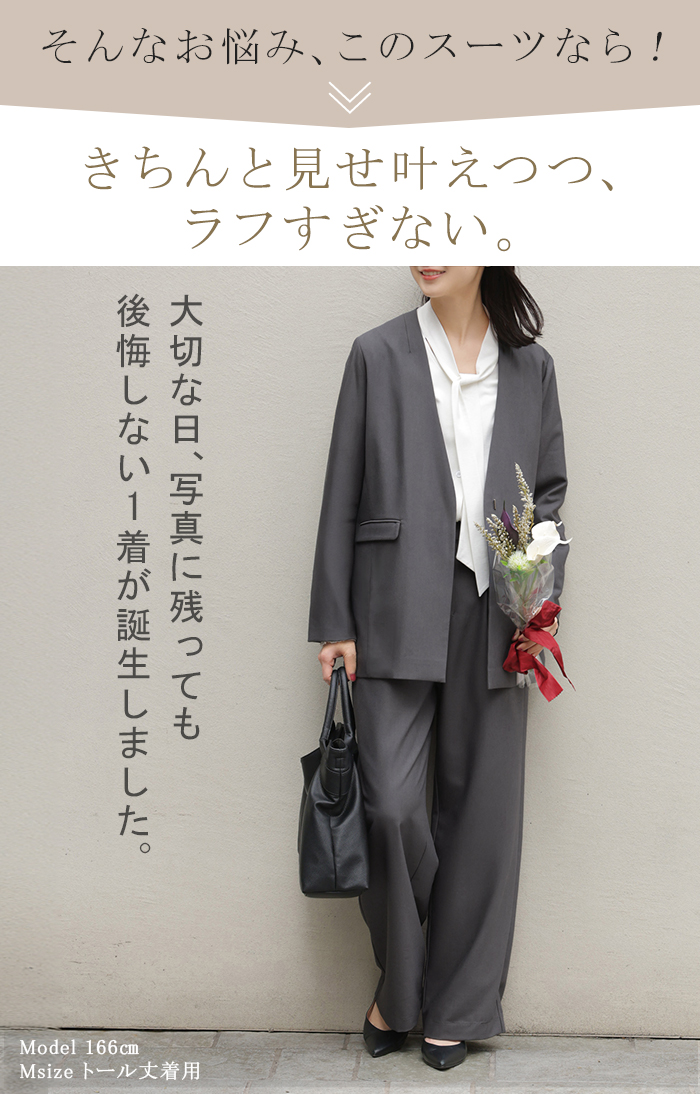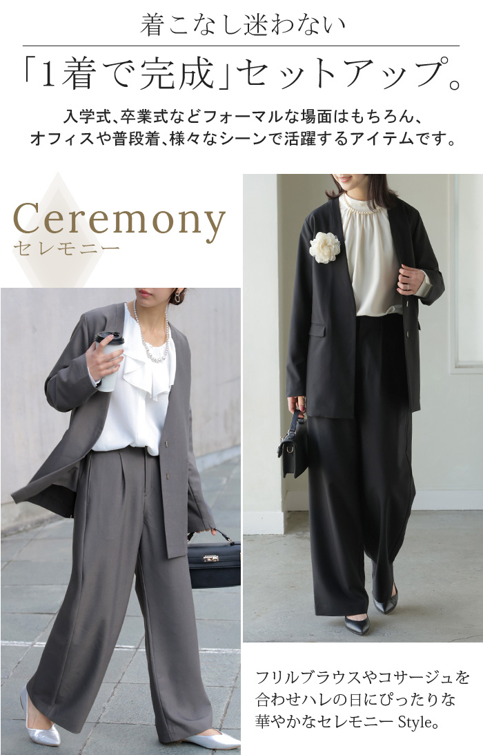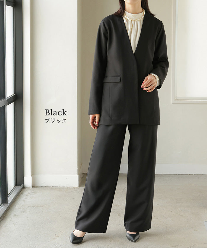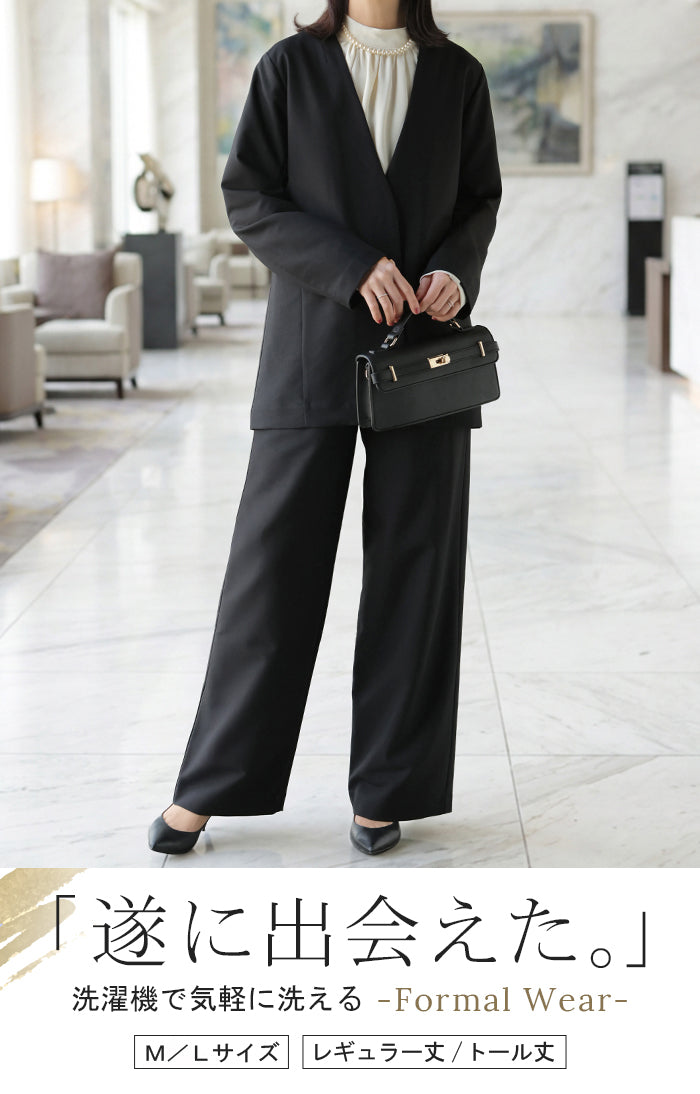 【7,000円OFF】2026SS新作 「洗濯機で洗える」 フォーマル 2点セット パンツ ジャケット レディース パンツスーツ スーツ セットアップ ノーカラー 入学式 卒業式 お宮参り セレモニースーツ レディーススーツ 母親 ママ フォーマルスーツ オフィスカジュアル 黒 グレー 春 夏 HUG.U