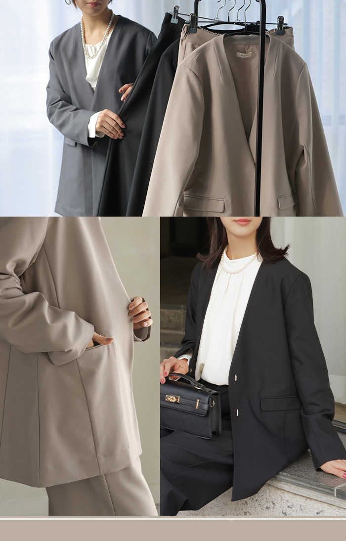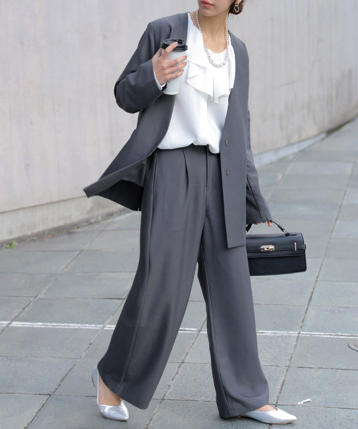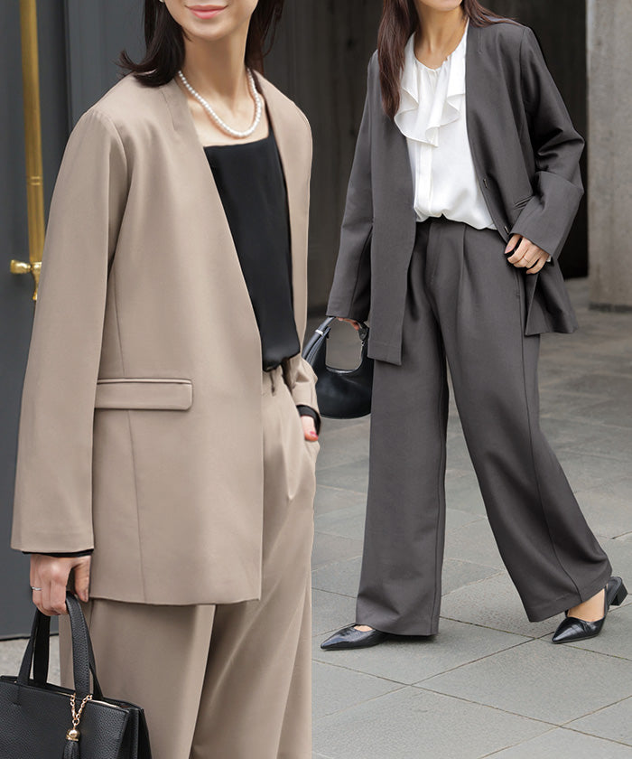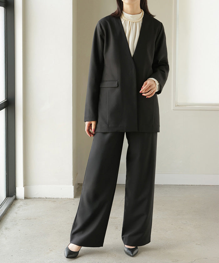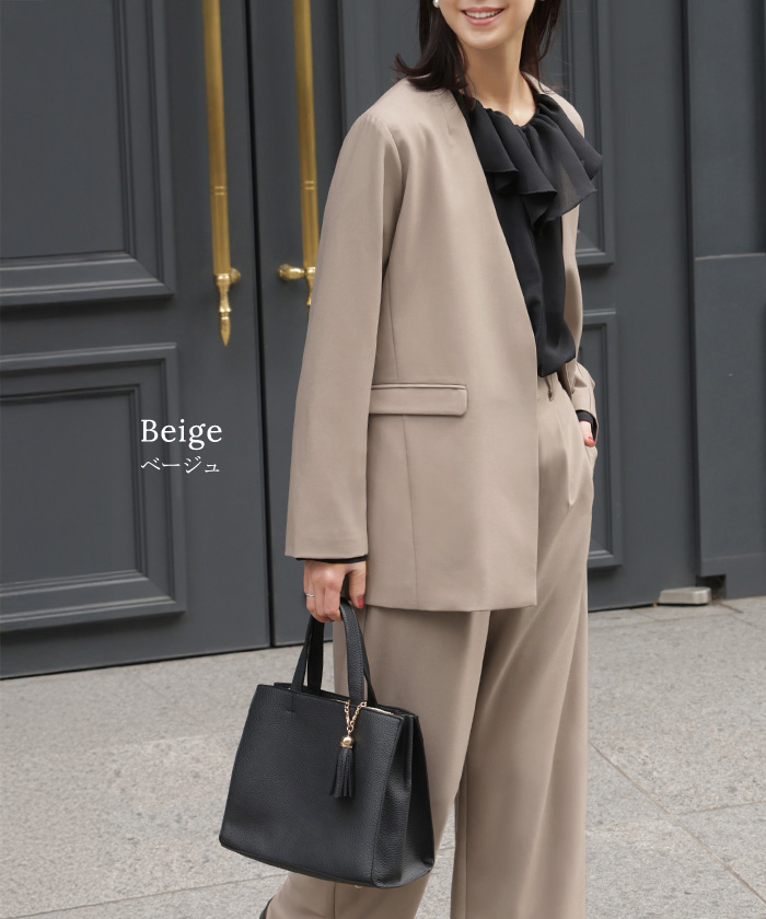 【7,000円OFF】2026SS新作 「洗濯機で洗える」 フォーマル 2点セット パンツ ジャケット レディース パンツスーツ スーツ セットアップ ノーカラー 入学式 卒業式 お宮参り セレモニースーツ レディーススーツ 母親 ママ フォーマルスーツ オフィスカジュアル 黒 グレー 春 夏 HUG.U
