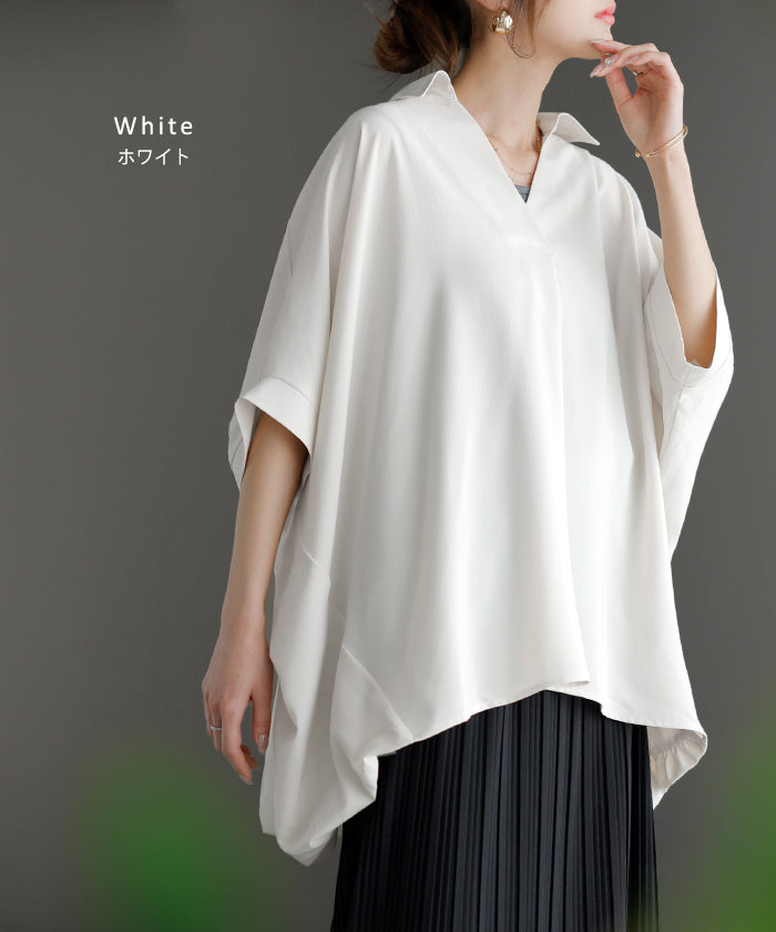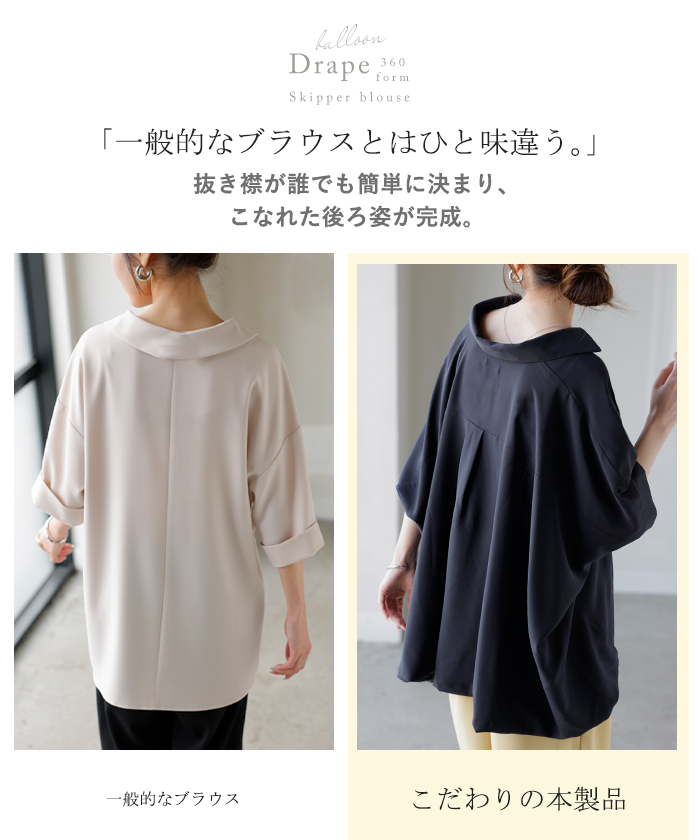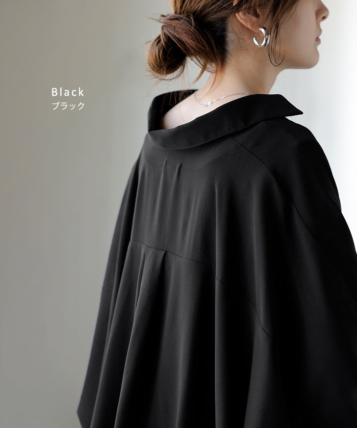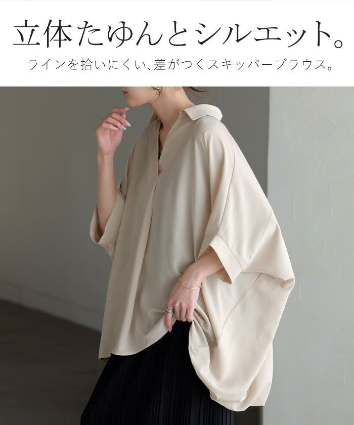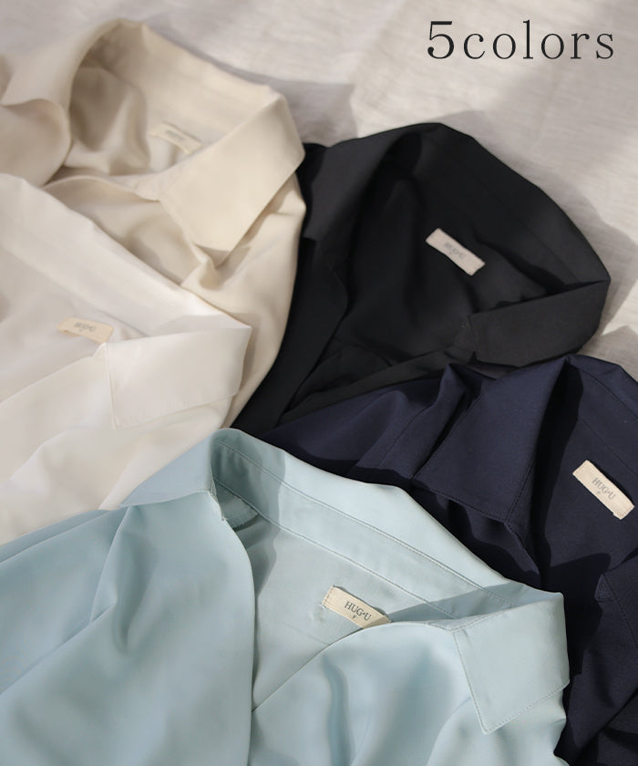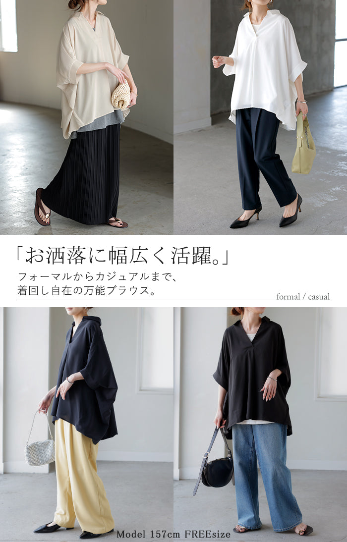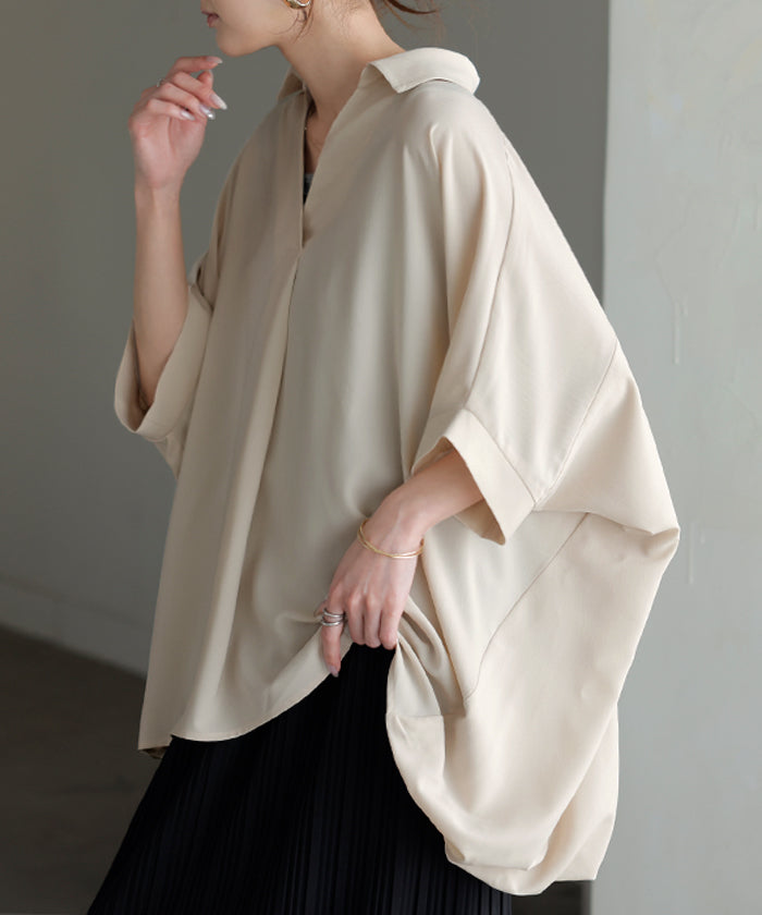 【早割10%OFF】2026SS新作 シャツ スキッパーシャツ ブラウス レディース トップス 半袖 Vネック 深Vネック 五分袖 襟付き バルーン ノンアイロン 体型カバー 大きいサイズ 着痩せ お尻が隠れる シワになりにくい オフィス きれいめ カジュアル 春 夏 ネイビー ブラック HUG.U