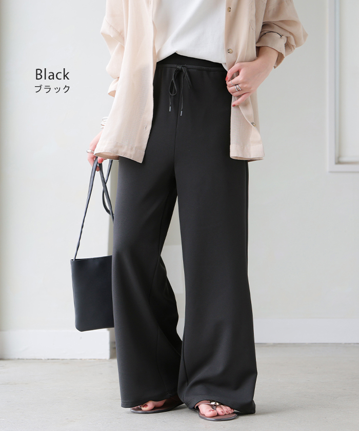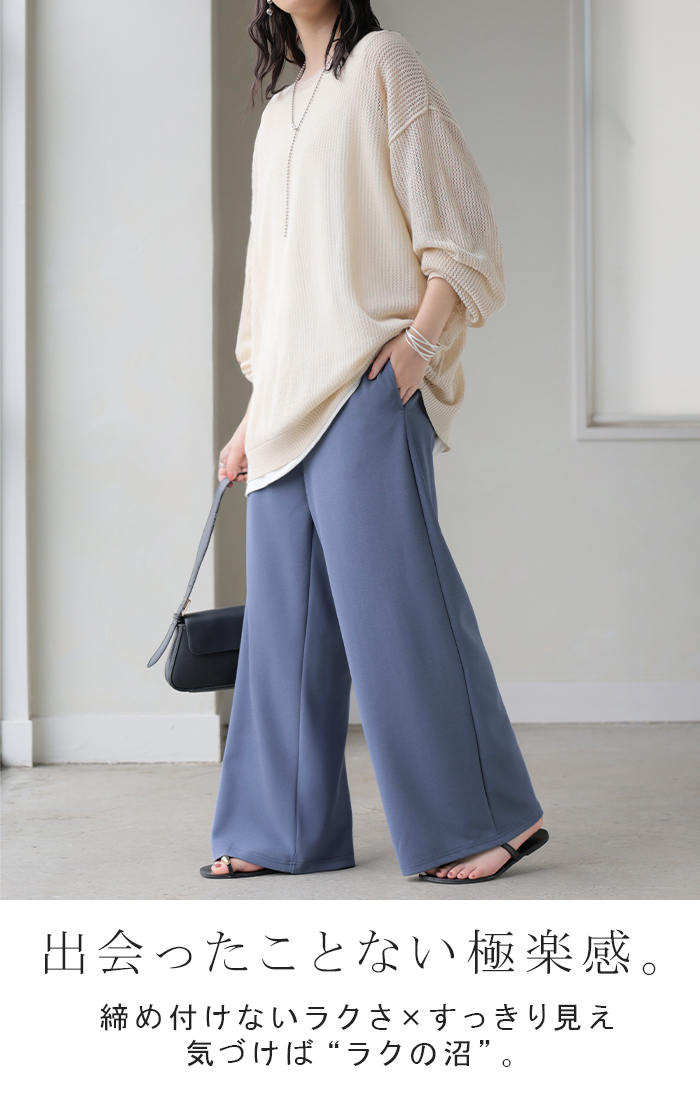 2026SS新作 パンツ ワイド 「 極楽 」 レディース ボトムス ロング ストレート ずぼん ボトム ウエスト 紐 締め付けない 楽 ラクチン ストレッチ 軽い カジュアル マタニティ ハイウエスト きれいめ ゆったり 体型カバー 大きいサイズ 旅行 黒 グレー 春 夏 HUG.U