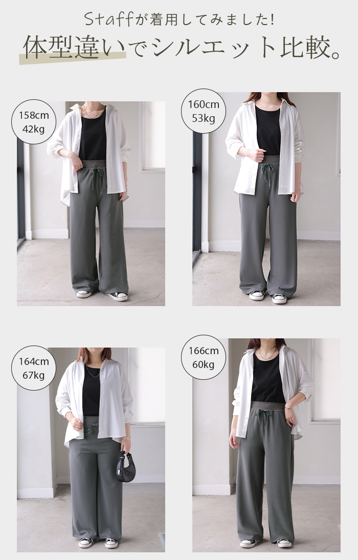 サイズ感につきましては体型により異なりますため、サイズ詳細をご確認ください。