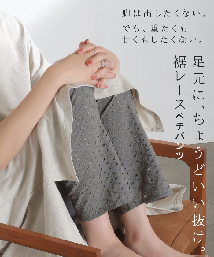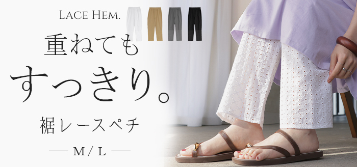 【早割10%OFF】2026SS新作 ペチパンツ レース レディース パンツ ボトムス インナーパンツ 重ね着 レイヤード 裾レース ペチコート パンツ 透け防止 テーパード 涼しい 軽い ウエストゴム 体型カバー 大きいサイズ 裾見せ きれいめ カジュアル ホワイト ブラック 春 夏 HUG.U メール便